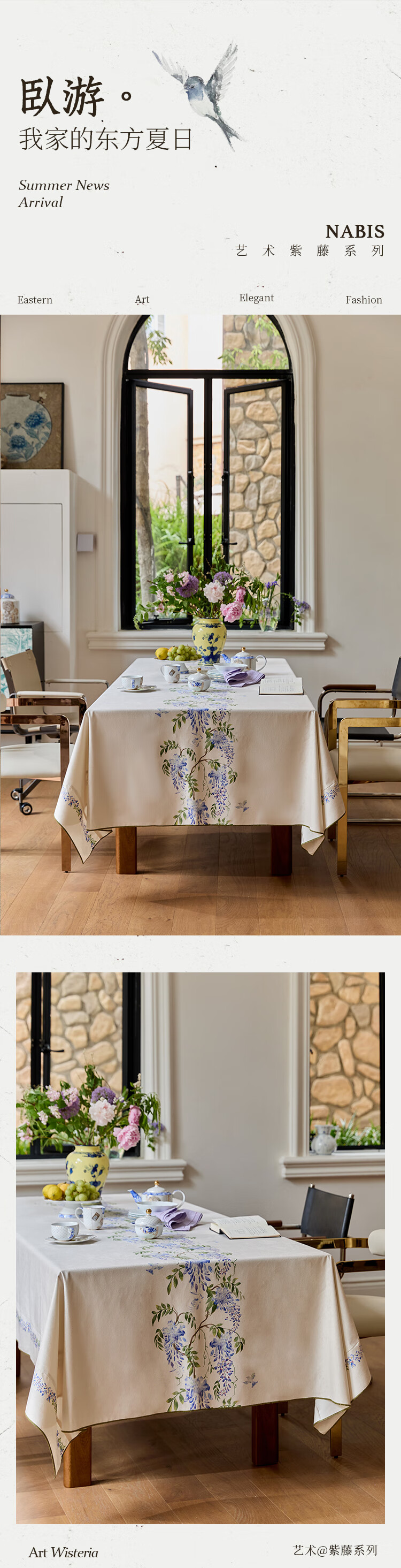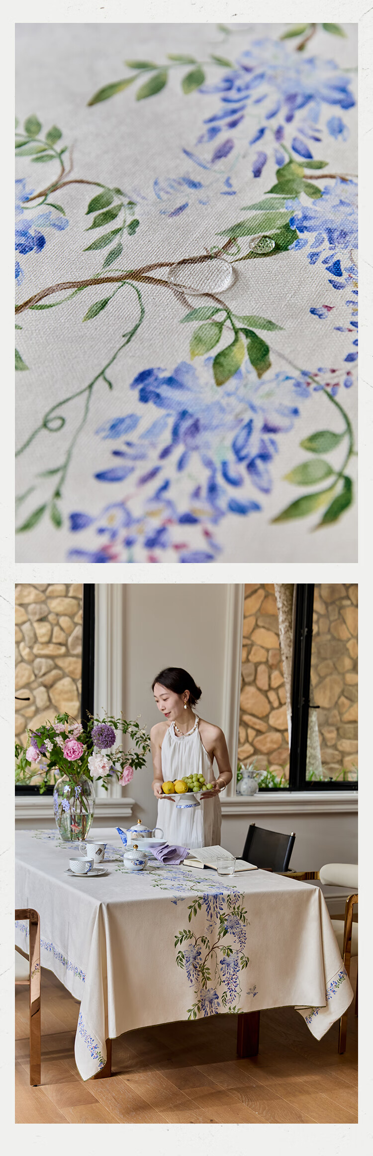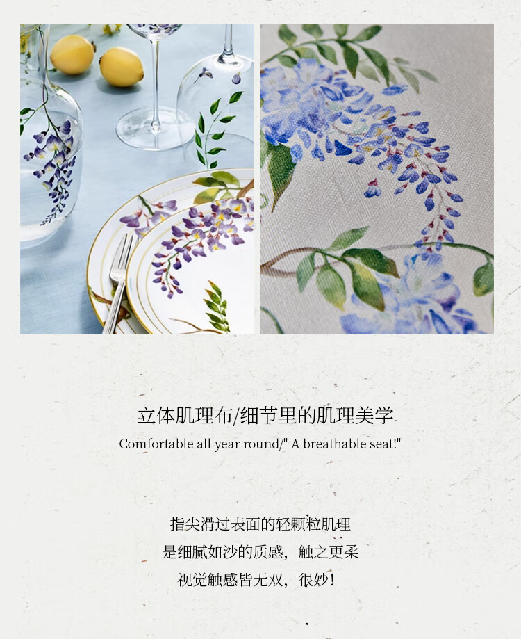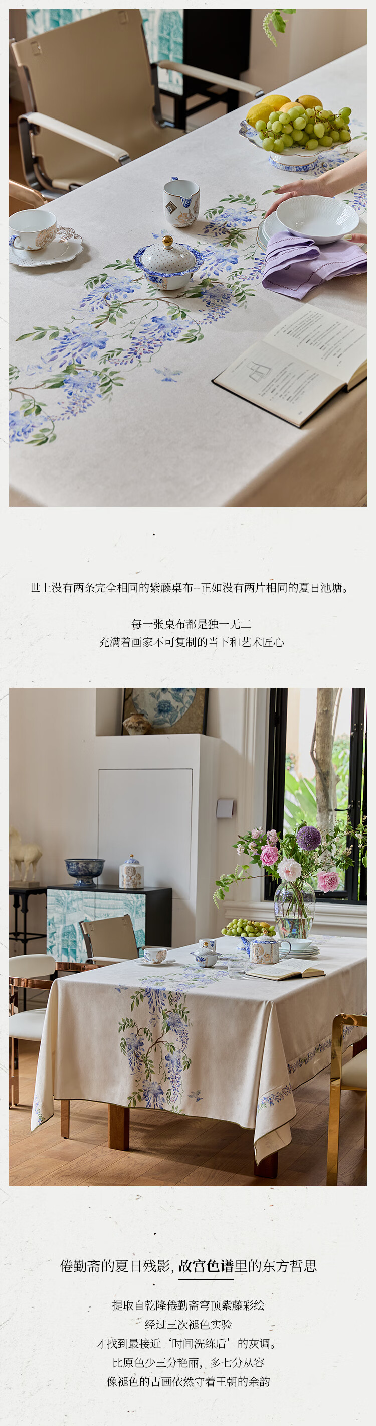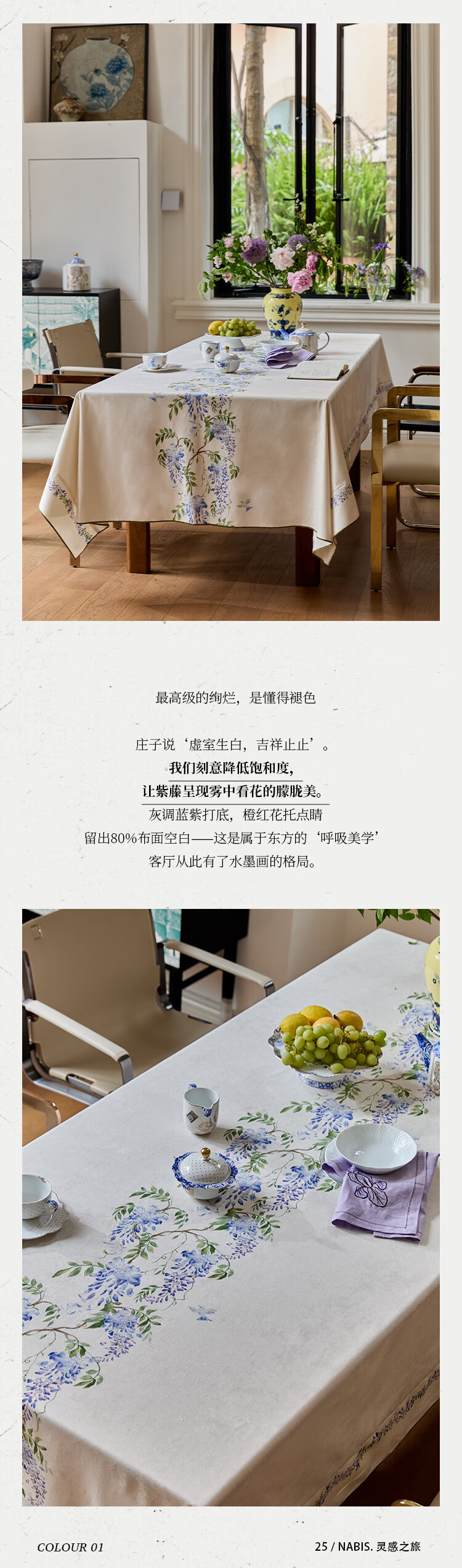 蜡笔派(Nabis)郭俊池联名|东方夏日系列|紫藤防水桌布餐桌盖布方形茶几布 紫藤垂夏-桌布 140*140cm单层密边款 /4人餐桌