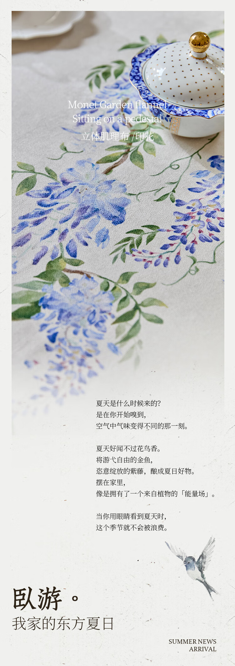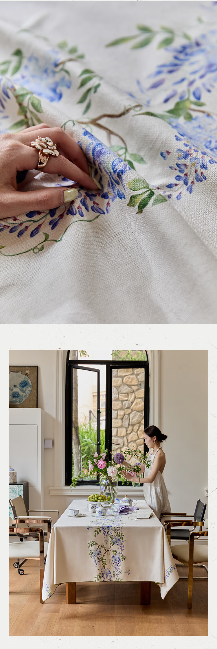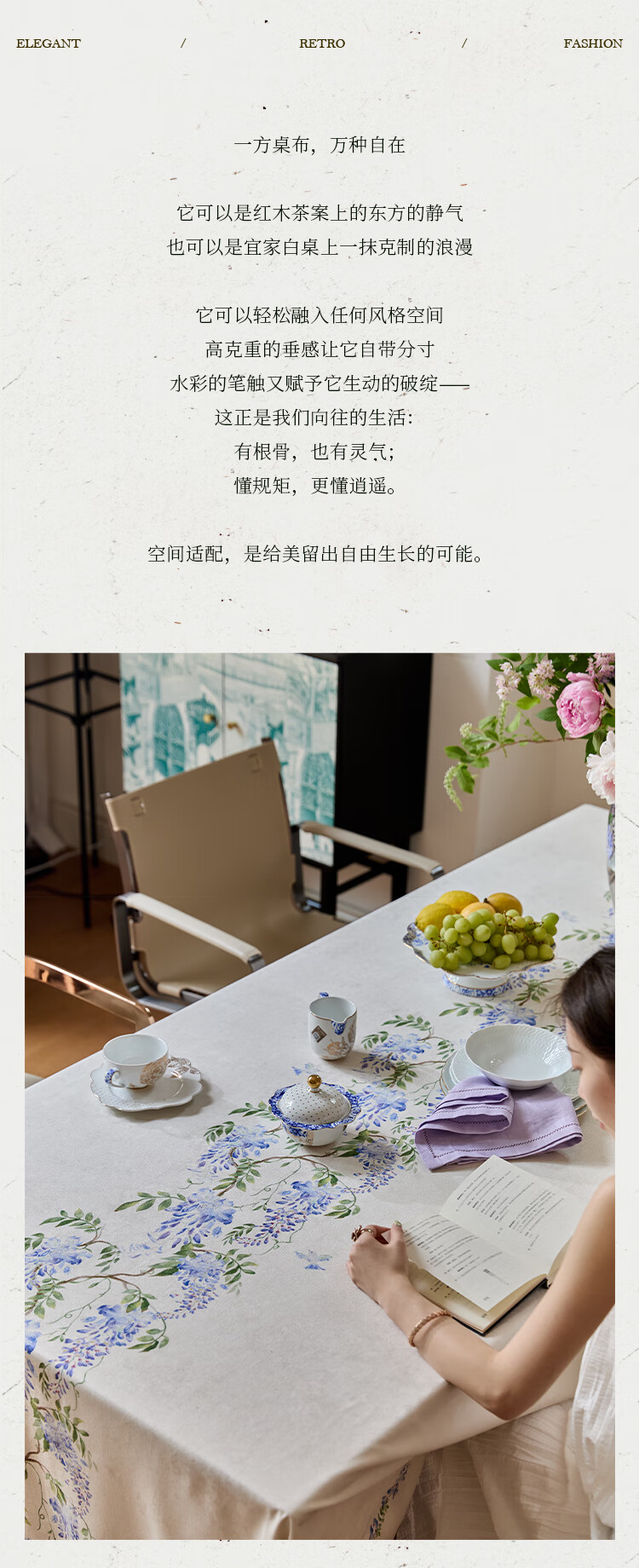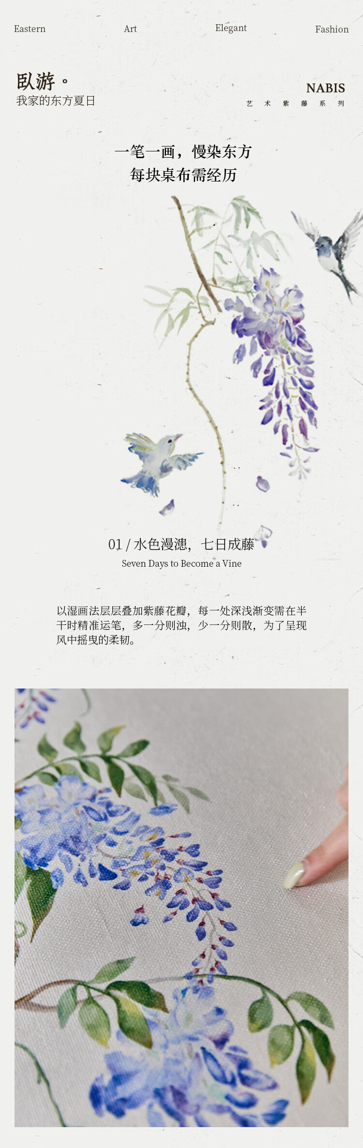 蜡笔派(Nabis)郭俊池联名|东方夏日系列|紫藤防水桌布餐桌盖布方形茶几布 紫藤垂夏-桌布 140*140cm单层密边款 /4人餐桌
