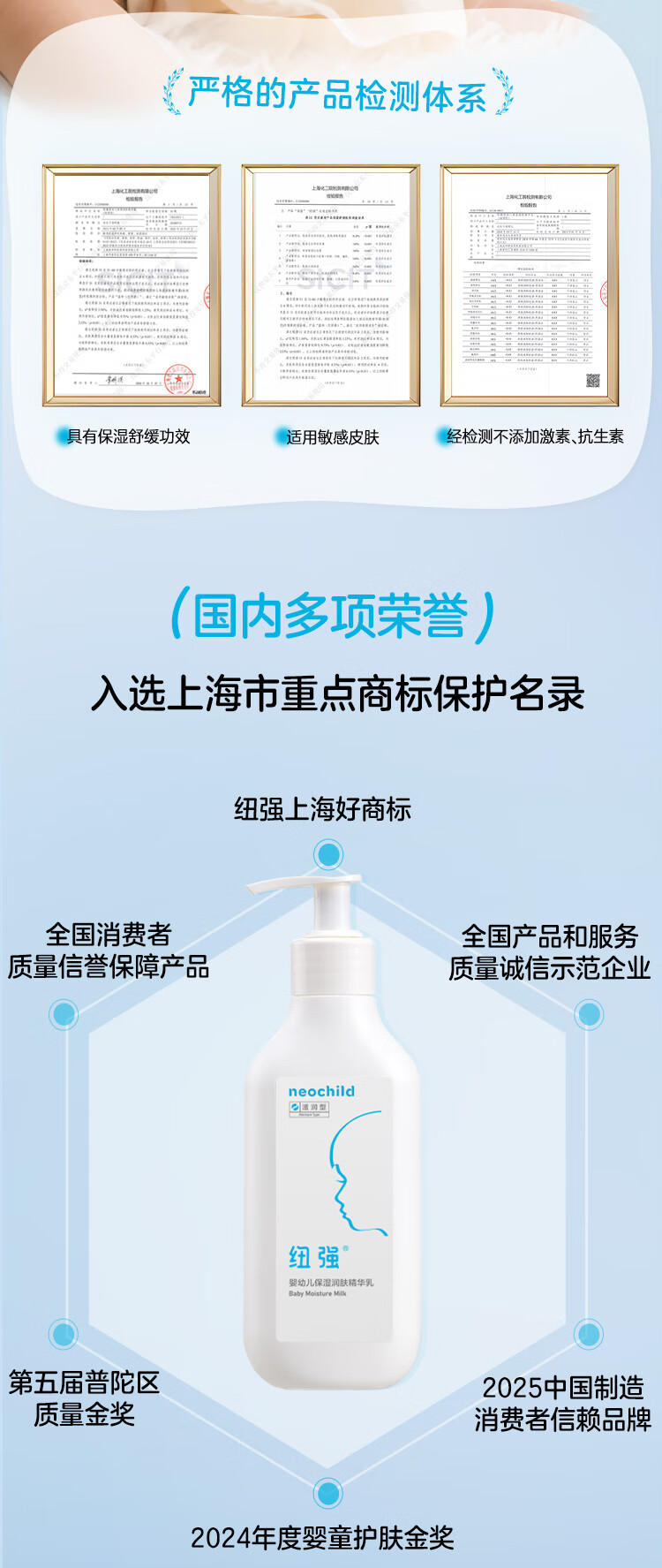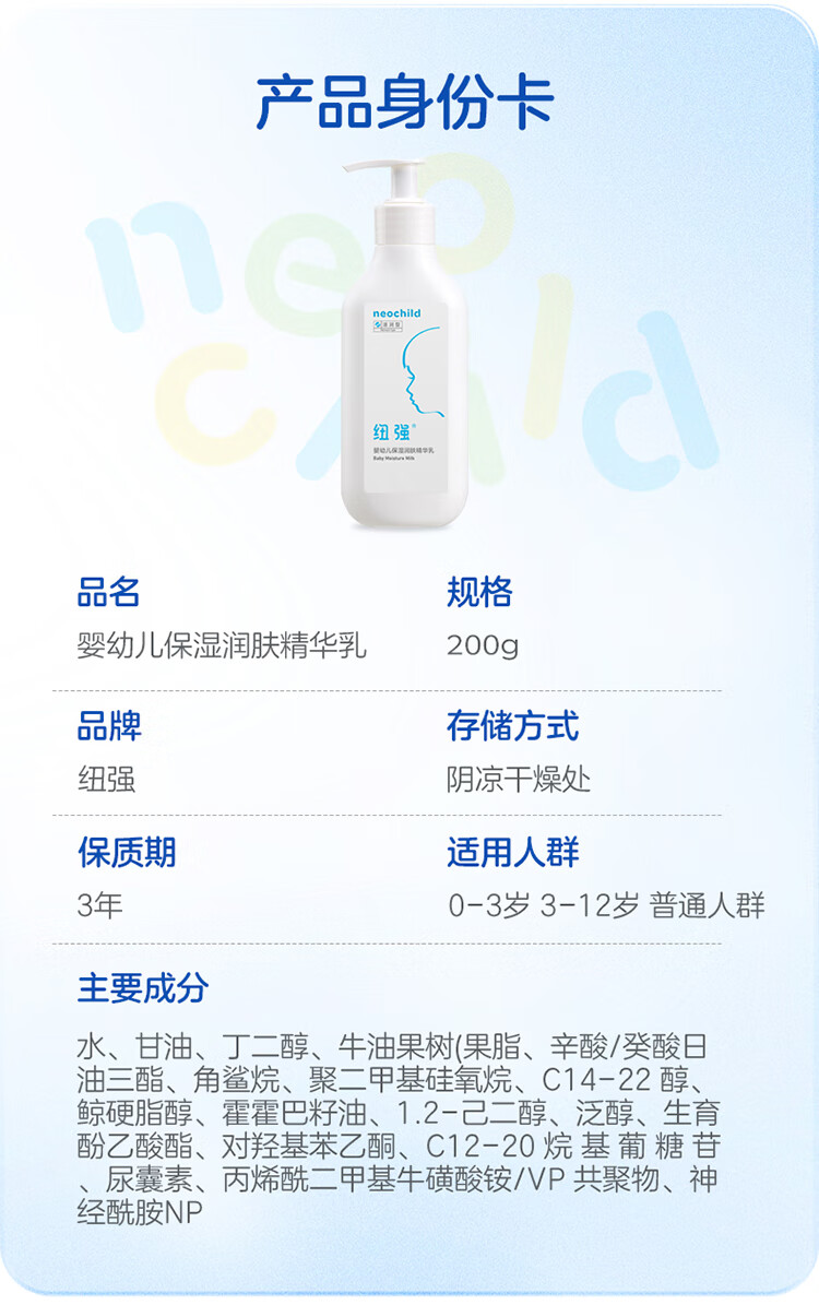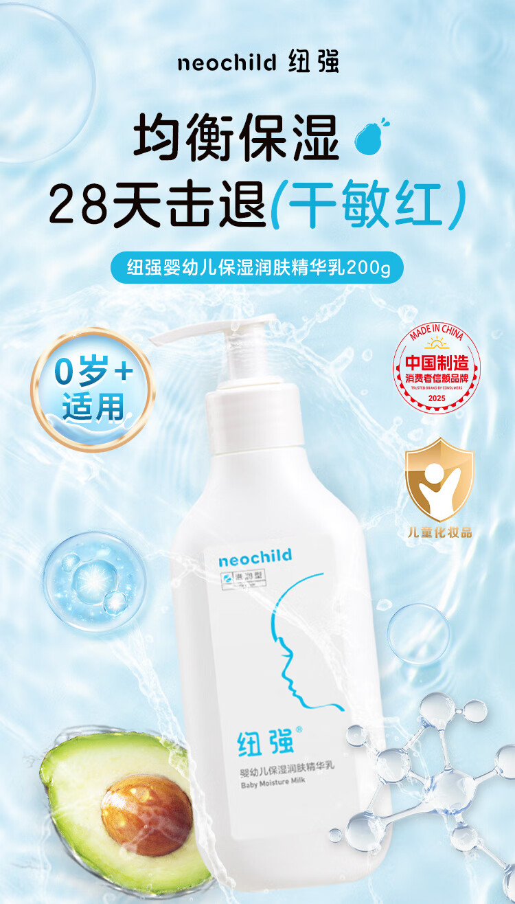 纽强婴幼儿滋润精华乳 宝宝护肤身体乳天然补水保湿滋润防干敏红 精华乳200g*2