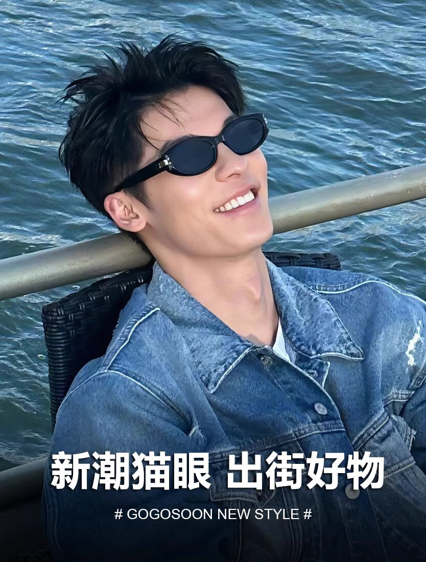 GOGOSOON许光汉同款摩登窄框猫眼墨镜男高级感2025新款太阳眼镜女防紫外线