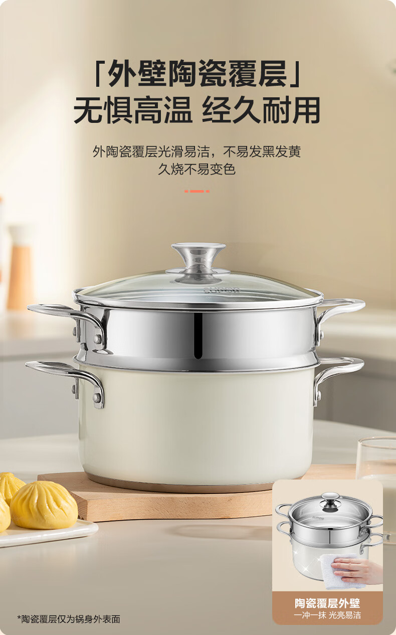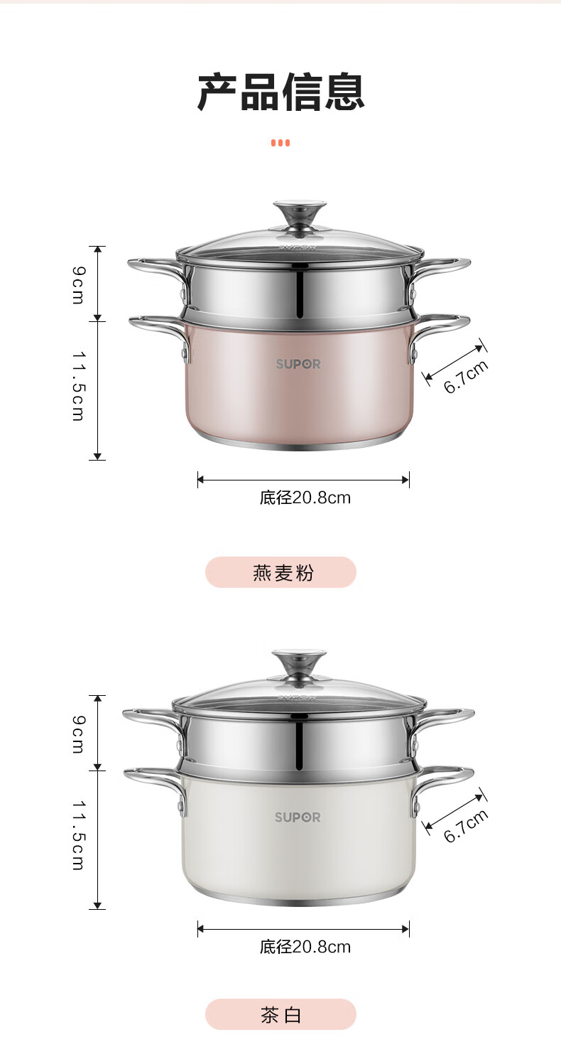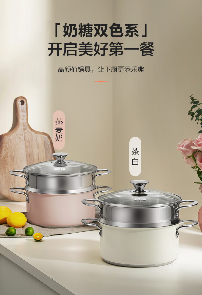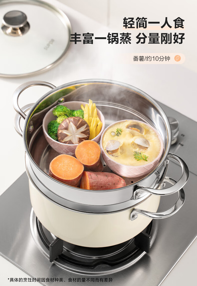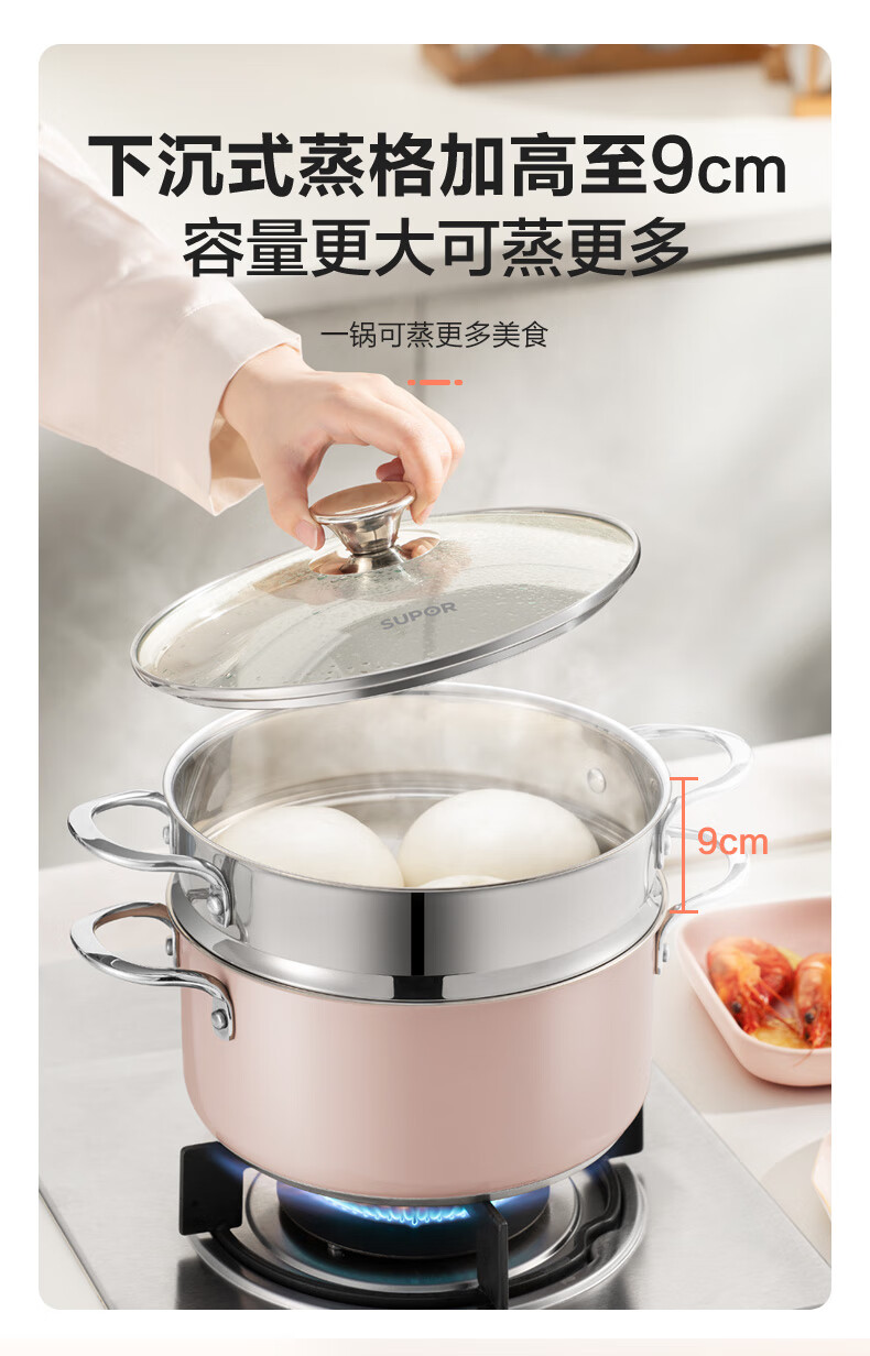 苏泊尔SUPOR 304不锈钢双层蒸锅22cm燃气电磁炉蒸笼粉色 EZ22SAS01-R