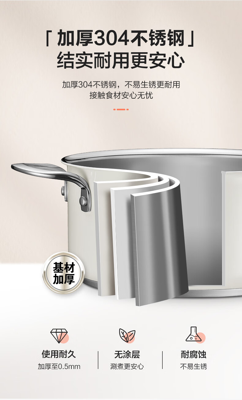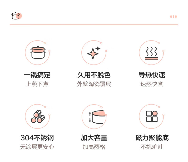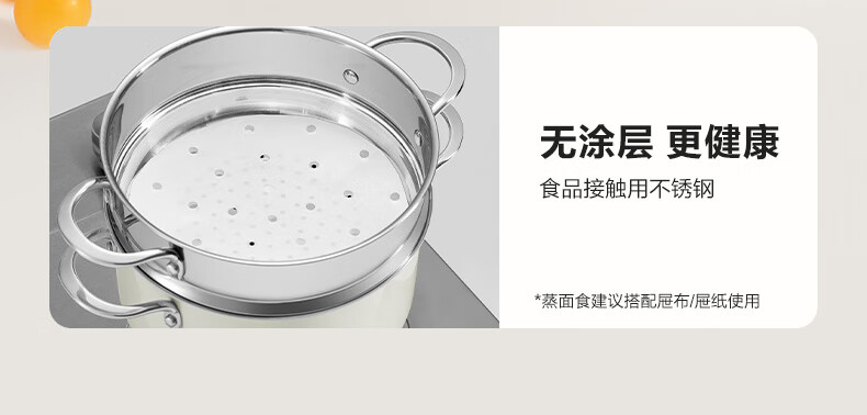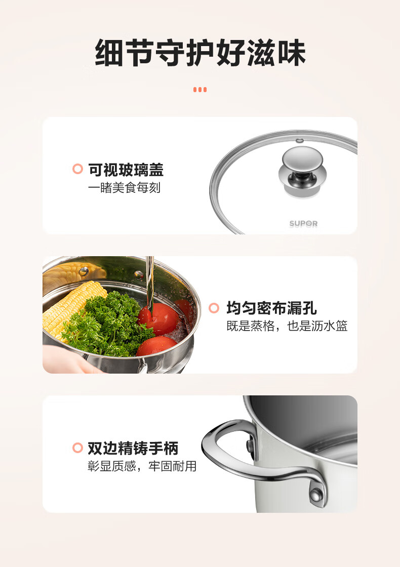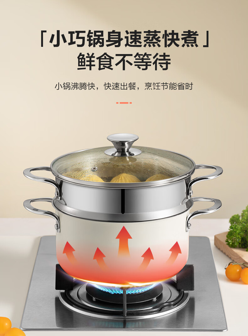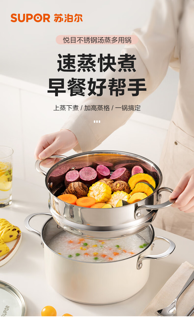 苏泊尔SUPOR 304不锈钢双层蒸锅22cm燃气电磁炉蒸笼粉色 EZ22SAS01-R