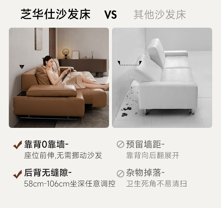 芝华仕(CHEERS)头等舱意式极简零靠墙电动功能劳伦斯沙发床30567双电动驼色