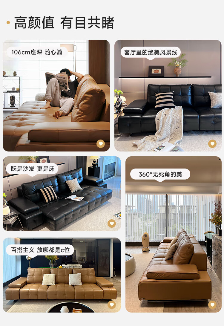全友家居 简约头层牛皮真皮床主卧室双人轻奢软包大床家具婚床