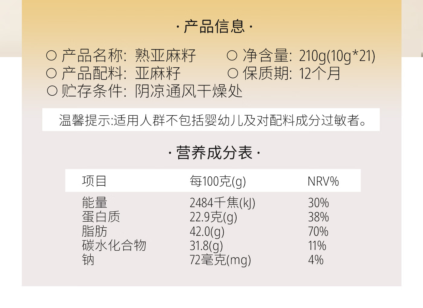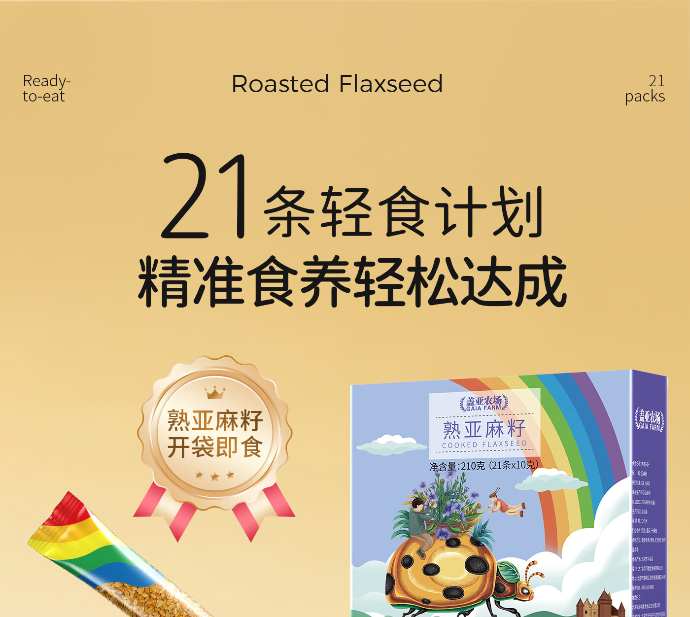 盖亚农场(Gaia Farm) 即食熟亚麻籽10g*21 低温烘焙亚麻籽胡麻籽饱腹营养代餐独立包装 熟亚麻籽210g