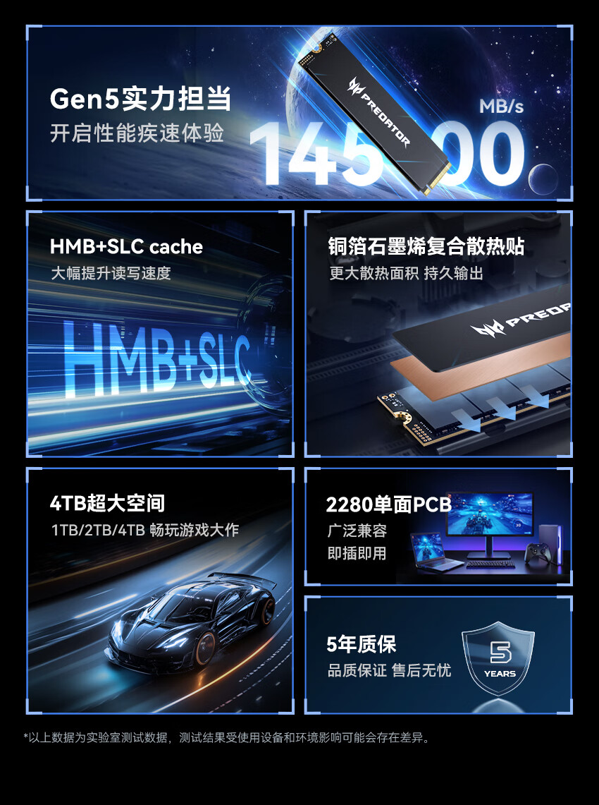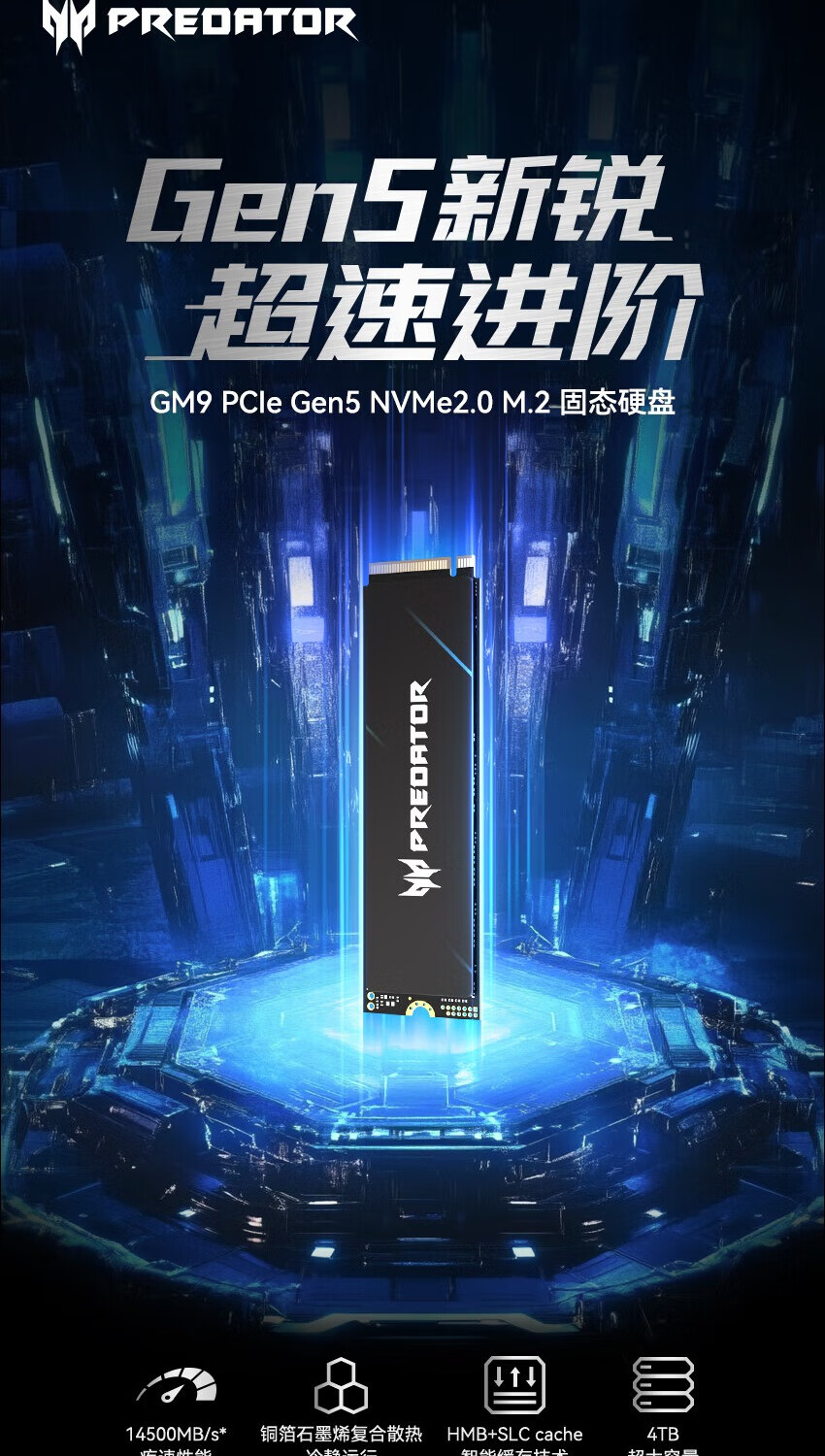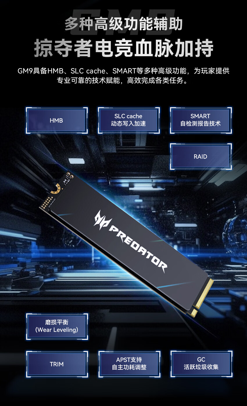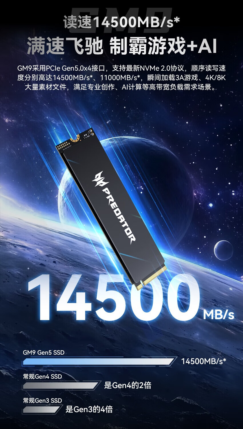 宏碁掠夺者(PREDATOR)SSD固态硬盘 M.2接口 (GM9 NVMe PCIe5.0协议) GM9-2TB