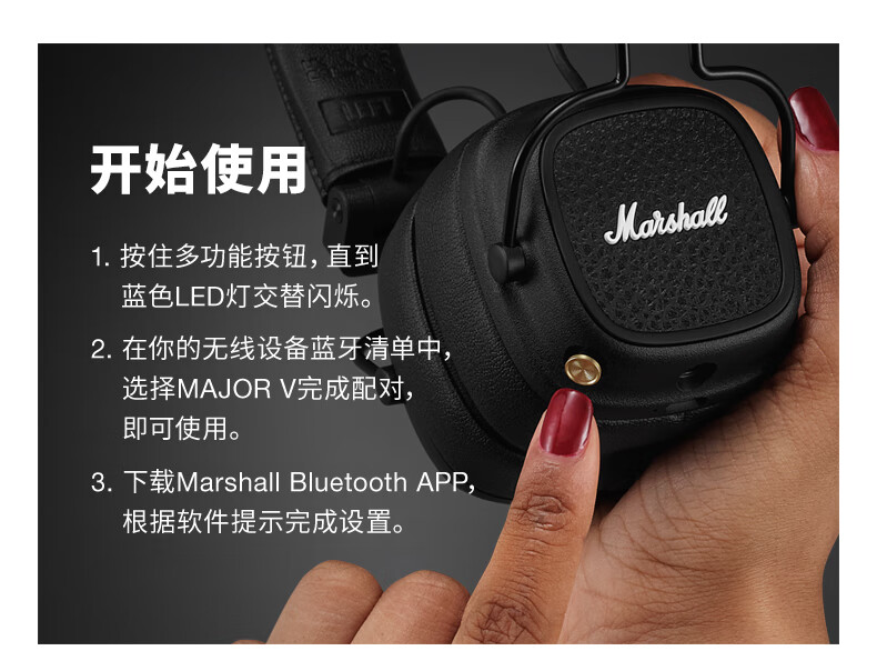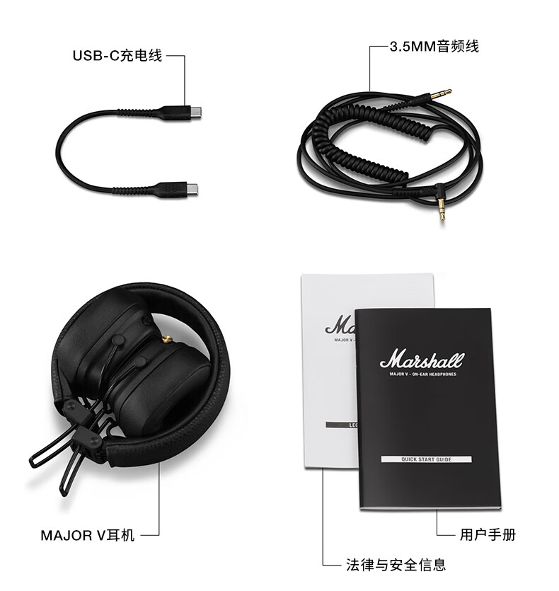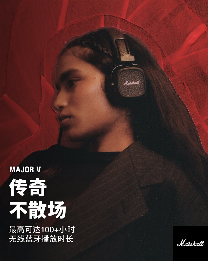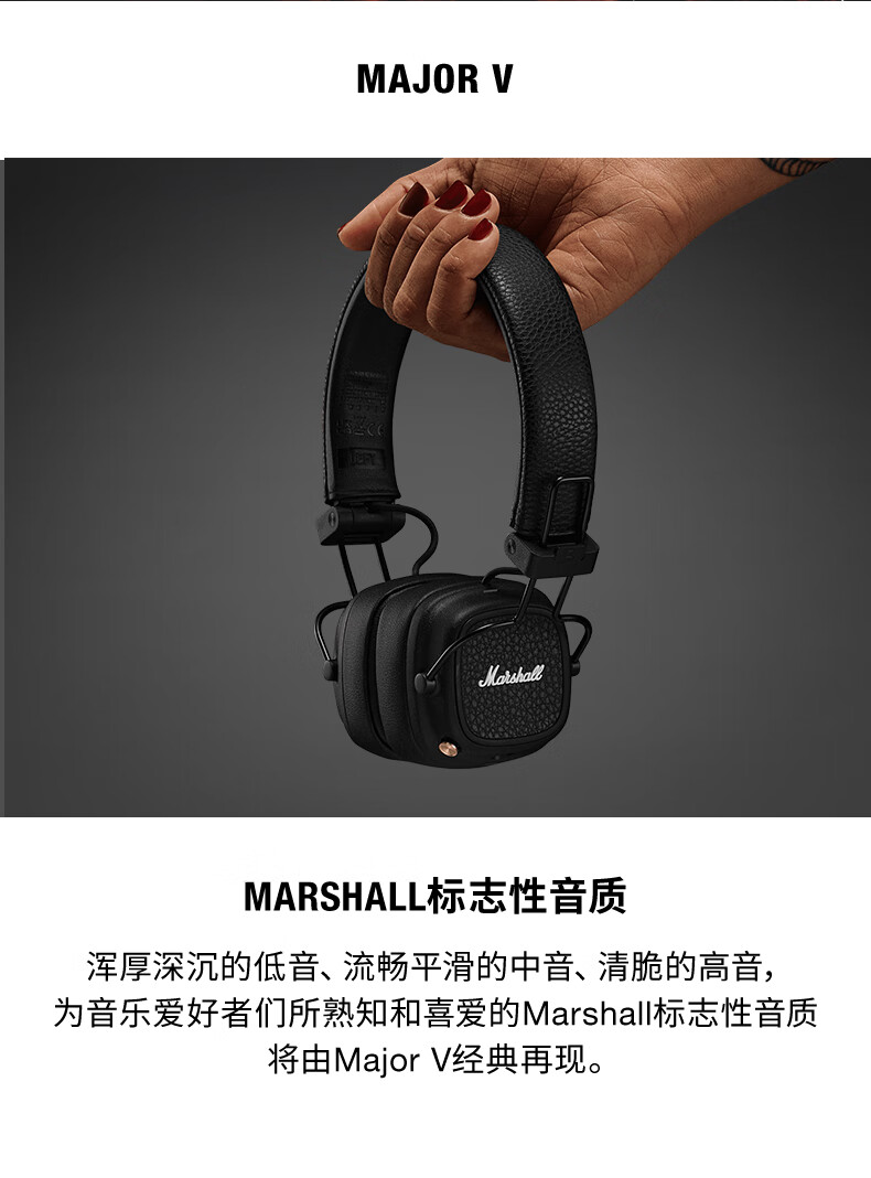 MARSHALL(马歇尔)MAJOR V耳机头戴式无线蓝牙重低音长续航可折叠户外礼物5代耳麦 棕色