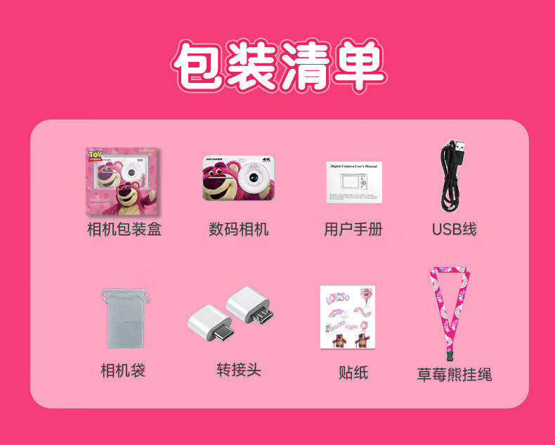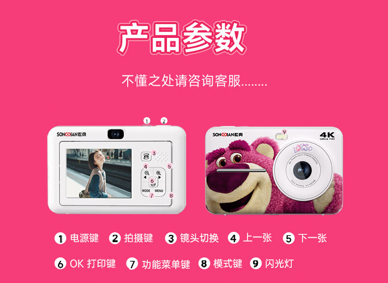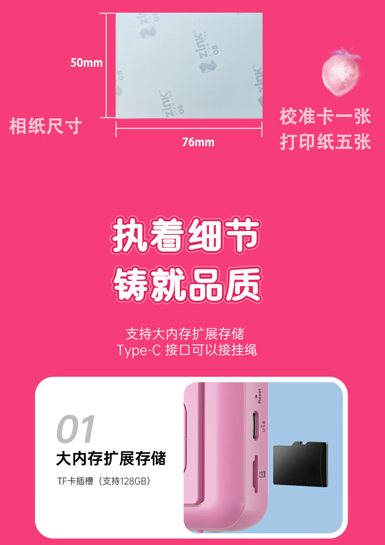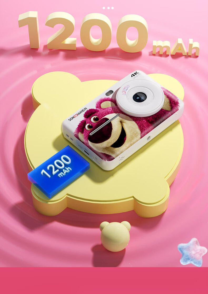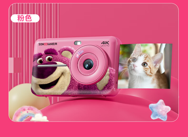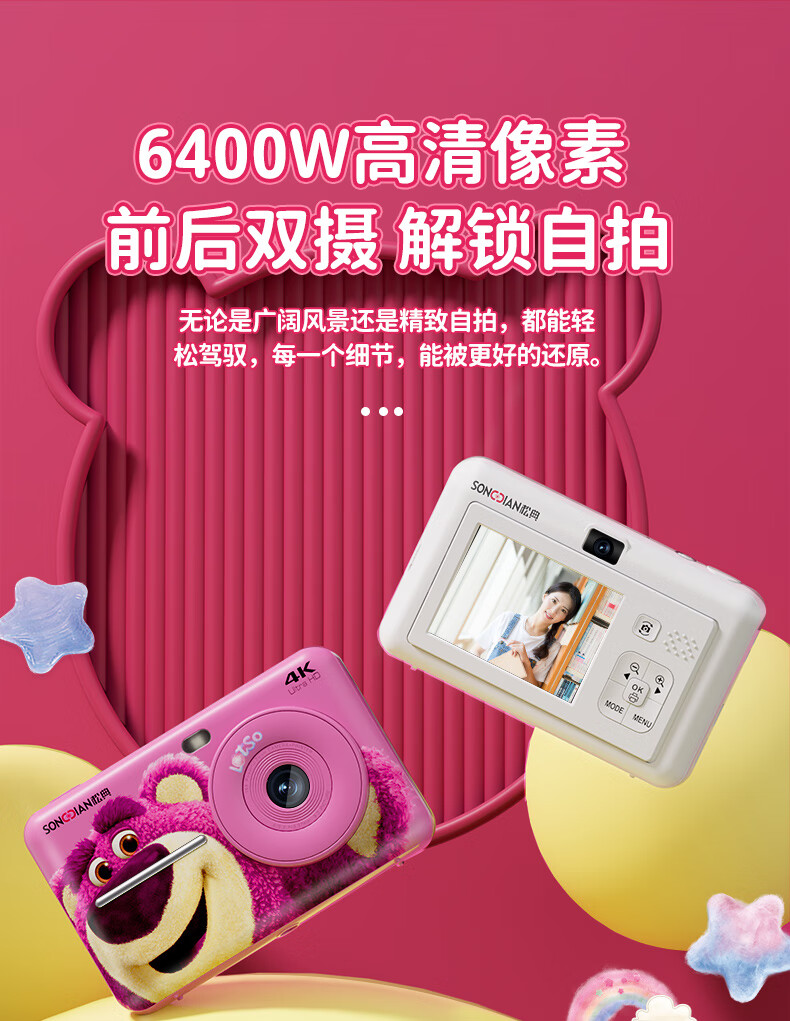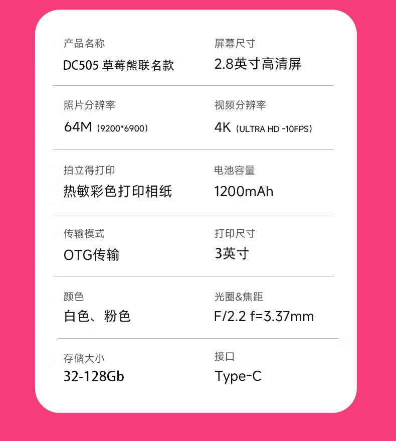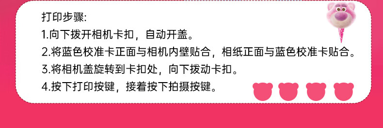 松典(SONGDIAN)拍立得草莓熊联名相机前后双摄 一次成像即拍即得旅游礼物 DC505 白色 【32G内存+30张相纸】