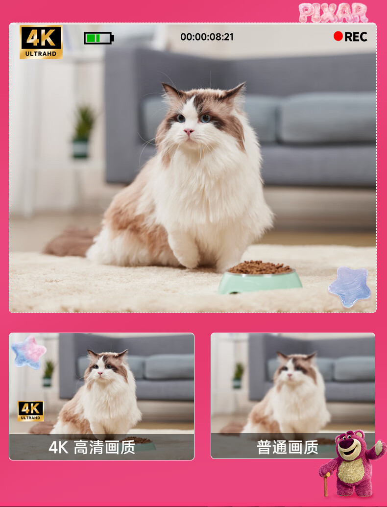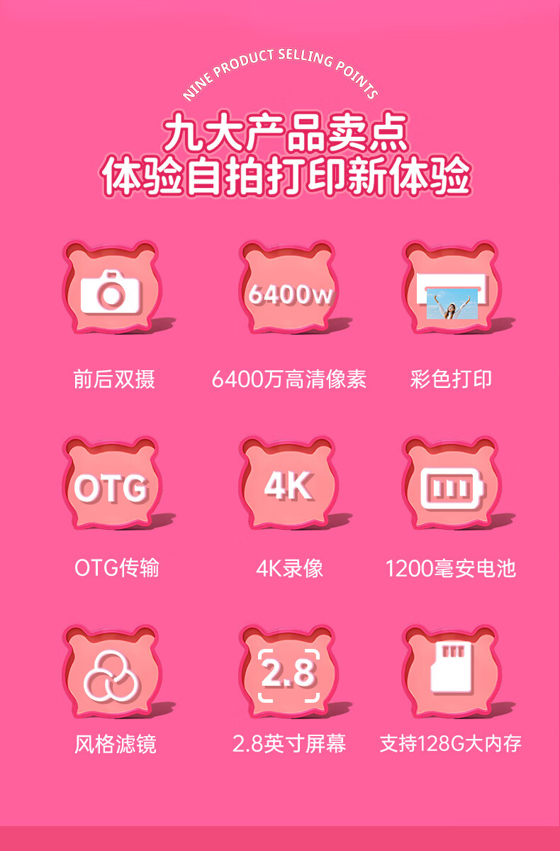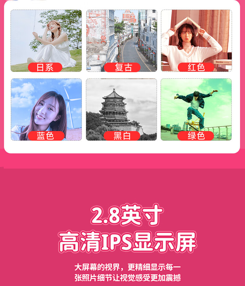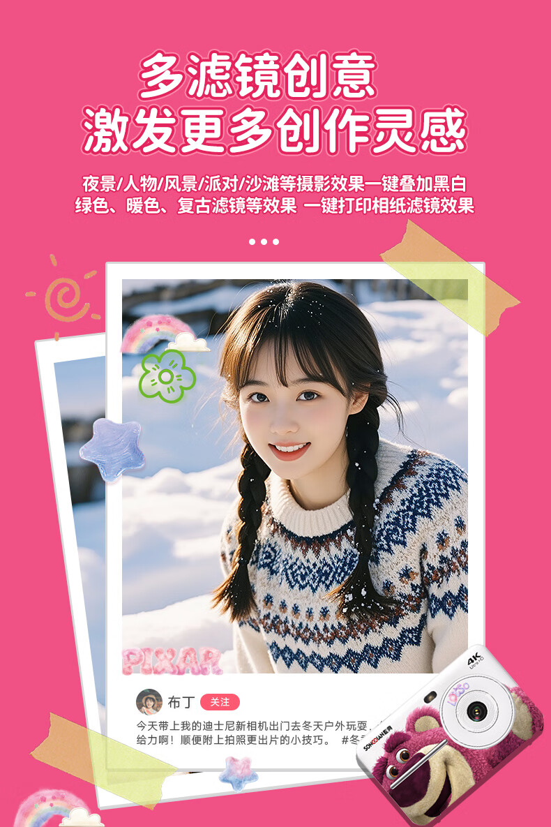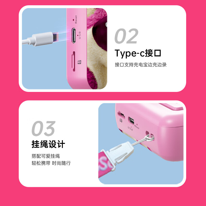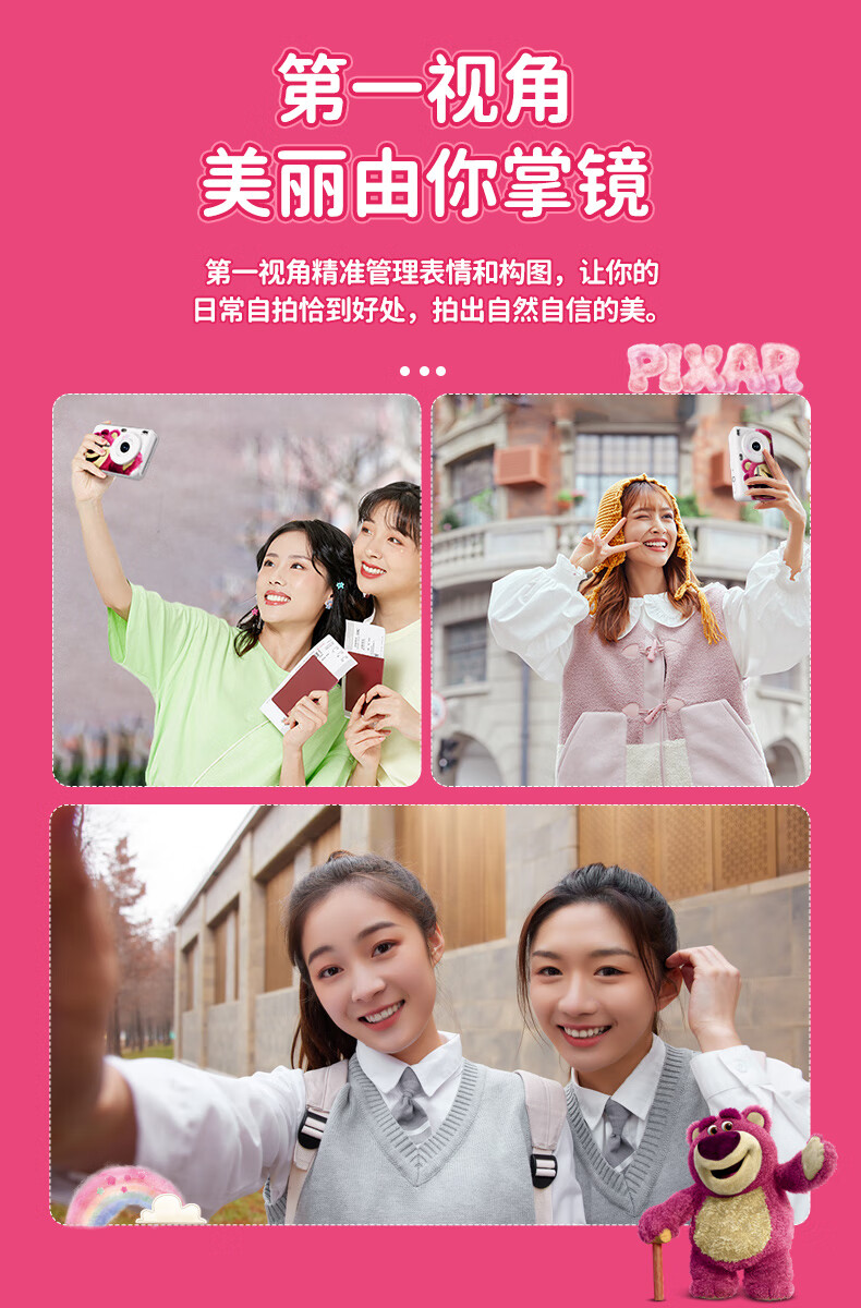 松典(SONGDIAN)拍立得草莓熊联名相机前后双摄 一次成像即拍即得旅游礼物 DC505 白色 【32G内存+30张相纸】