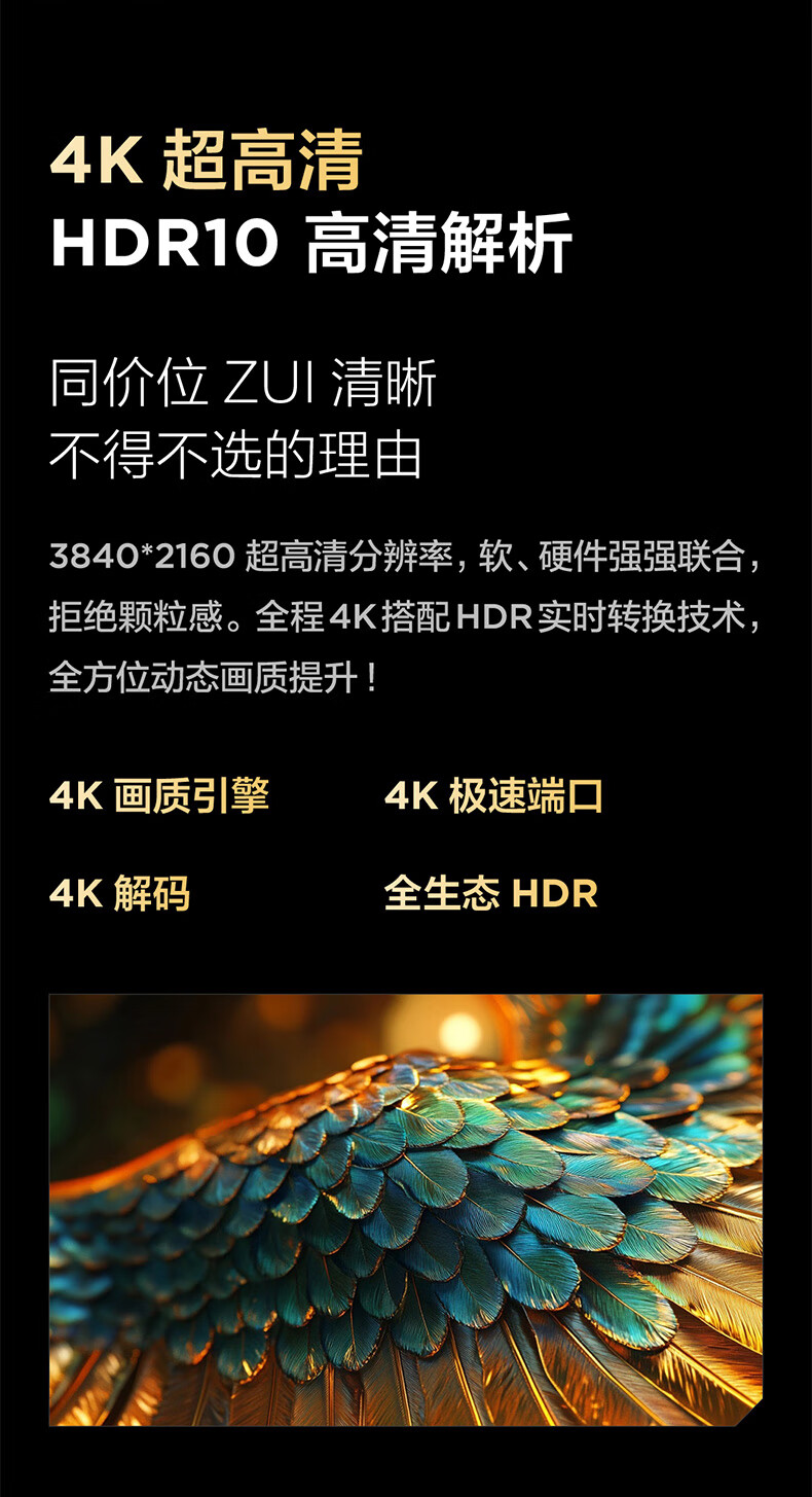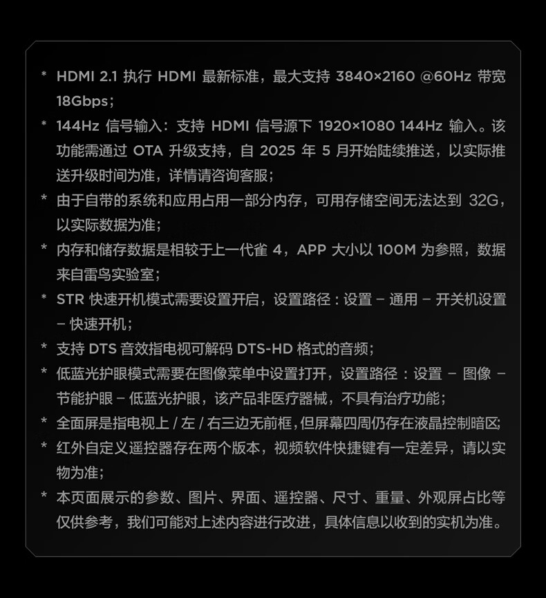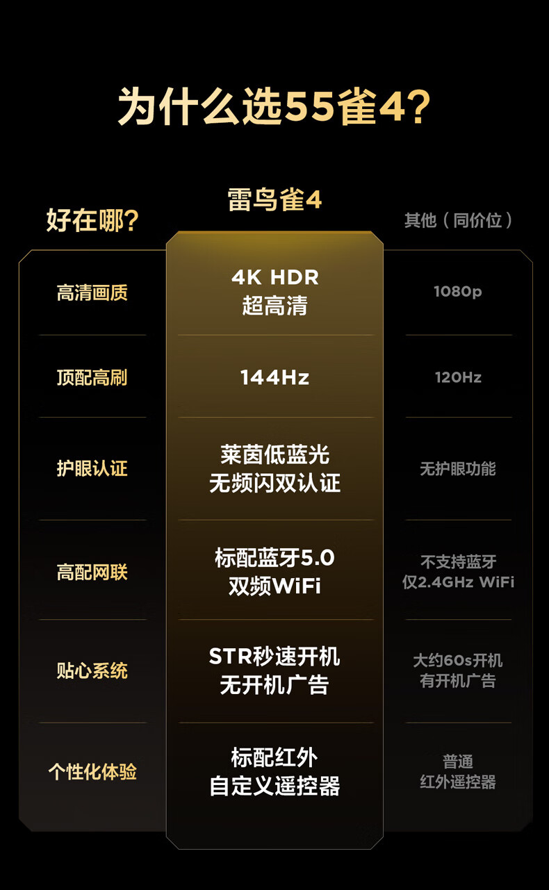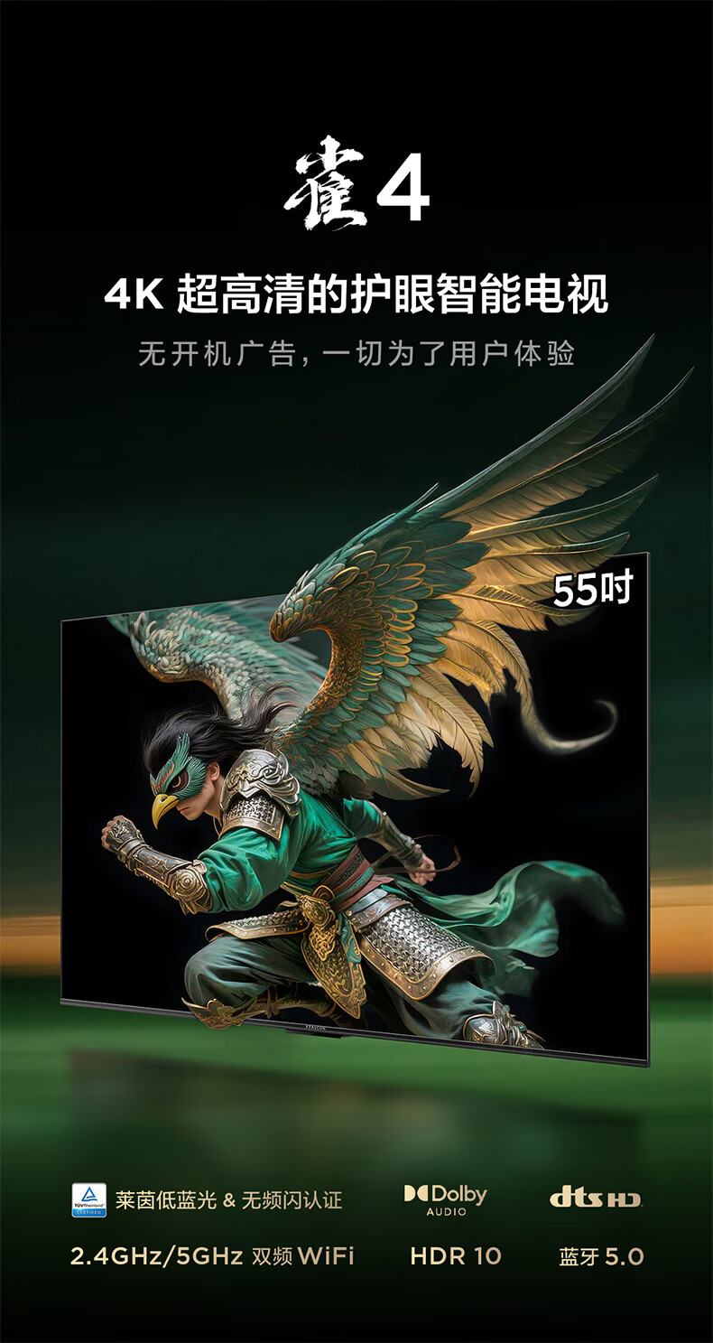 TCL雷鸟电视 55雀4 55英寸 144Hz高刷 2+32GB 护眼模式 自定义遥控器 家电国家补贴电视55F270C-JN