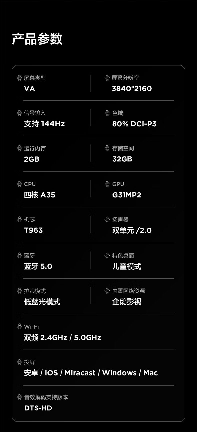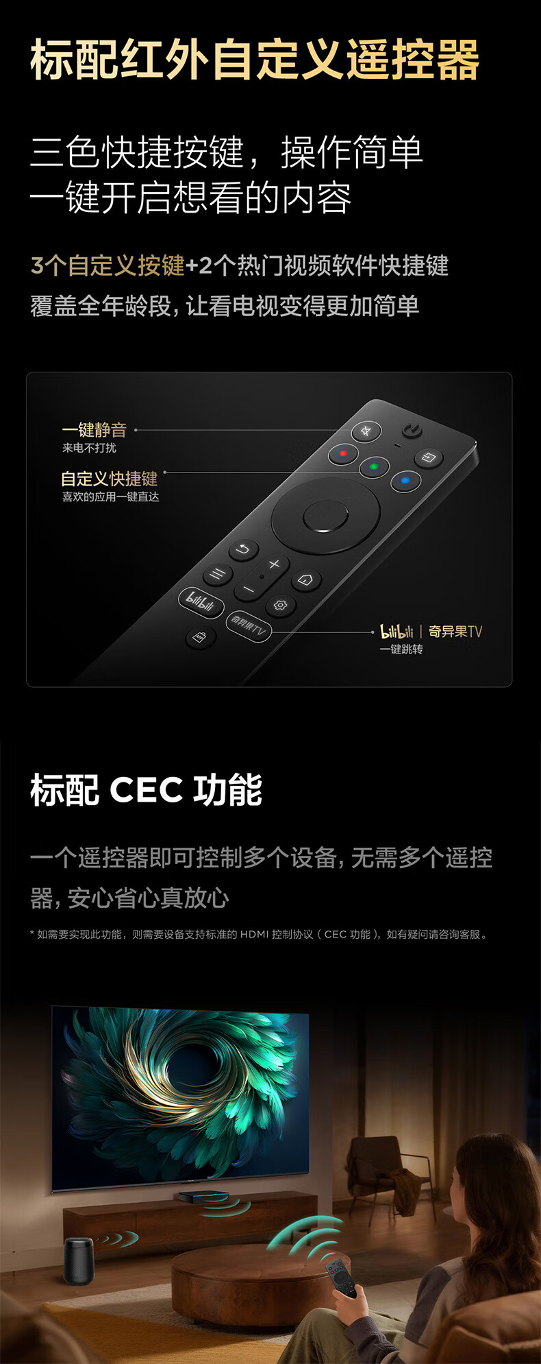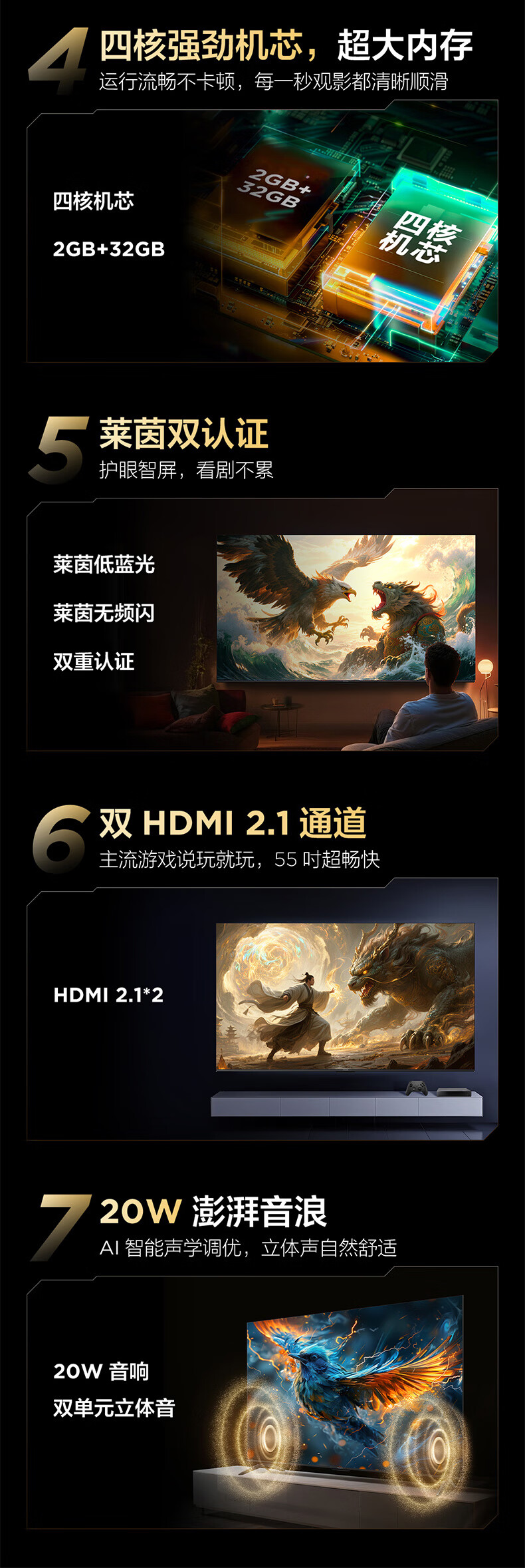 TCL雷鸟电视 55雀4 55英寸 144Hz高刷 2+32GB 护眼模式 自定义遥控器 家电国家补贴电视55F270C-JN