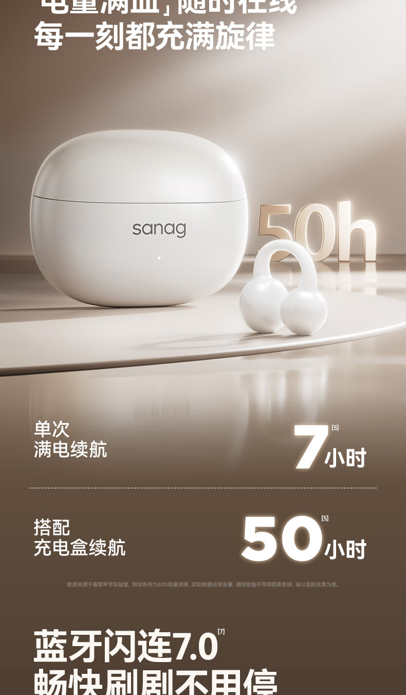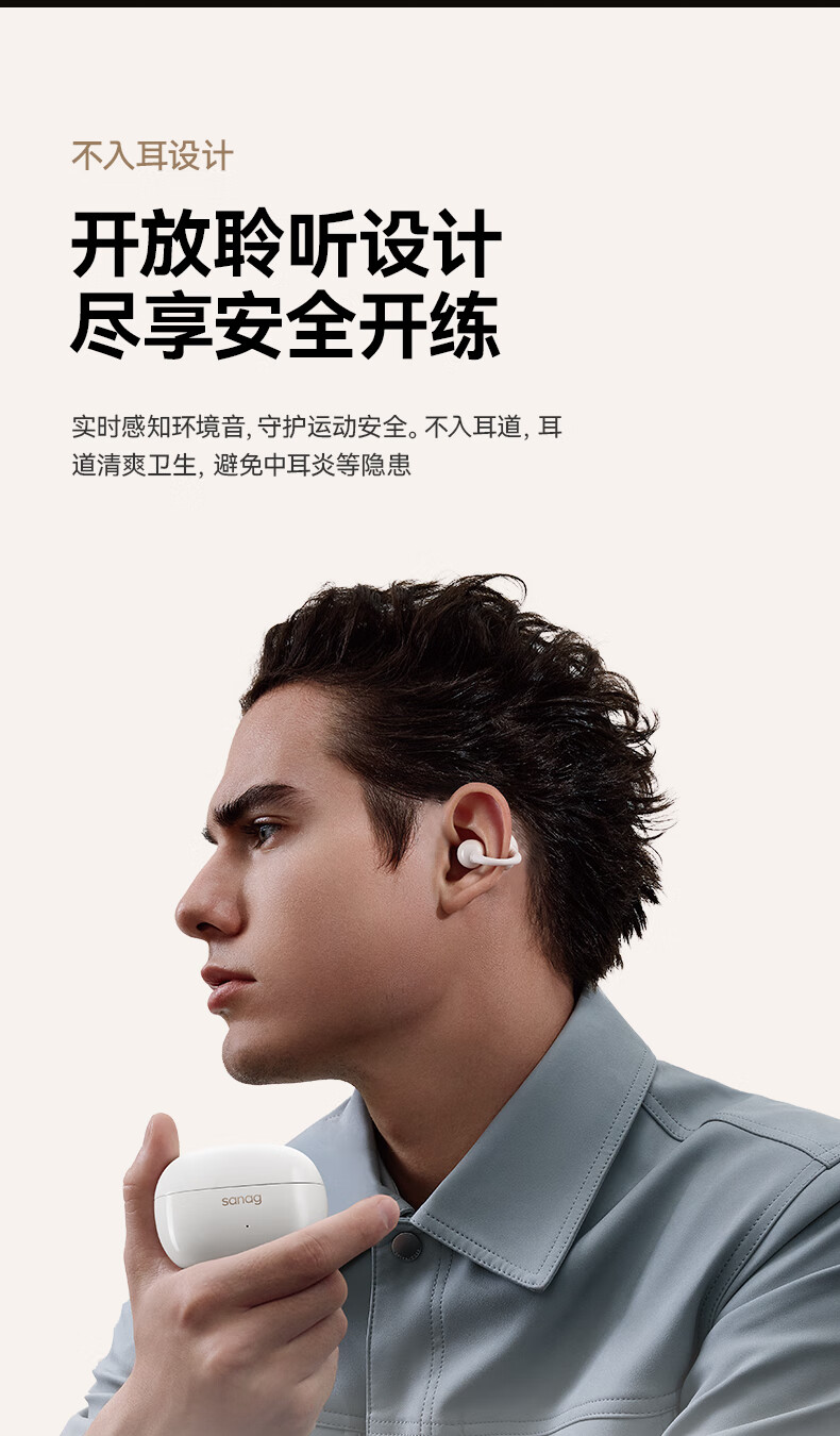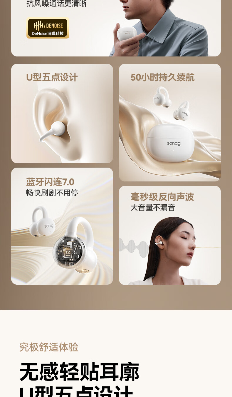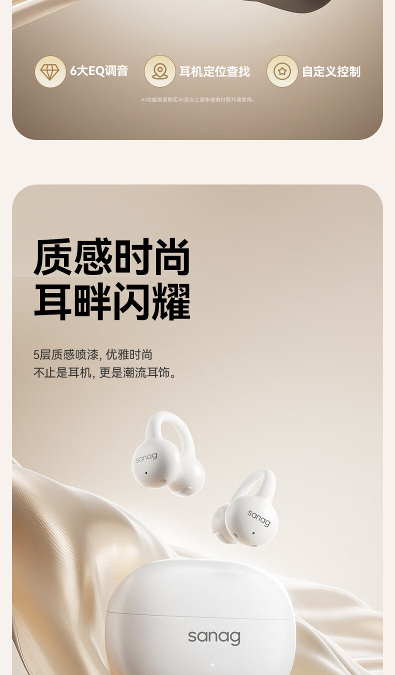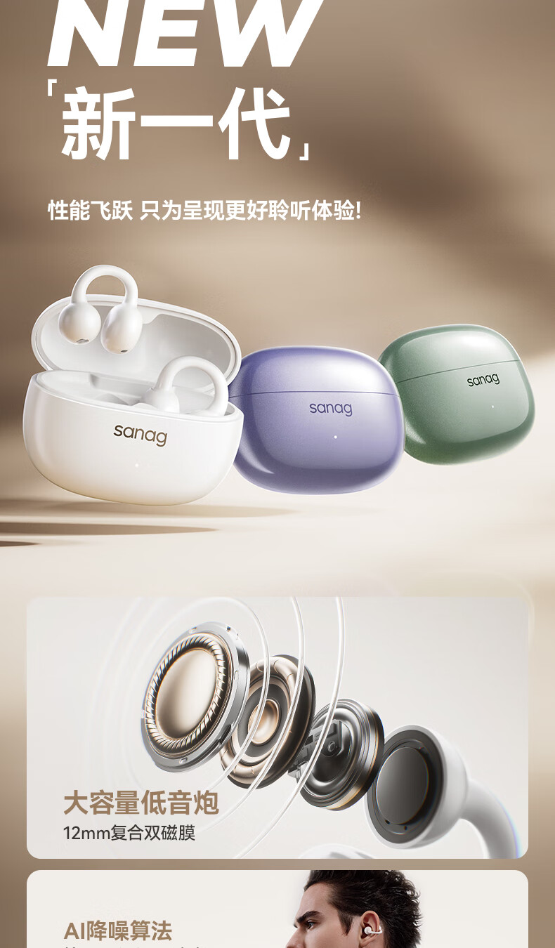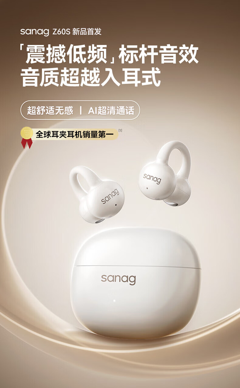 SANAG塞那蓝牙耳机国家补贴耳夹式 AI骨传导概念无线通话降噪运动无损音乐Z60S
