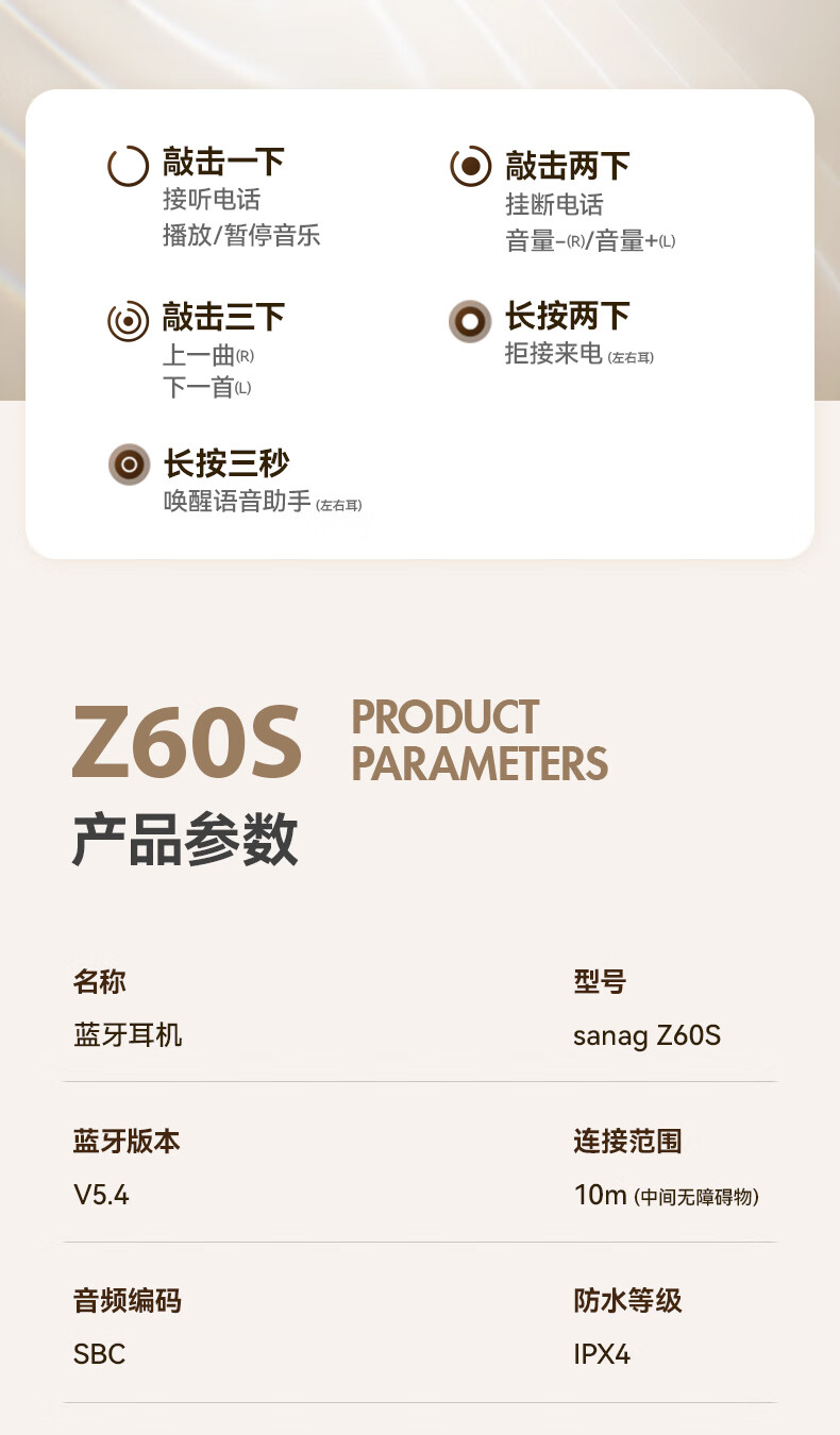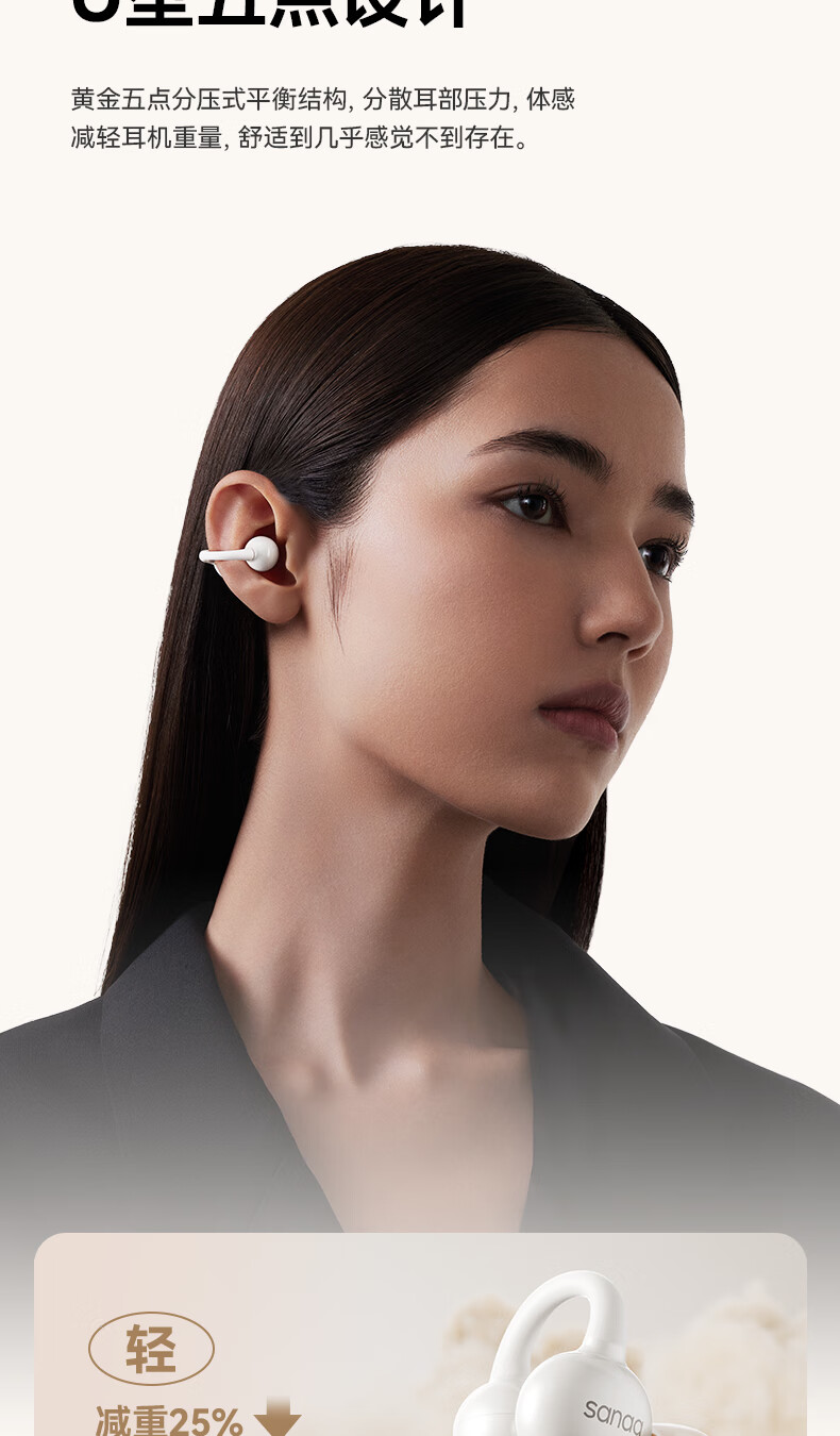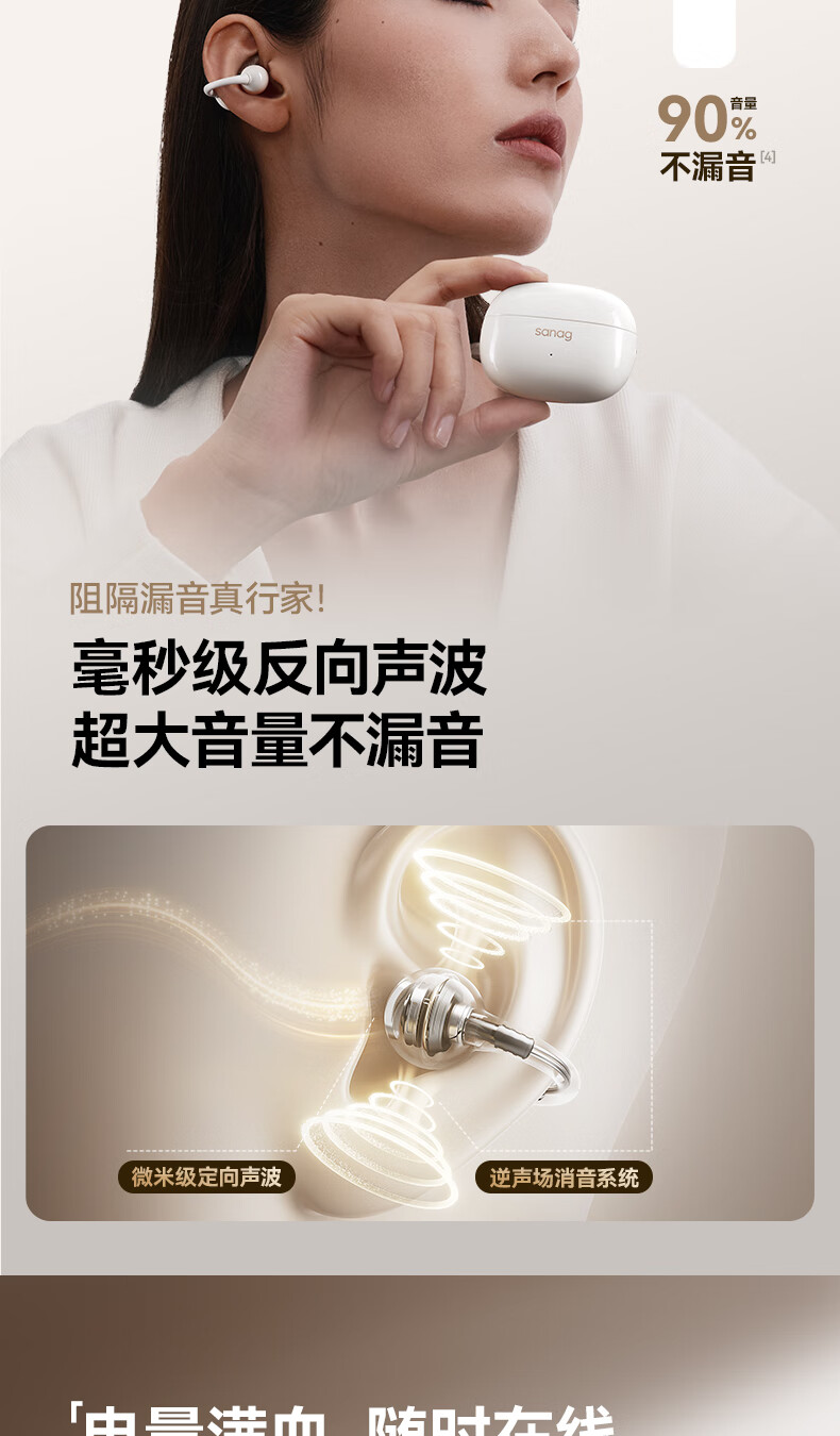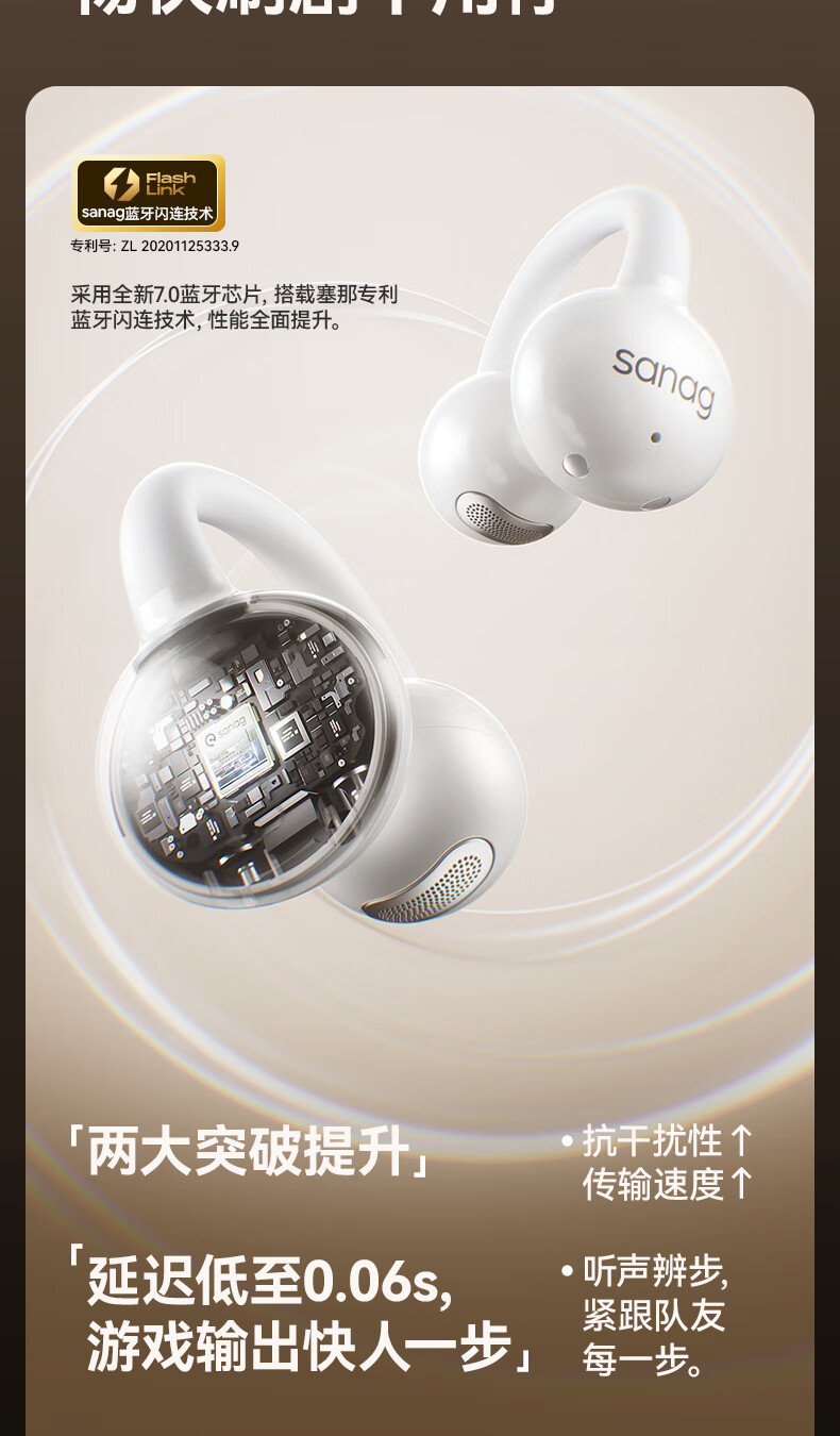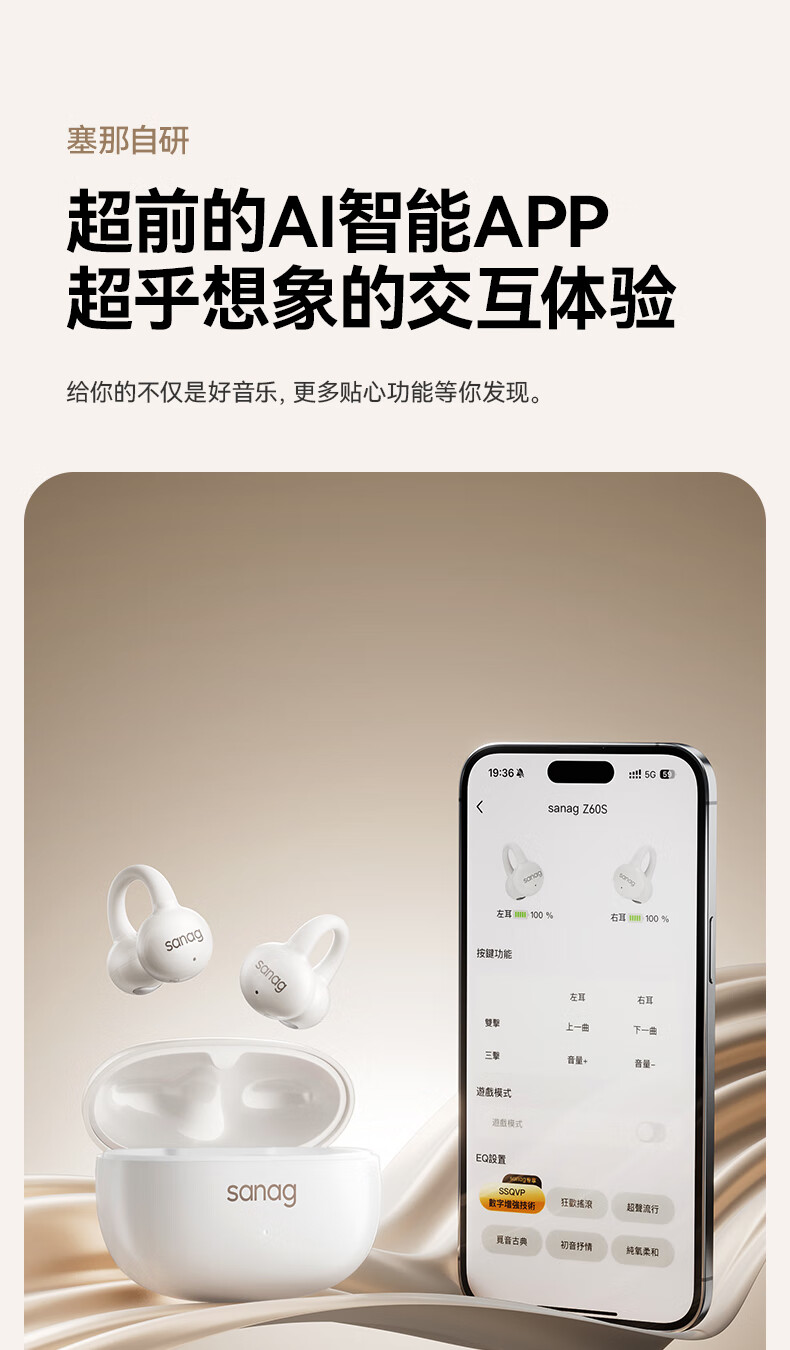 SANAG塞那蓝牙耳机国家补贴耳夹式 AI骨传导概念无线通话降噪运动无损音乐Z60S