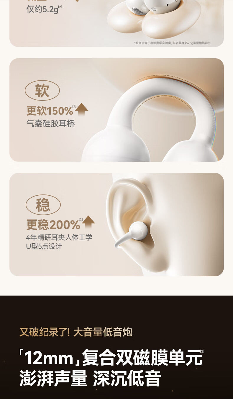 声阔(SoundCore)飞跃线Air开放式耳机挂耳式AI智能翻译不入耳无线蓝牙运动跑步适用苹果华为小米白色
