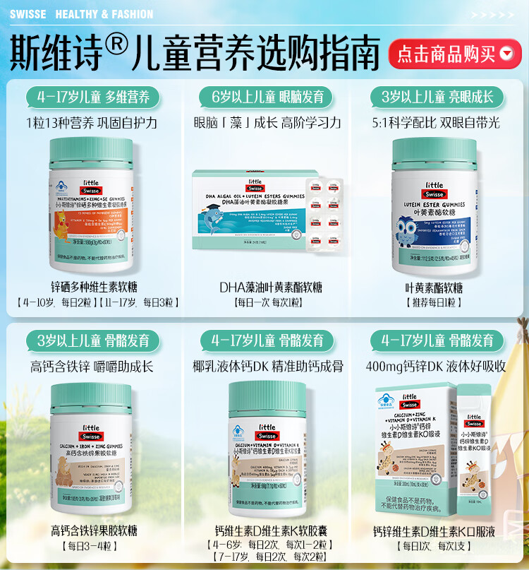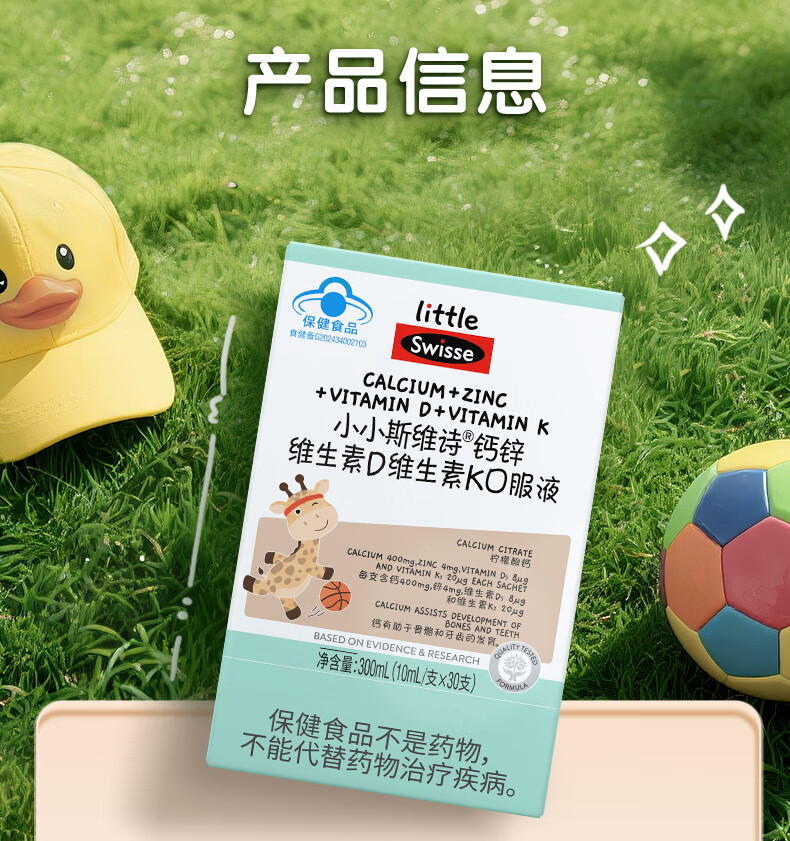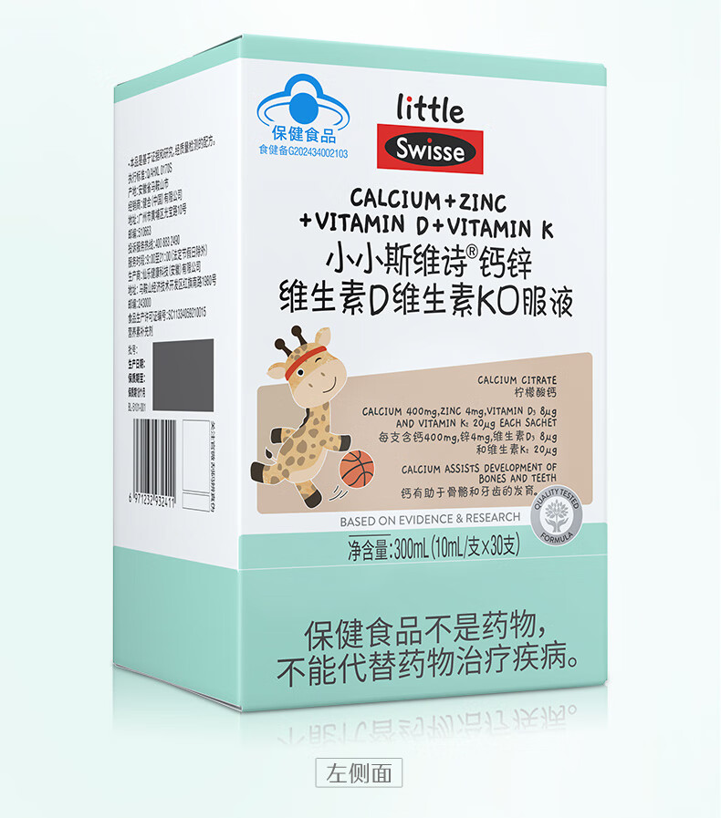 Swisse斯维诗长颈鹿钙 液体钙锌维生素DK 4-17岁青少年补钙 30支*2盒