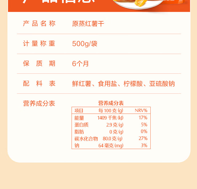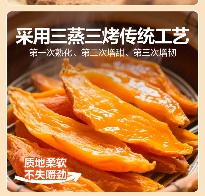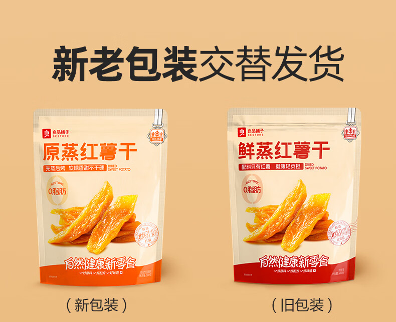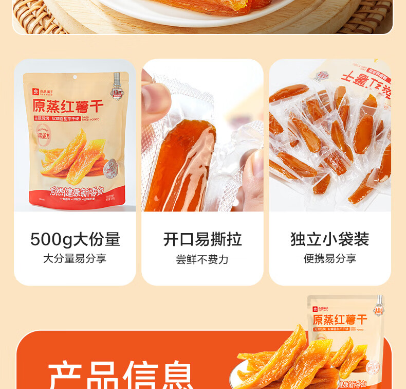 良品铺子原蒸红薯干番薯干地瓜干条低脂代餐健康零食解馋独立包装500g