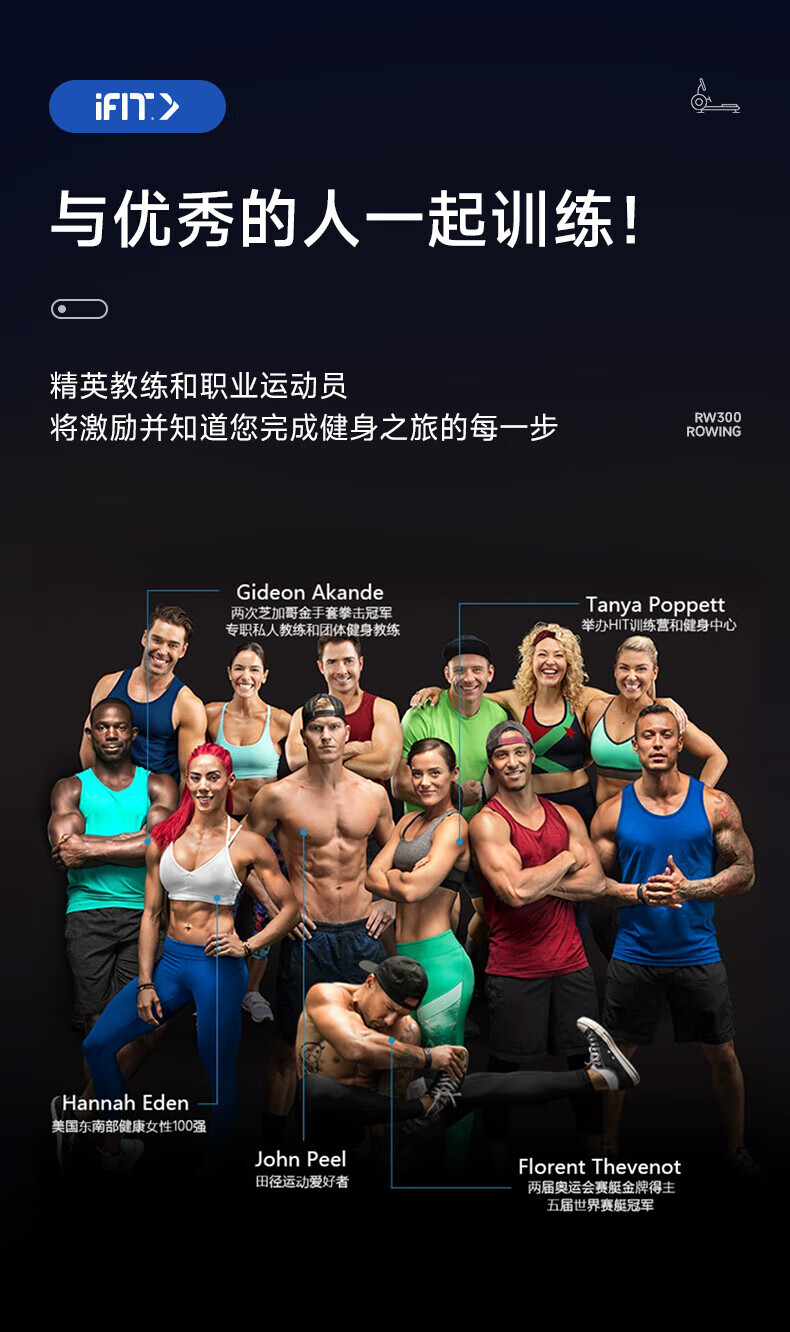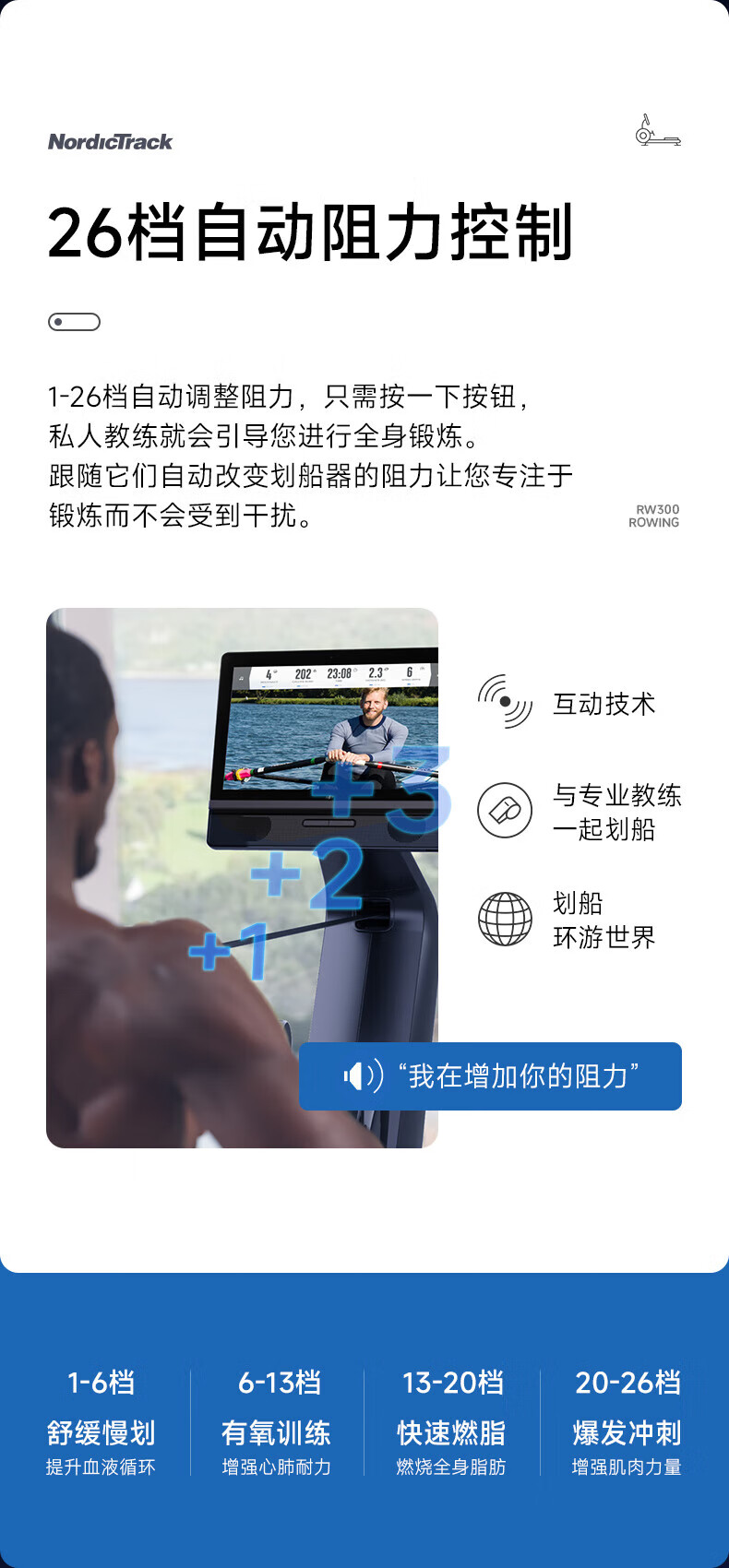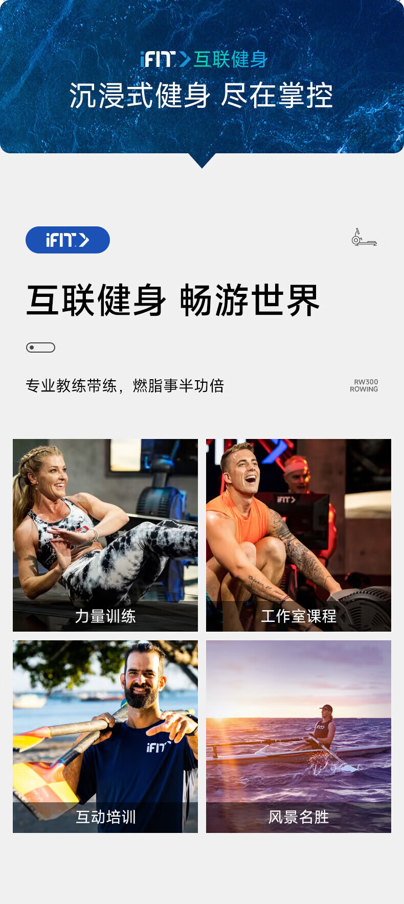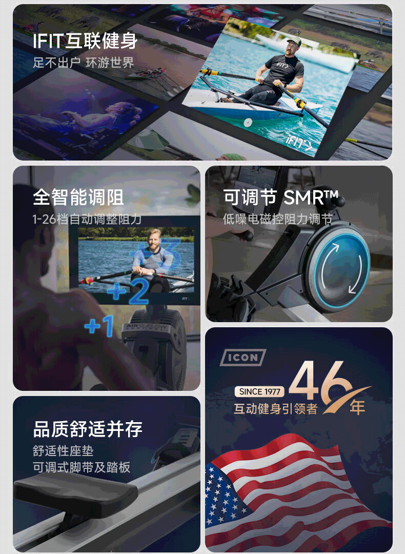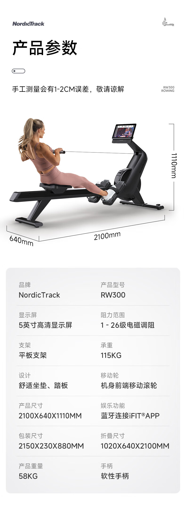 爱康(ICON)划船机可折叠划船器健身房家用静音磁控室内划艇有氧器材 RW300 【轻商级材质 iFIT课程】 包安装