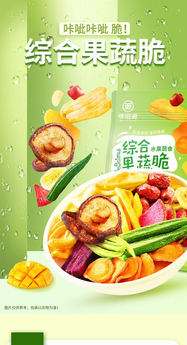 味滋源 综合果蔬脆 蜜钱果干 零食 香菇脆秋葵干即食 混合果蔬脆 综合果蔬脆 100g/袋 2份
