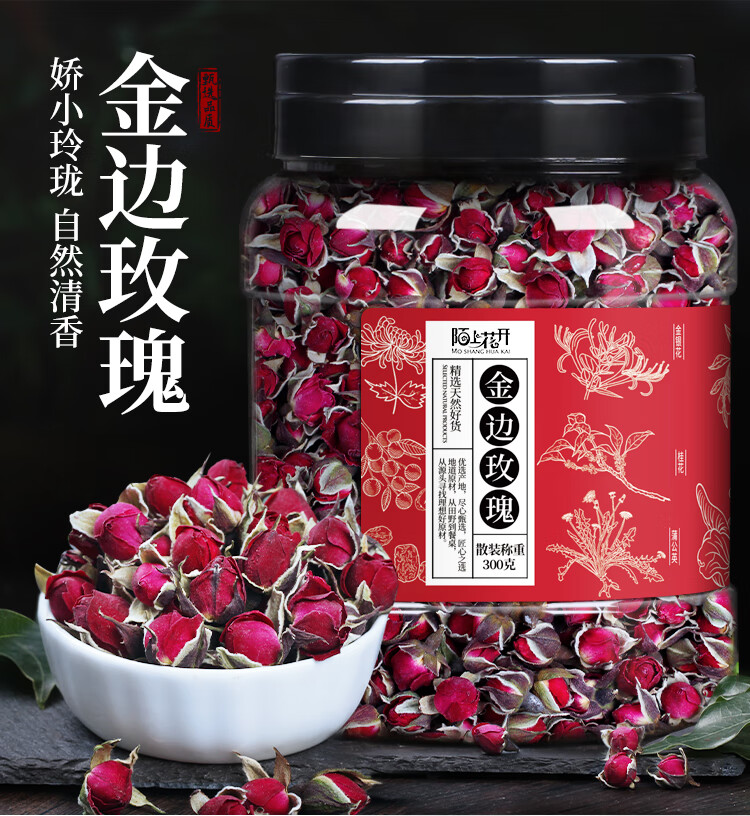 陌上花开云南金边玫瑰花天然干玫瑰花蕾另售玫瑰花茶300g/罐