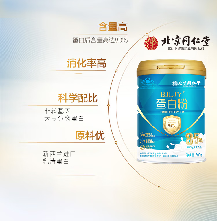 朕皇北京同仁堂蛋白粉增强免疫力乳清蛋白吸收营养保健品父母长辈礼品 蛋白粉500g*2罐