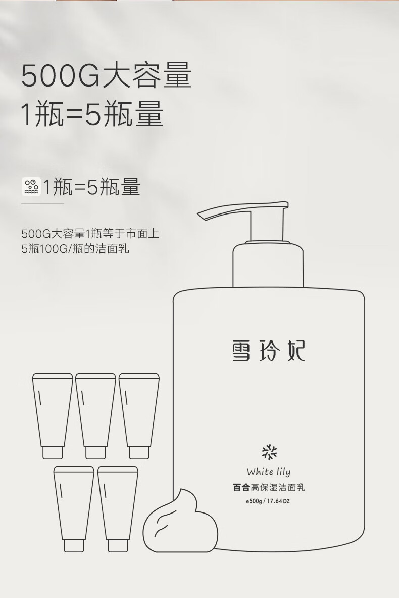 雪玲妃【精选厂家】百合高保湿洗面奶 氨基酸洗面奶500g+去角质250g