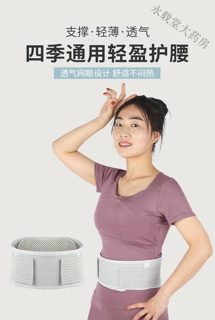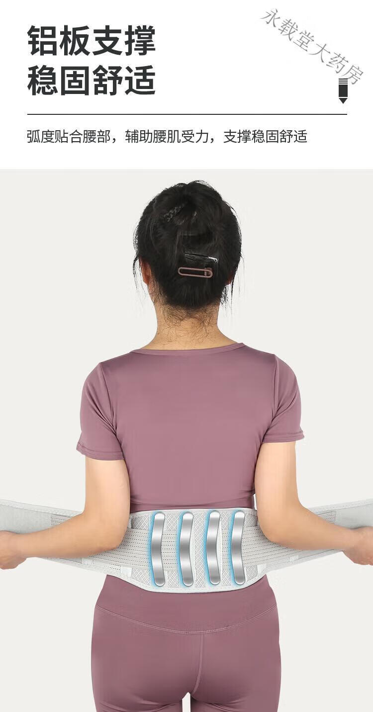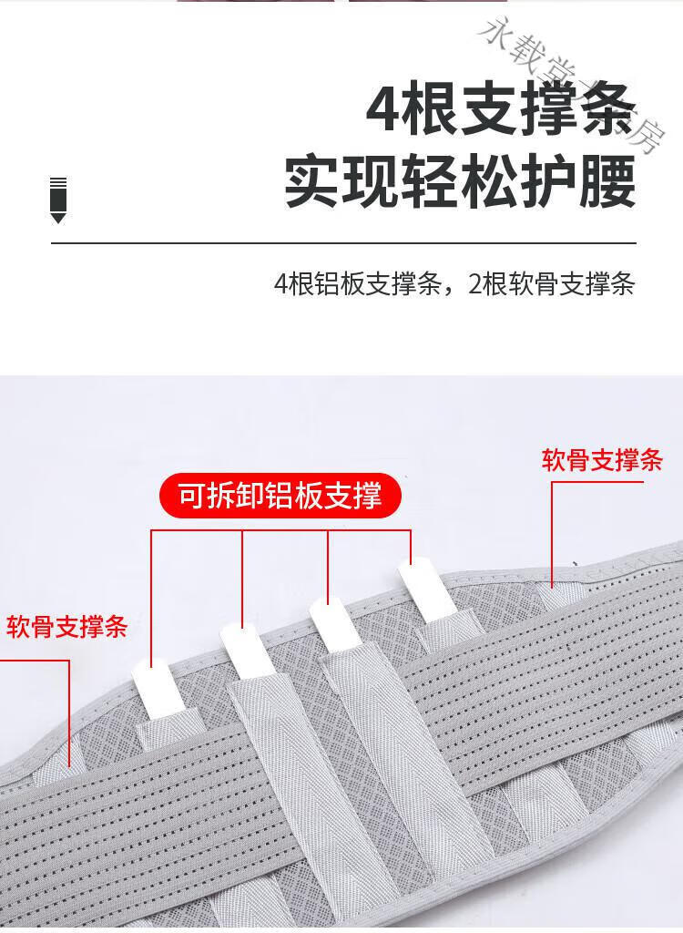 通用医用级四季透气护腰带保暖腰间盘护腰突出托腰肌钢板劳损支撑轻薄 灰色四季窄版护腰【餸发热垫】 S【80-105斤】