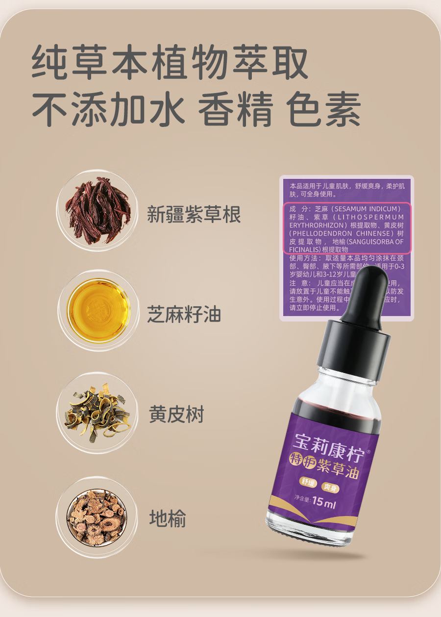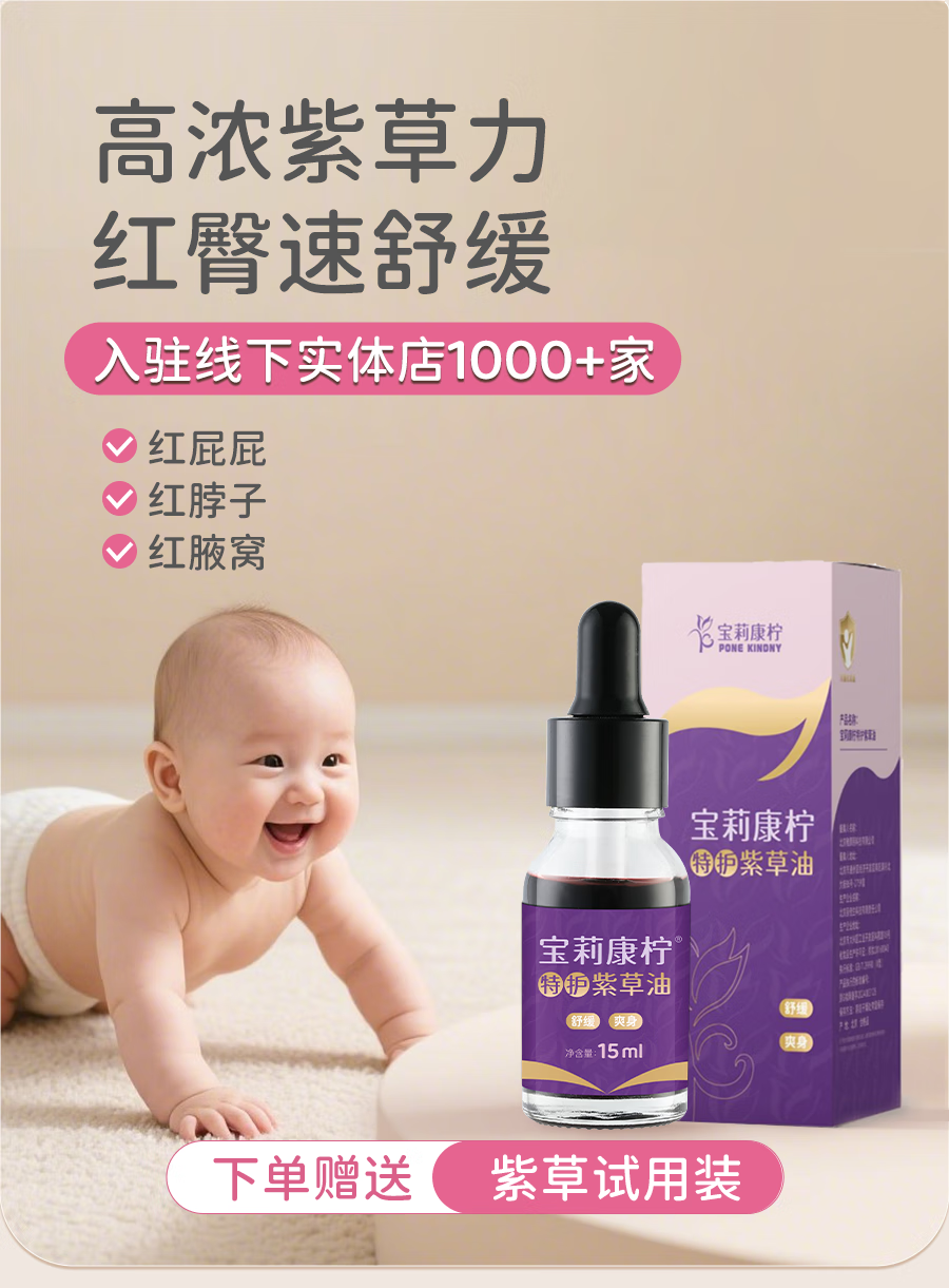 宝莉康柠特护紫草油婴儿紫草油红屁屁专用护臀膏宝宝护臀霜 【93%顾客选择】特护紫草油38ml