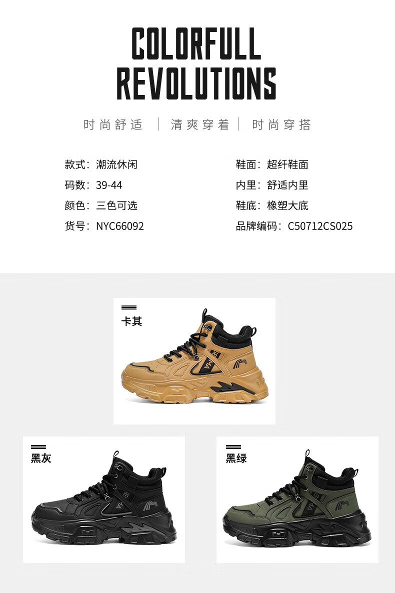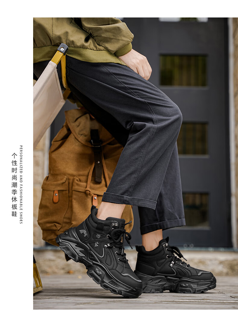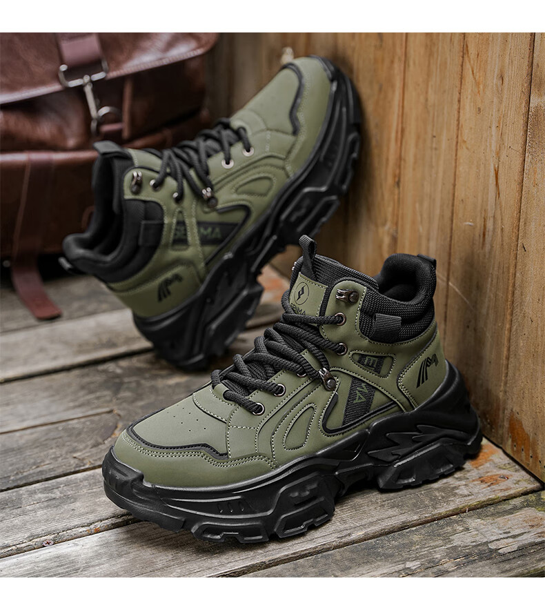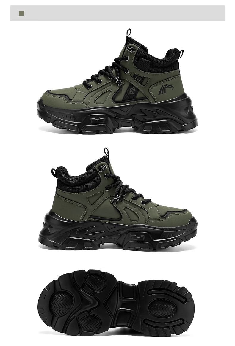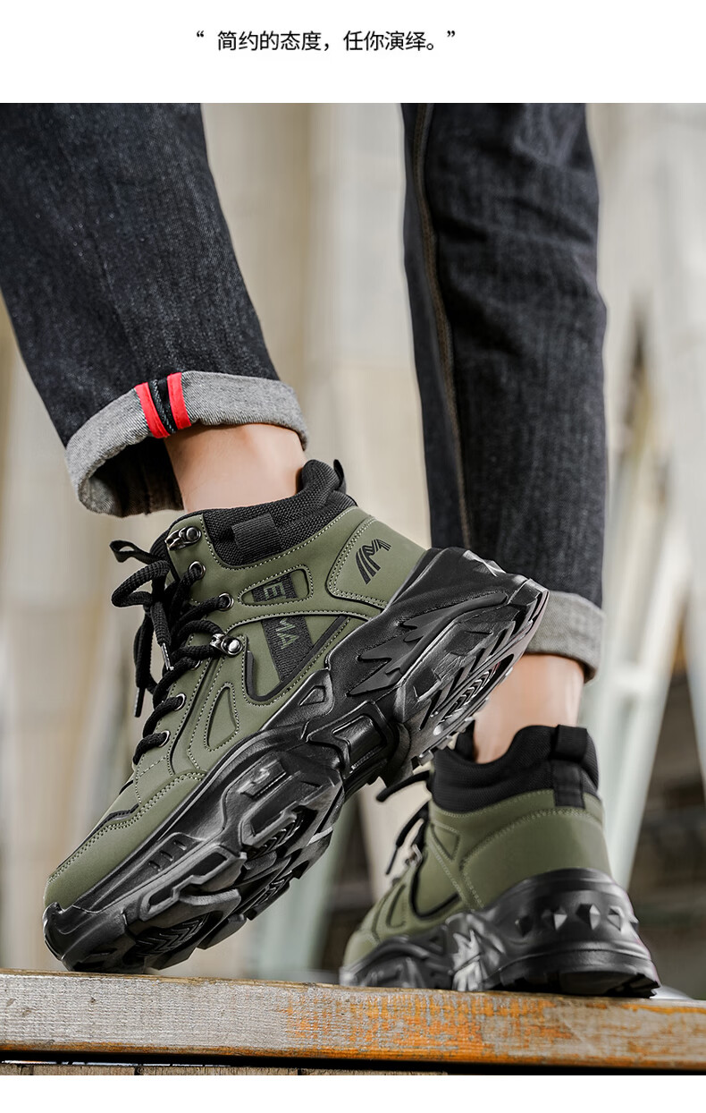 森馬2025新款男鞋秋季高帮真皮防水防滑耐磨马丁靴户外登山运动工装靴 黑绿 【基础款】 40