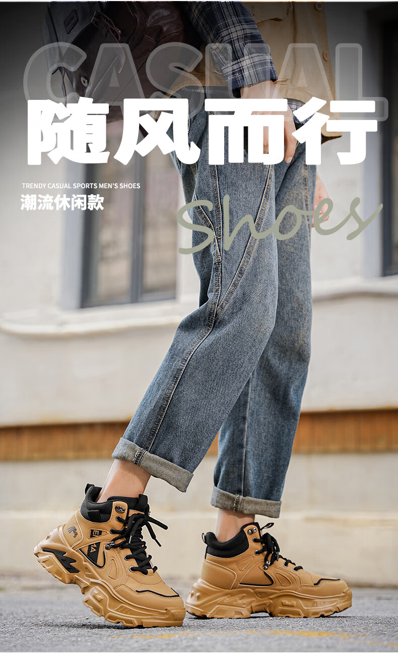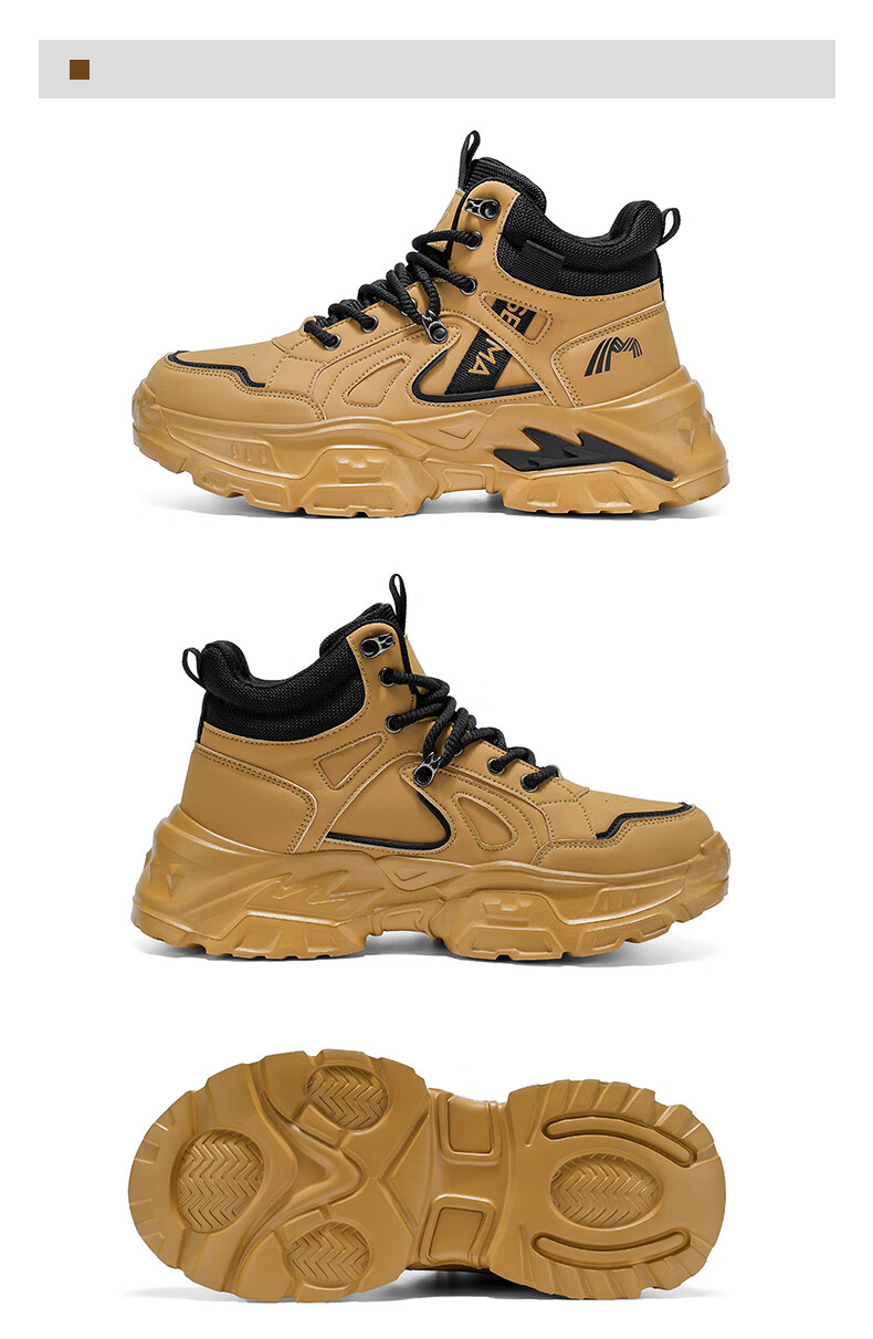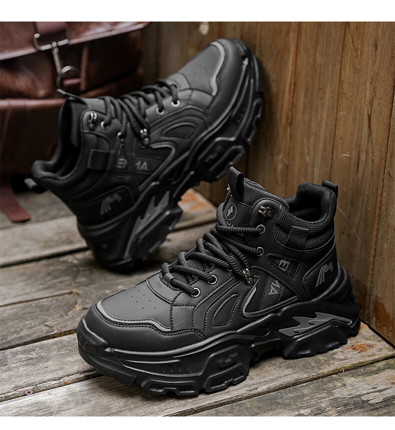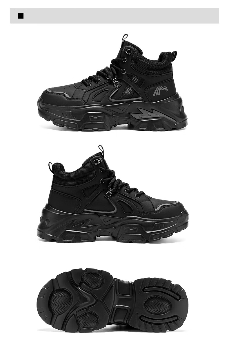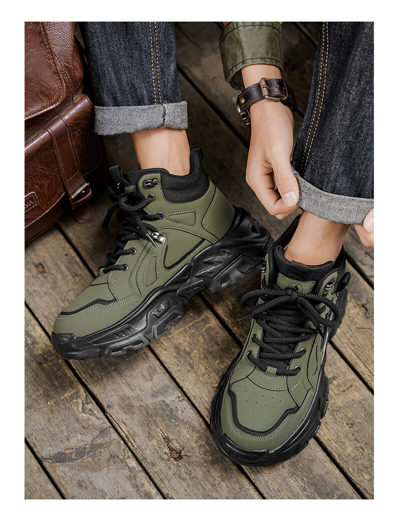 森馬2025新款男鞋秋季高帮真皮防水防滑耐磨马丁靴户外登山运动工装靴 黑绿 【基础款】 40
