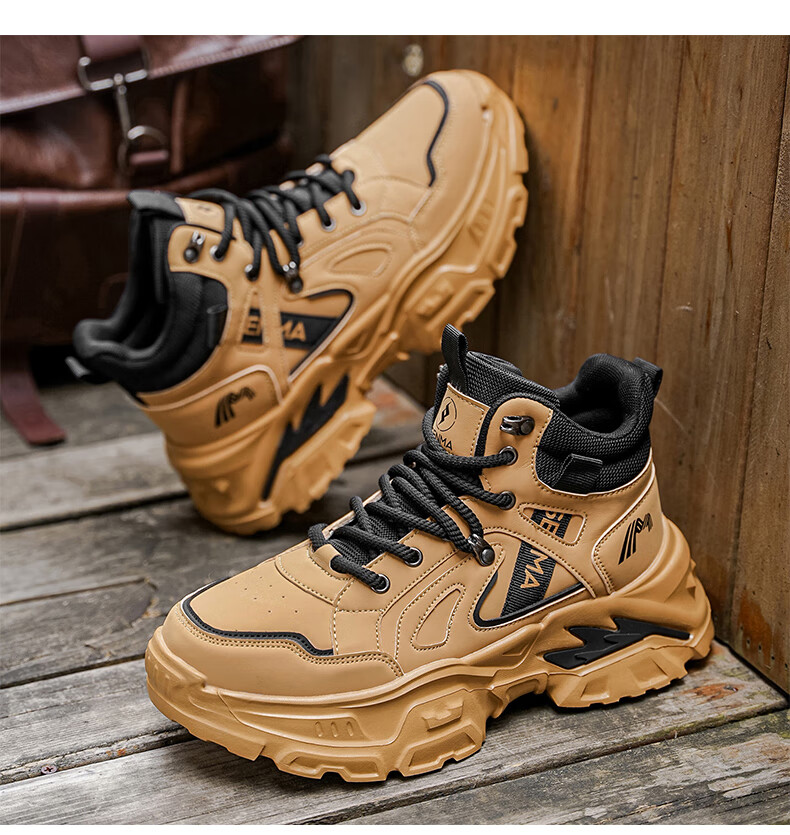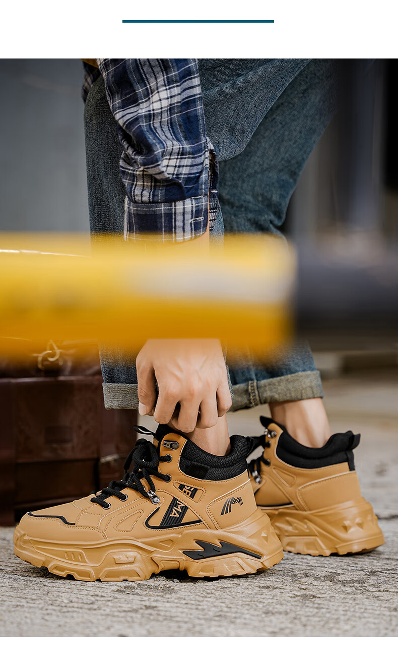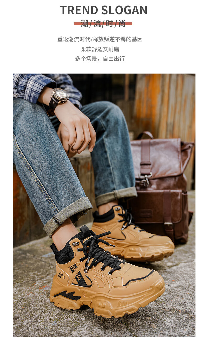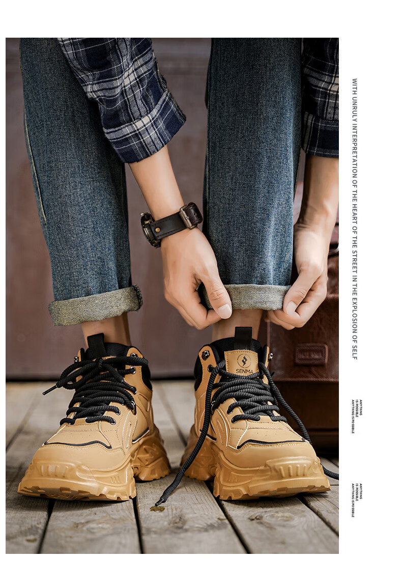 森馬2025新款男鞋秋季高帮真皮防水防滑耐磨马丁靴户外登山运动工装靴 黑绿 【基础款】 40