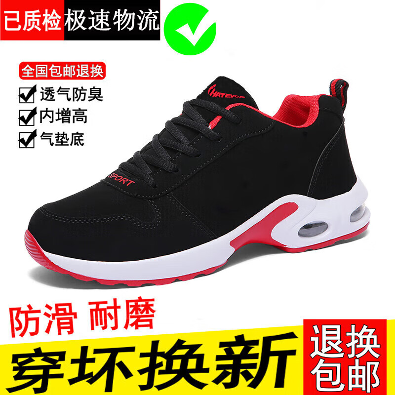 轻奢潮流男鞋2025秋季新款网面防滑潮流运动鞋男士百搭跑步鞋子男 NK666黑白【皮面款】 41
