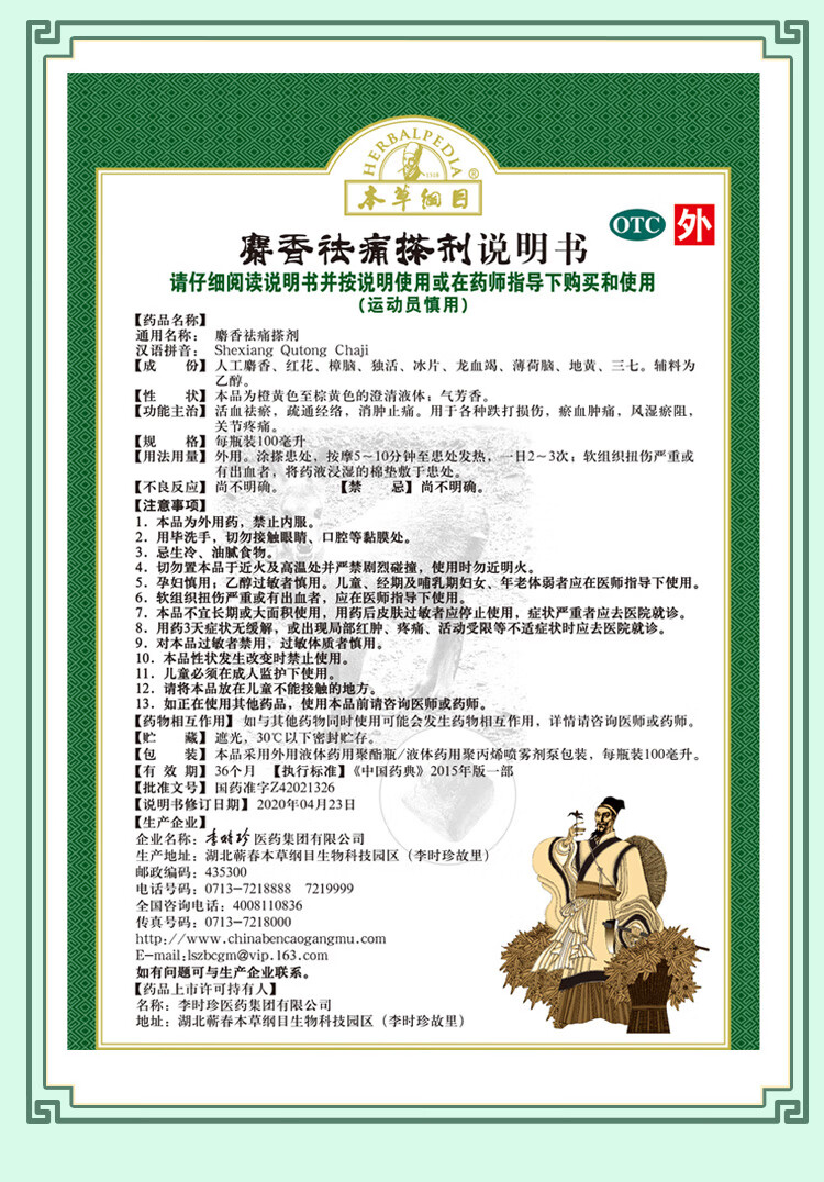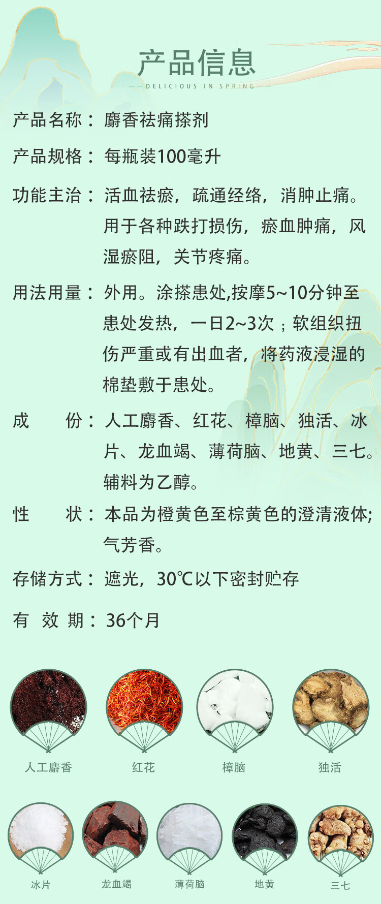 本草纲目 麝香祛痛搽剂100ml/瓶 活血祛瘀疏通经络消肿止痛 跌打损伤 瘀血肿痛 风湿瘀阻 关节疼痛