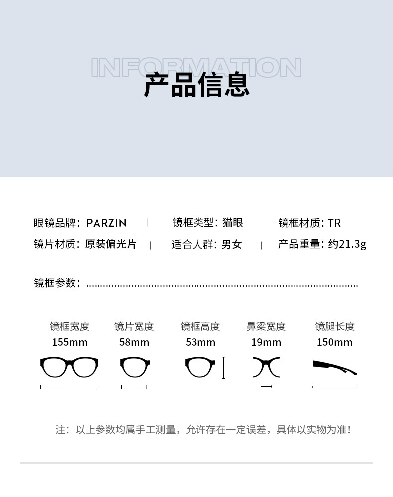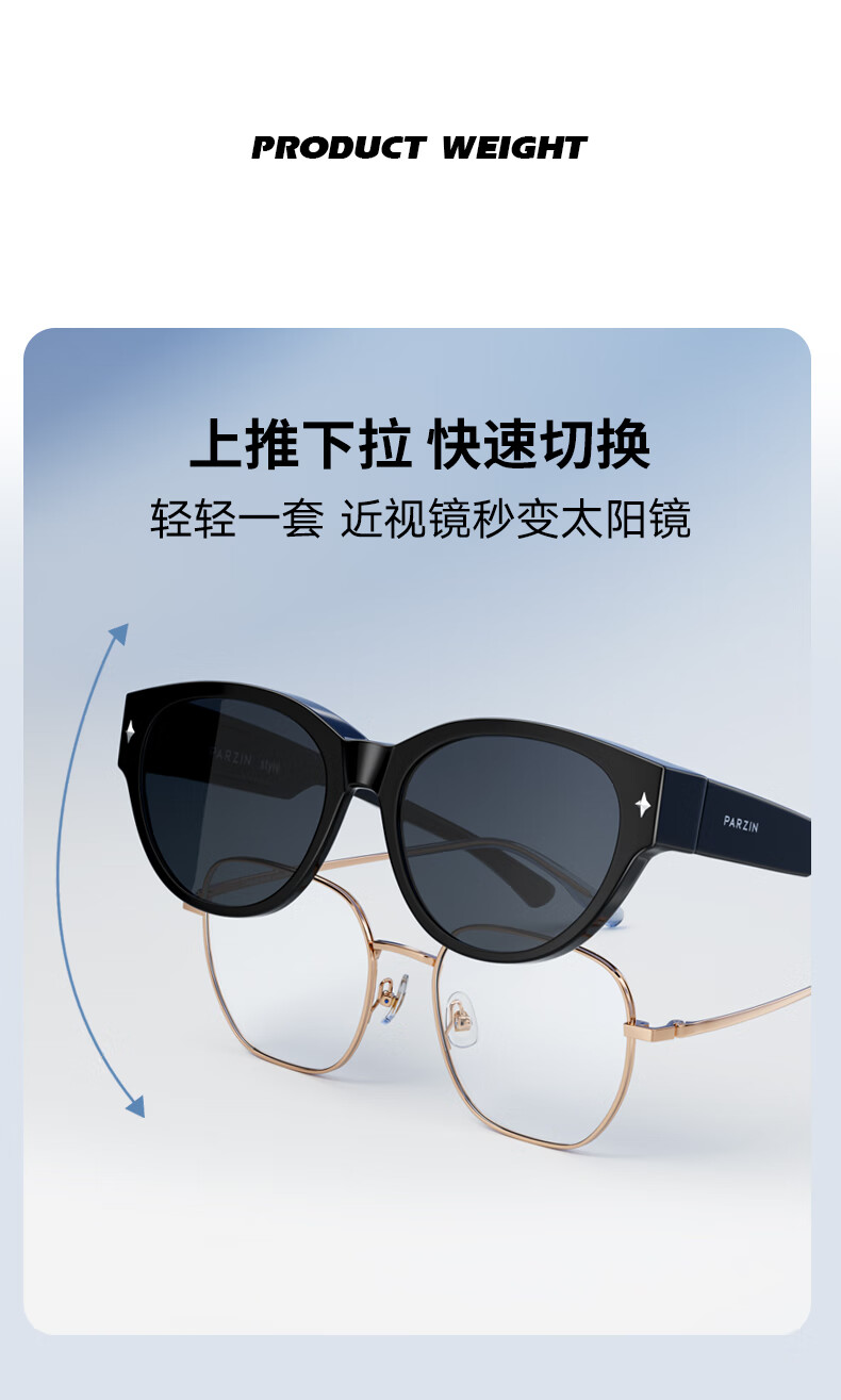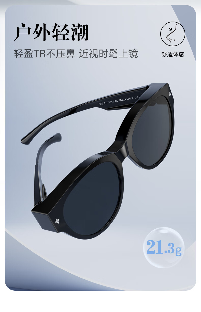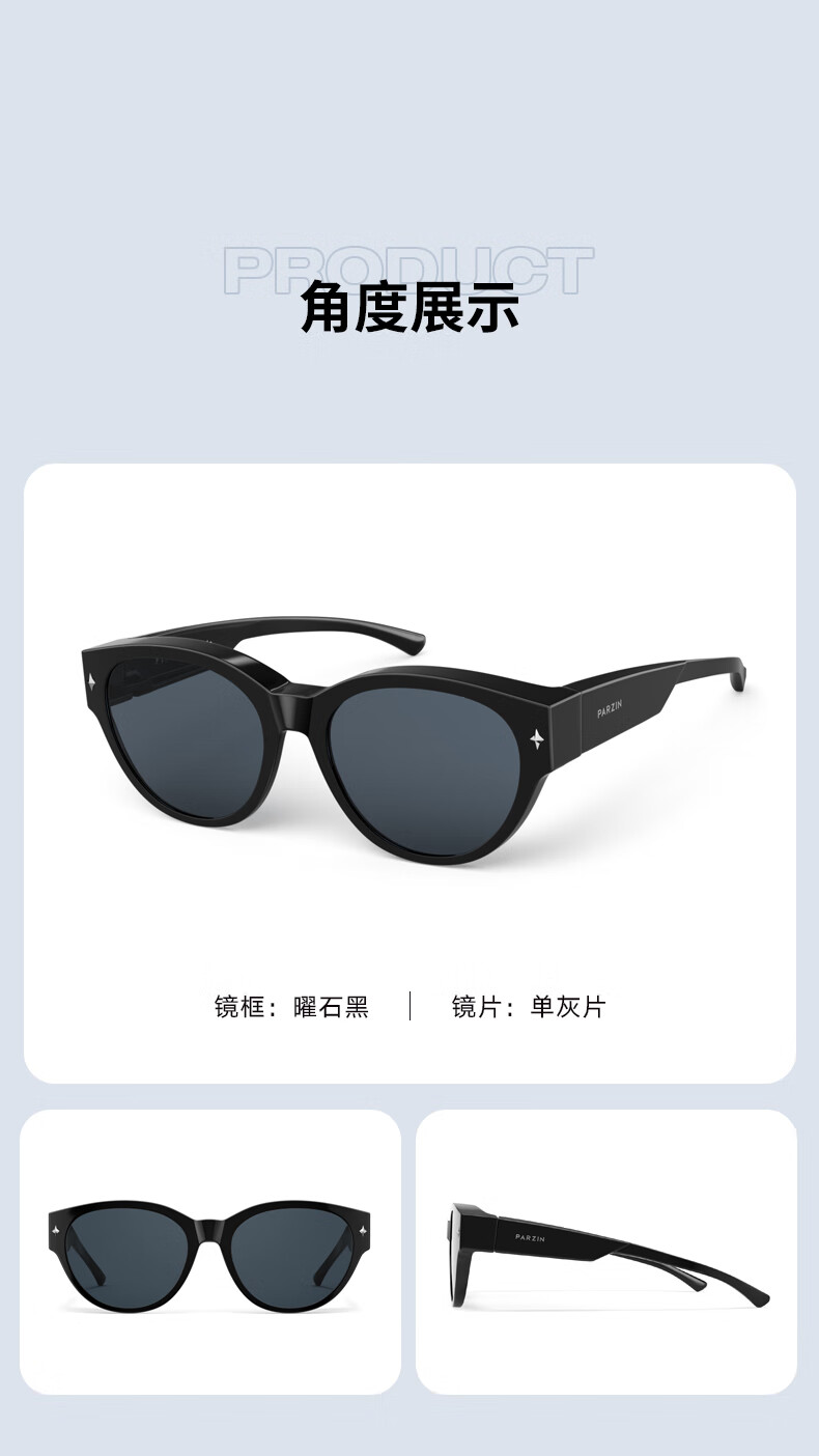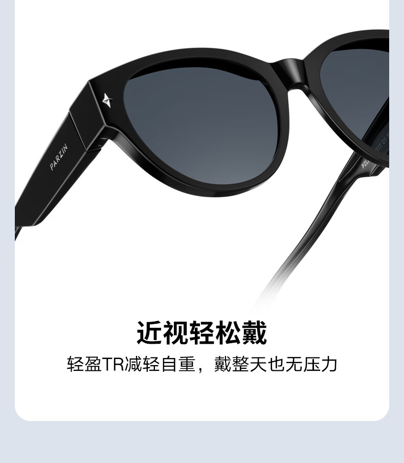 帕森(PARZIN)【可套近视眼镜】偏光太阳镜 男女款时尚猫眼防晒驾驶墨镜PZ12117