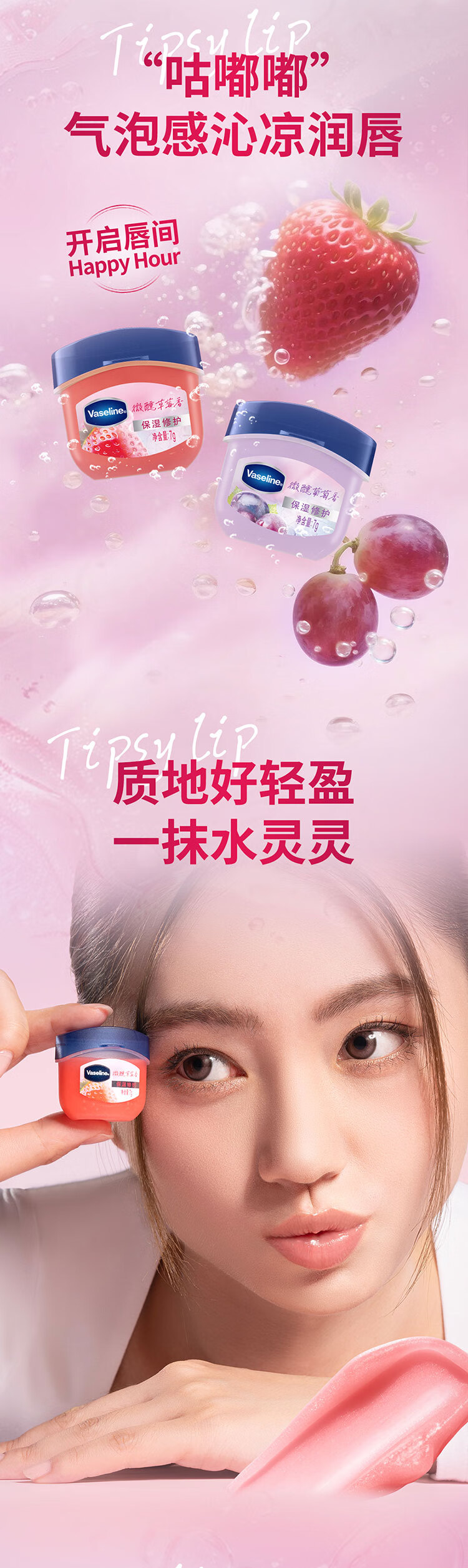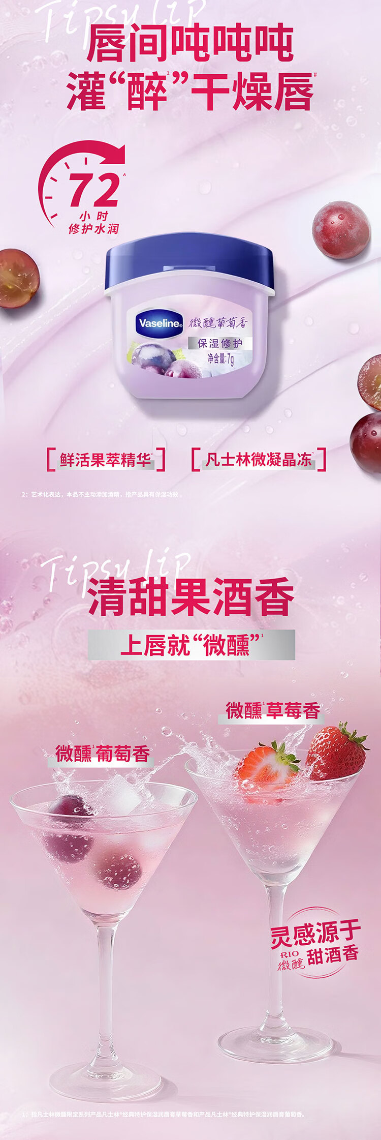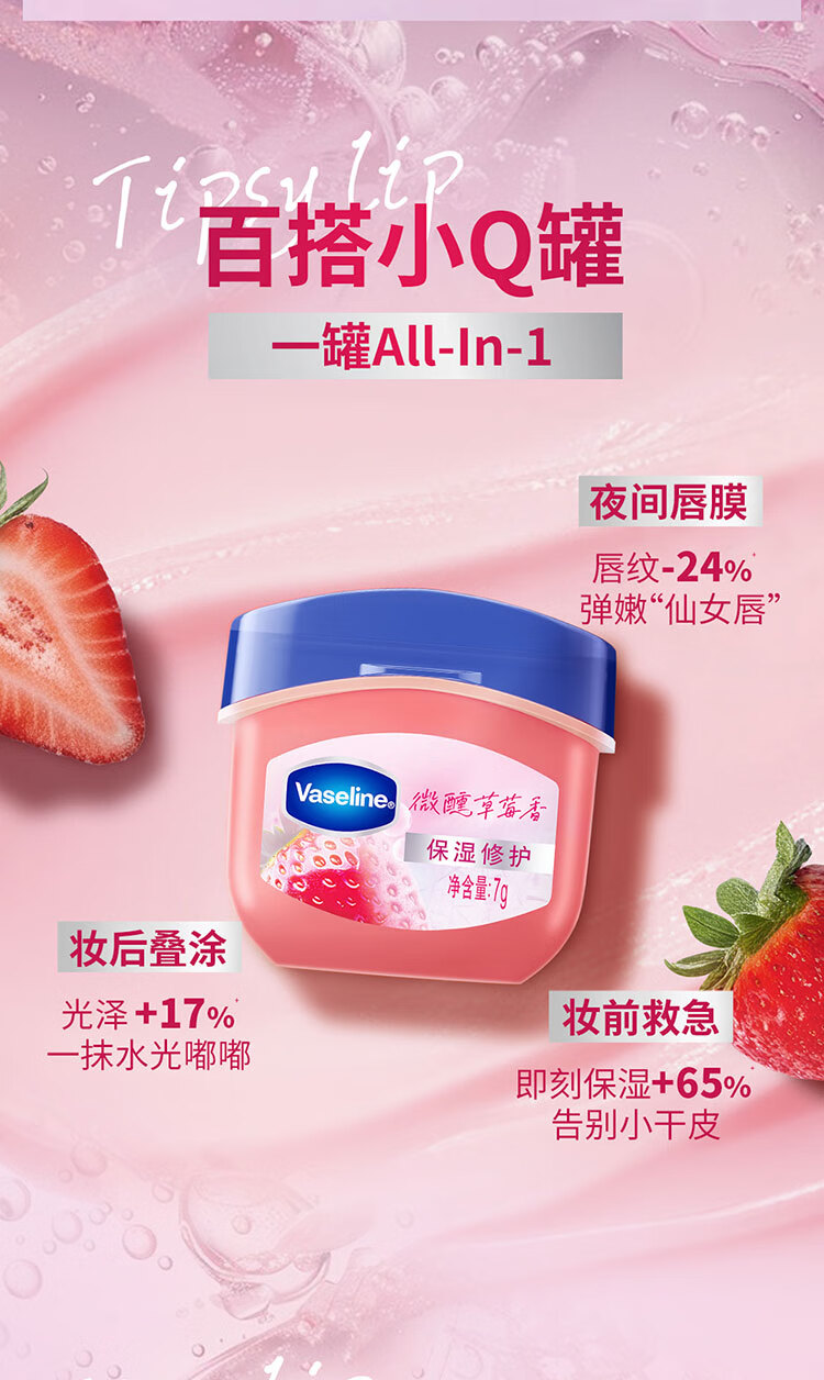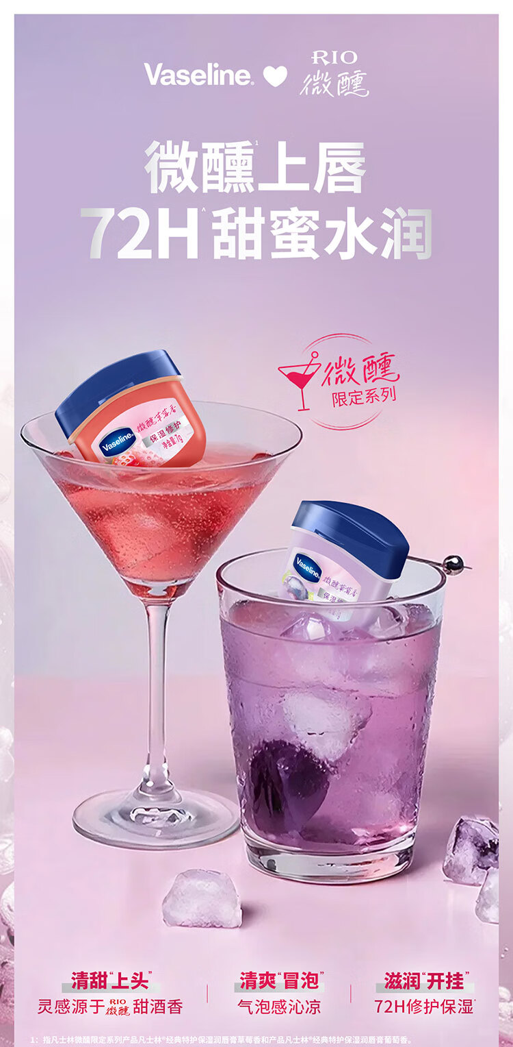 凡士林【RIO联名】微醺润唇膏 特护保湿润唇草莓香7g滋润唇部 送礼物