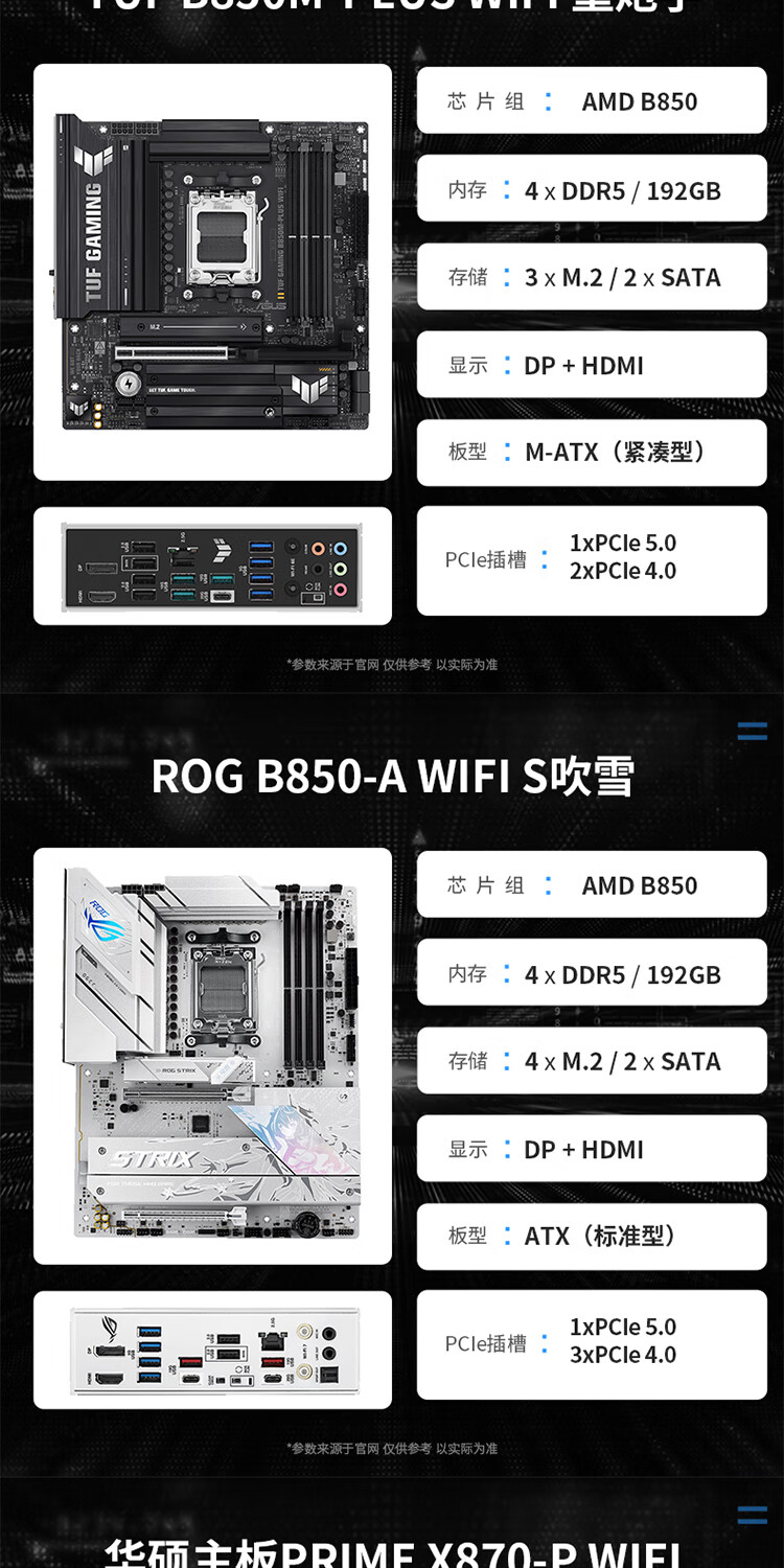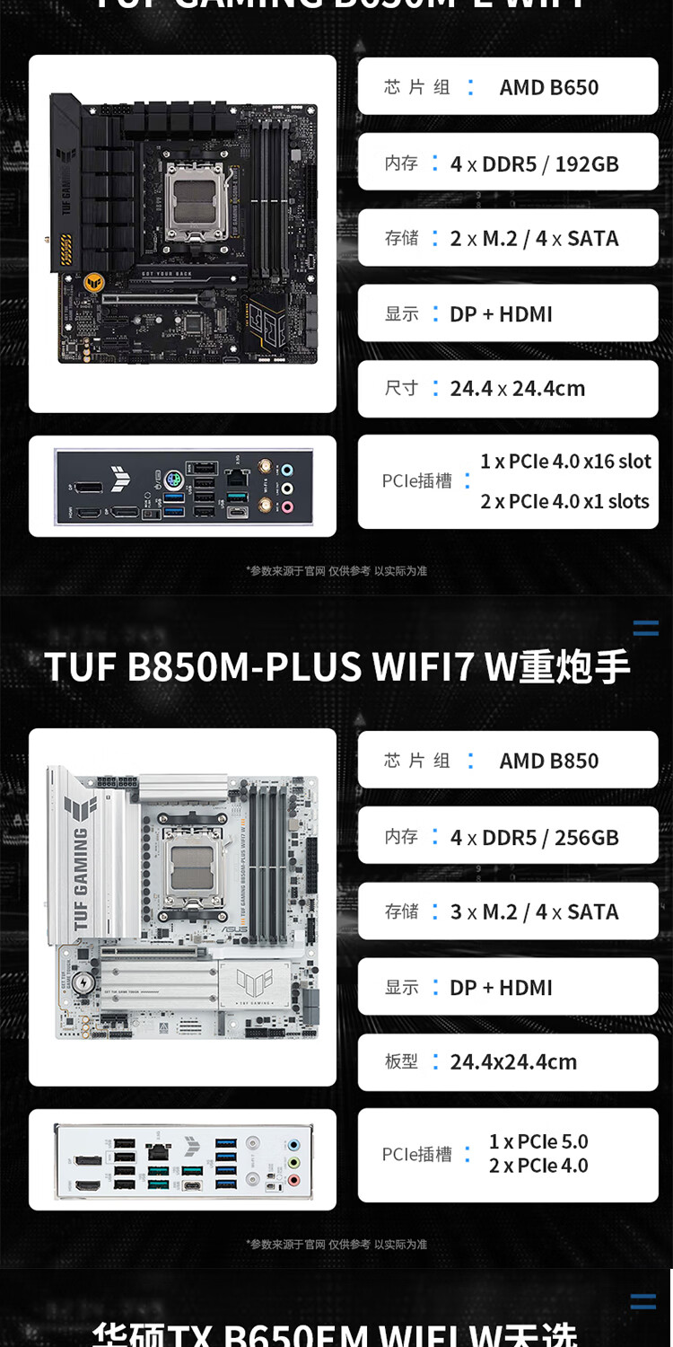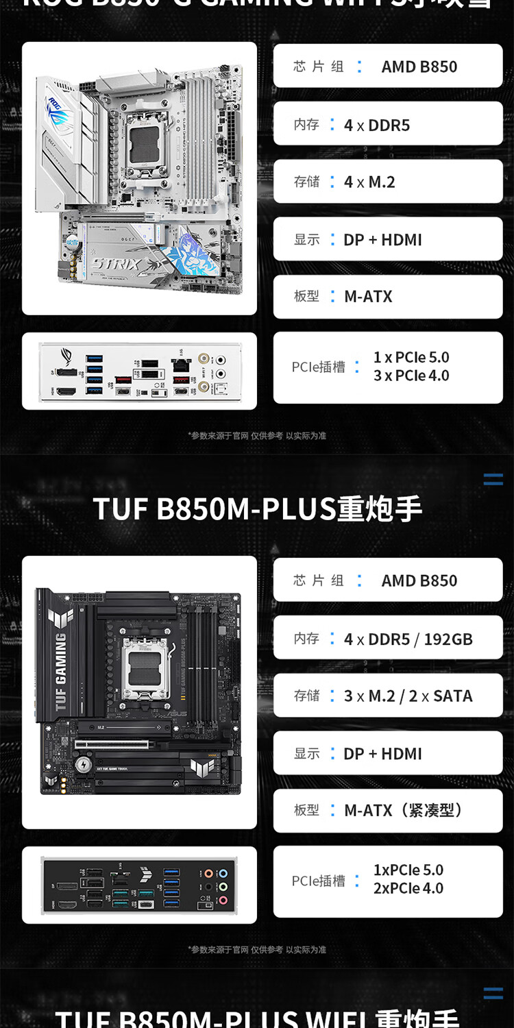 华硕TUF GAMING B850M-PLUS WIFI重炮手主板 CPU 7800X3D/9800X3D/9600X(AMD B850/socket AM5)