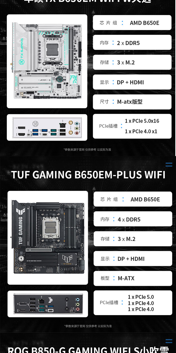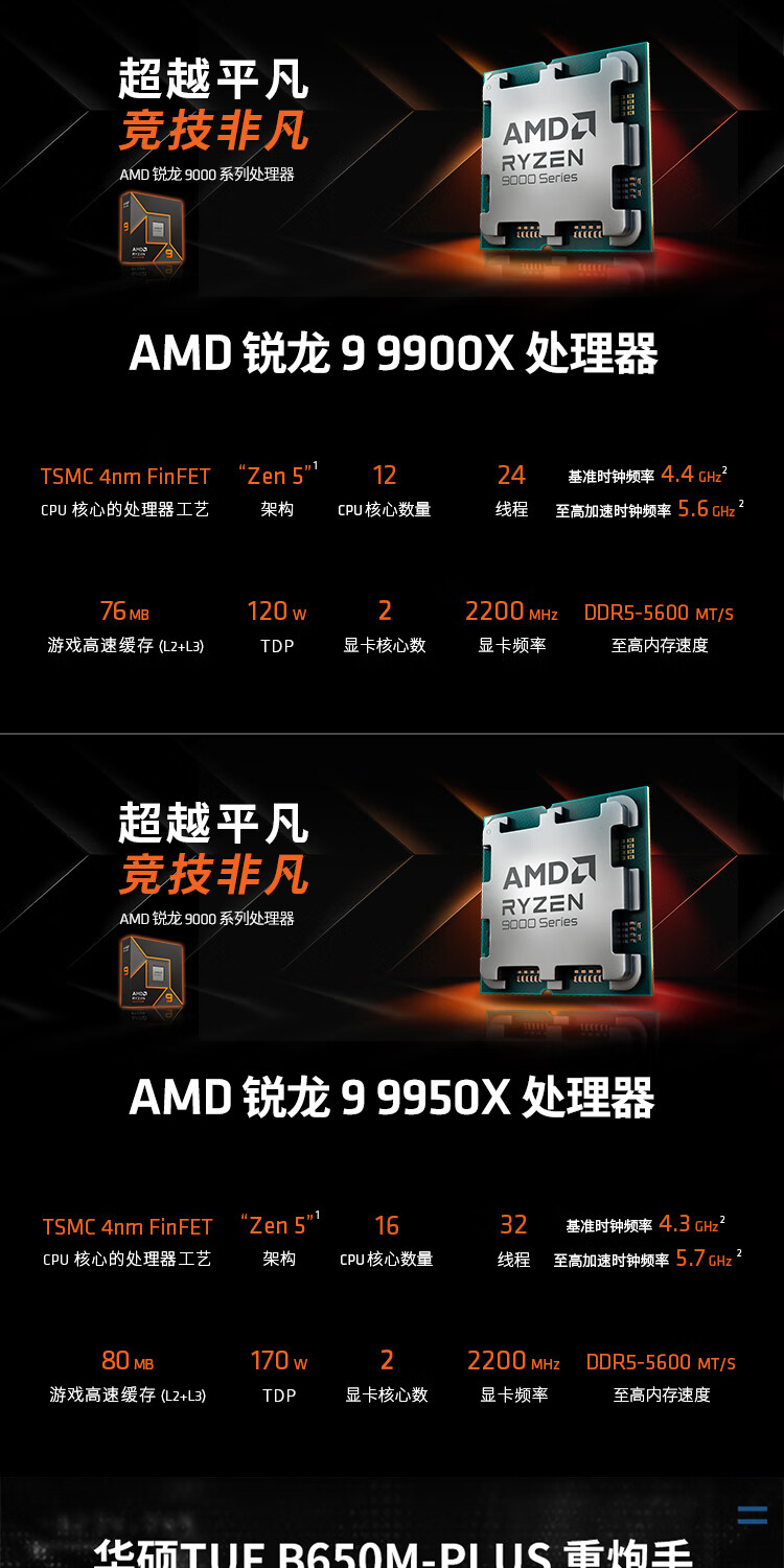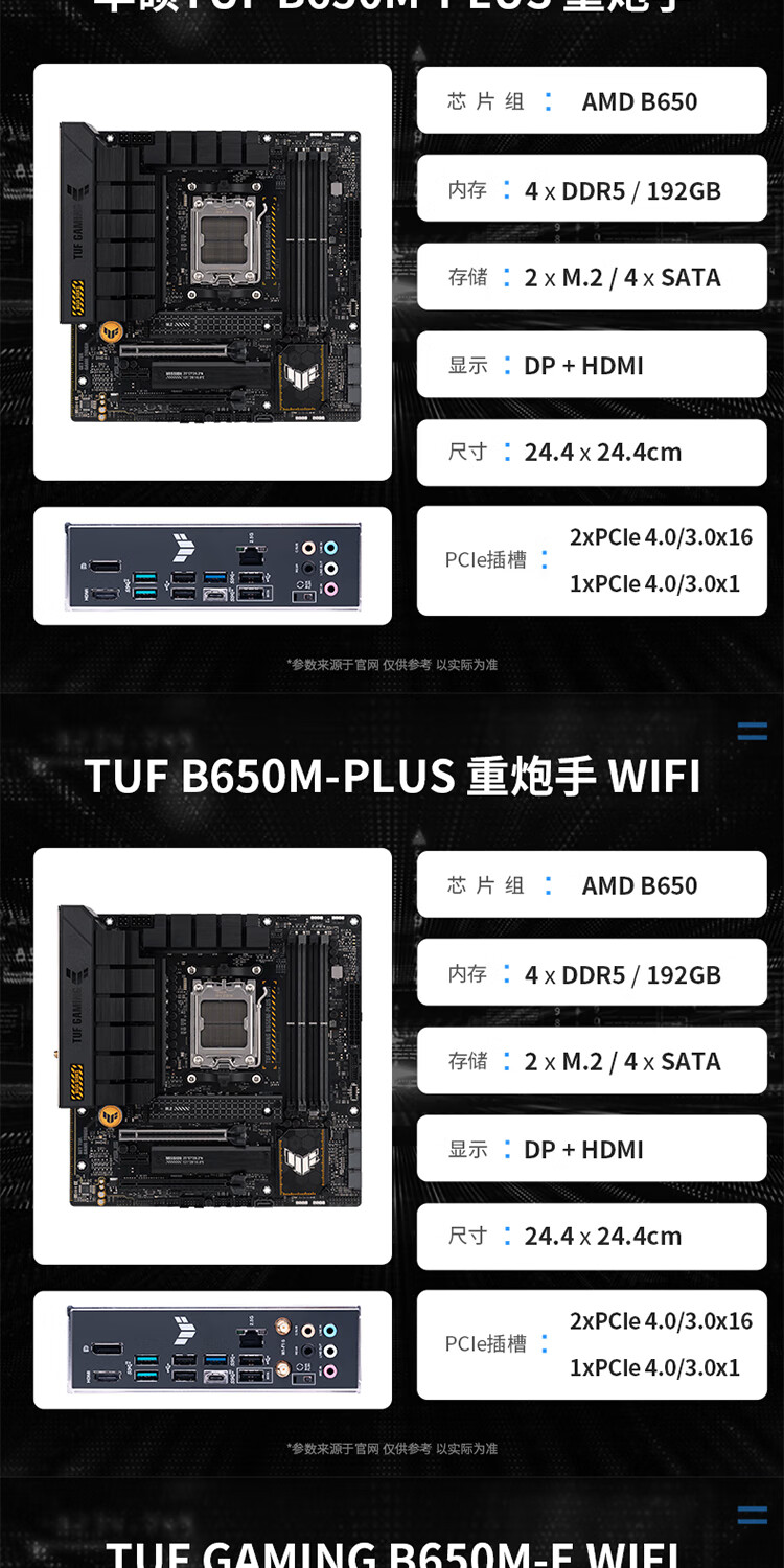 华硕TUF GAMING B850M-PLUS WIFI重炮手主板 CPU 7800X3D/9800X3D/9600X(AMD B850/socket AM5)