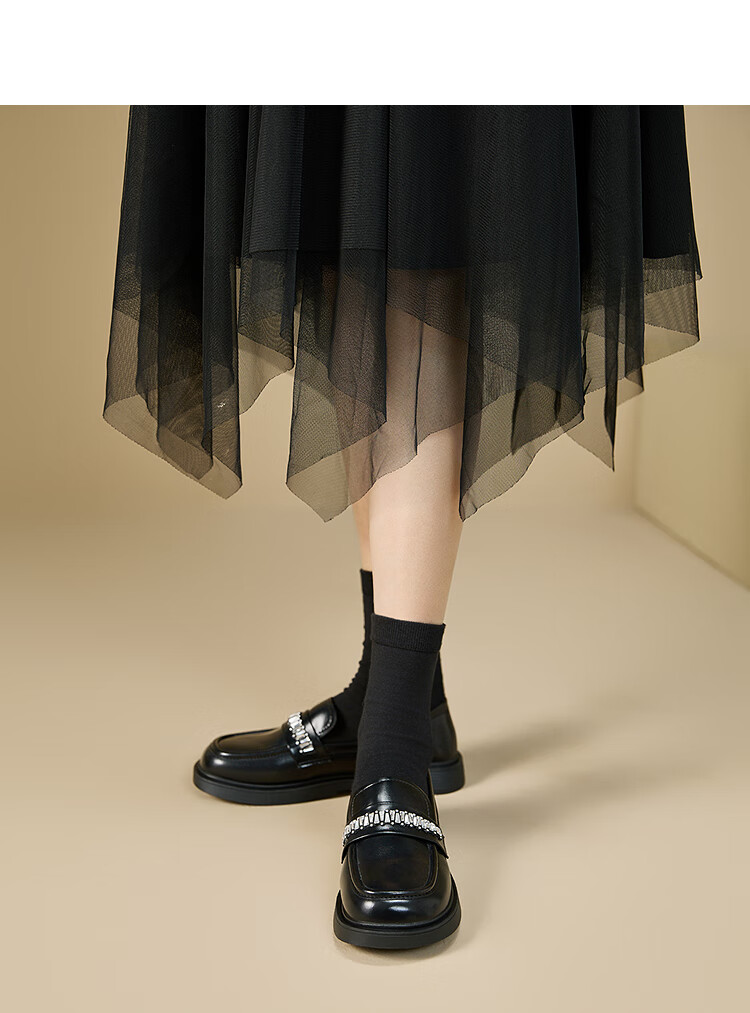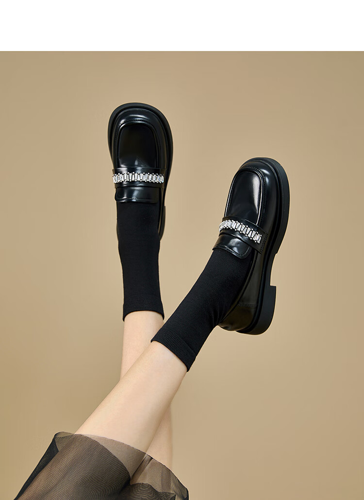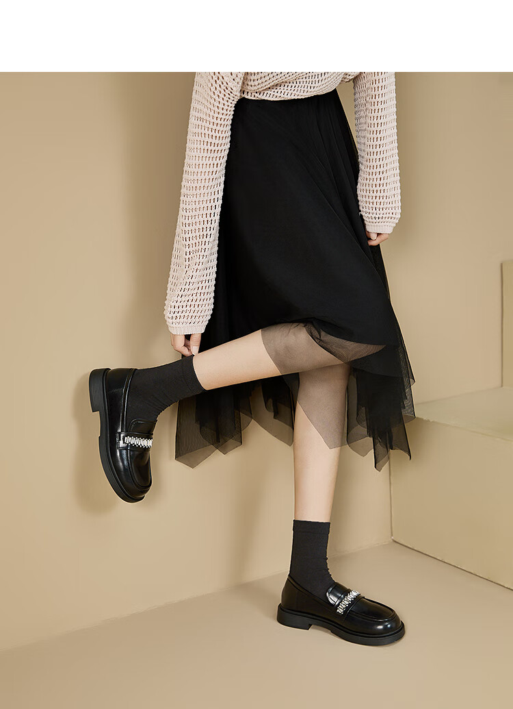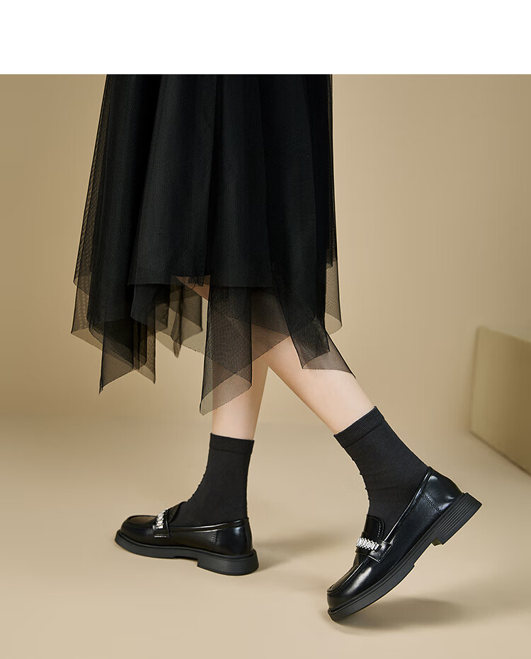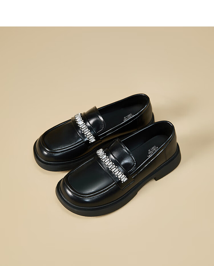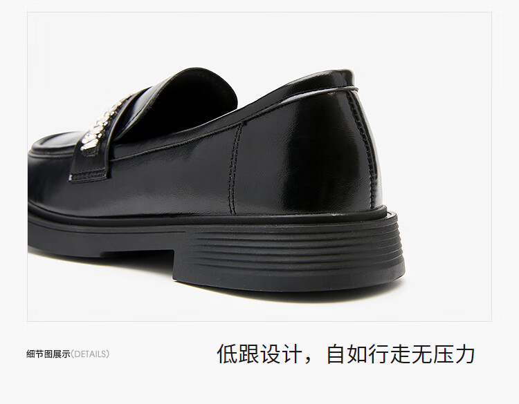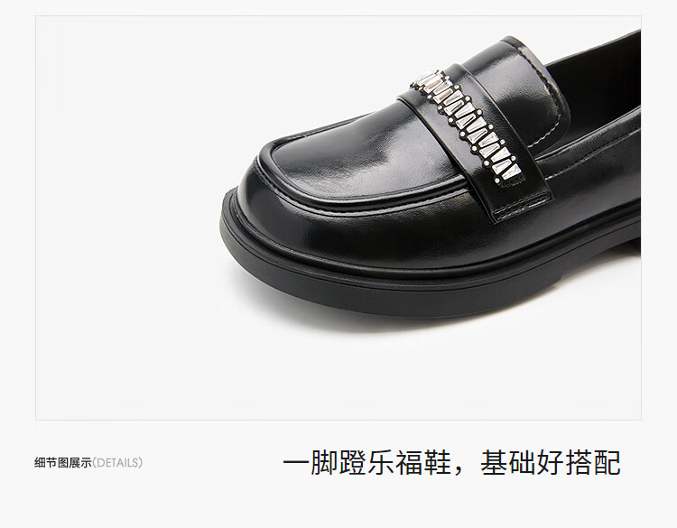 星期六(St&Sat)复古真皮乐福鞋女鞋2025新款金属扣英伦牛皮软底单鞋SZSSD1111P55 黑色 37