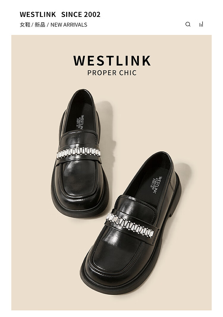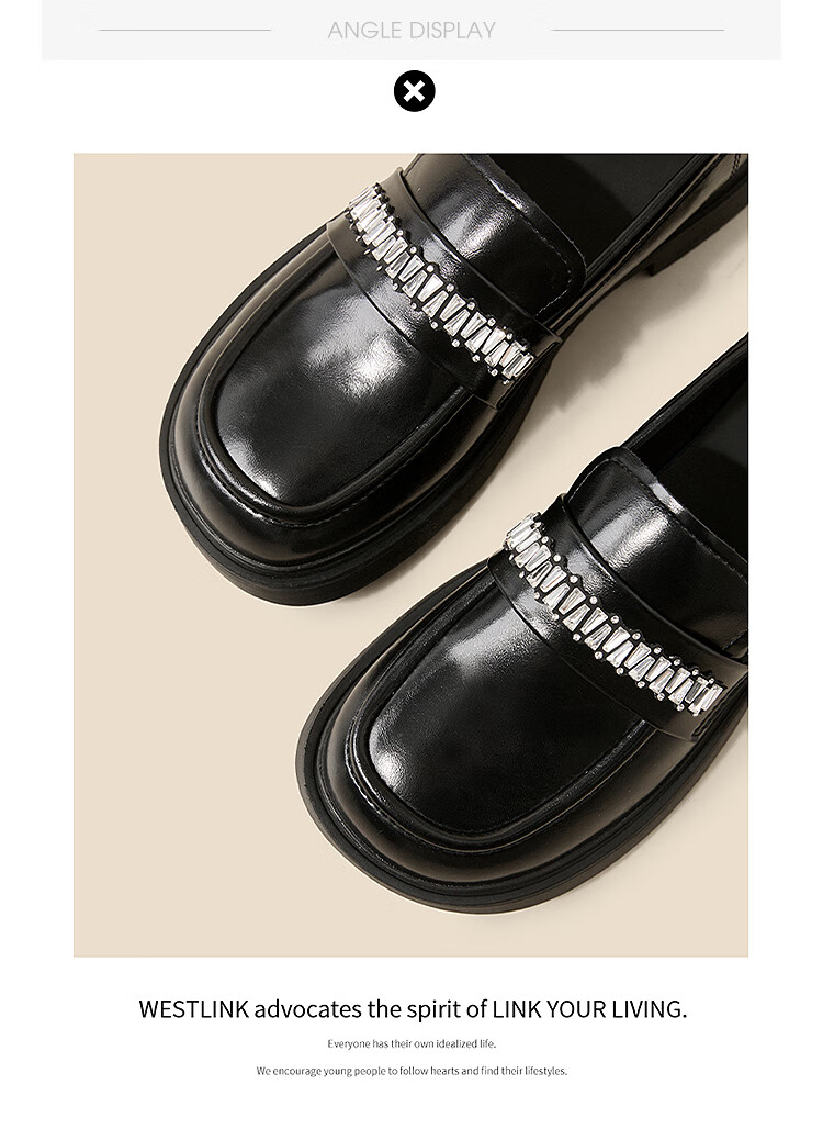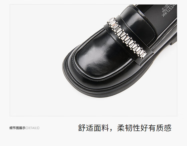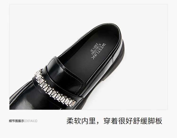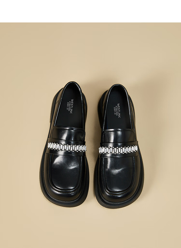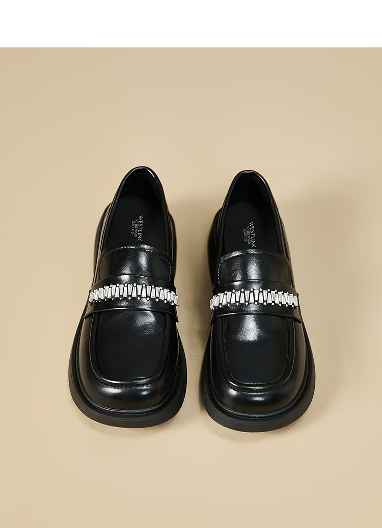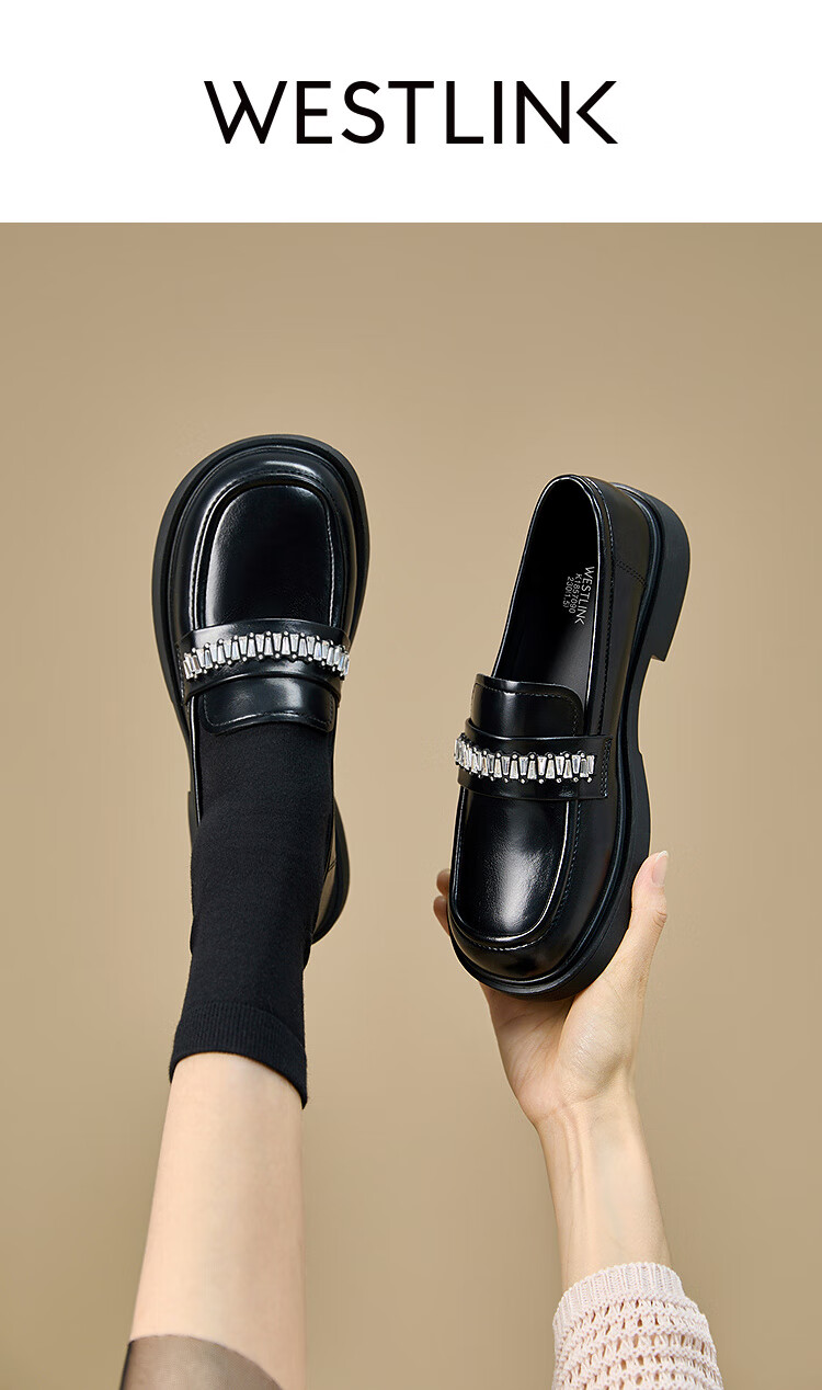 西遇(Westlink)黑色乐福鞋女2025新款秋季百搭一脚蹬通勤单鞋软底低跟小皮鞋 黑色 38 (240)