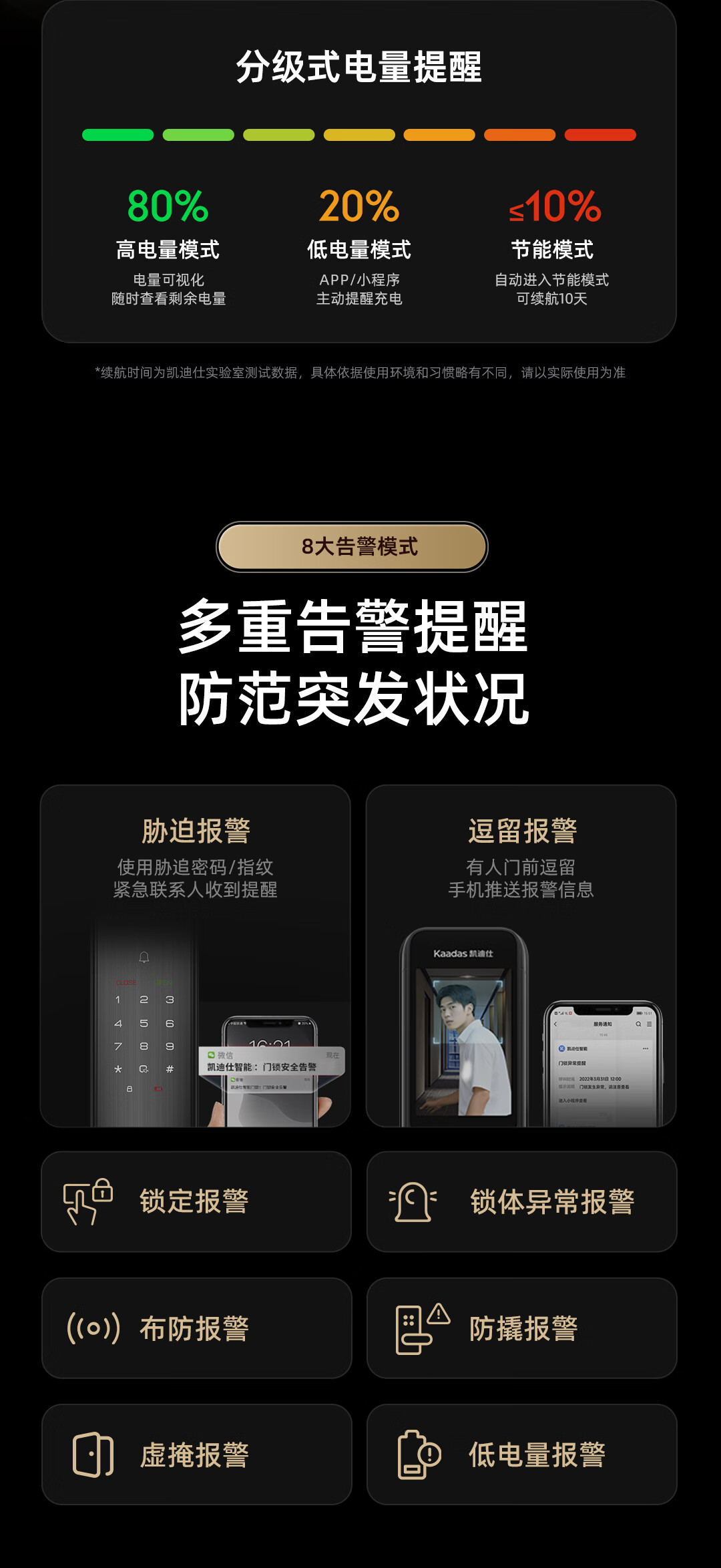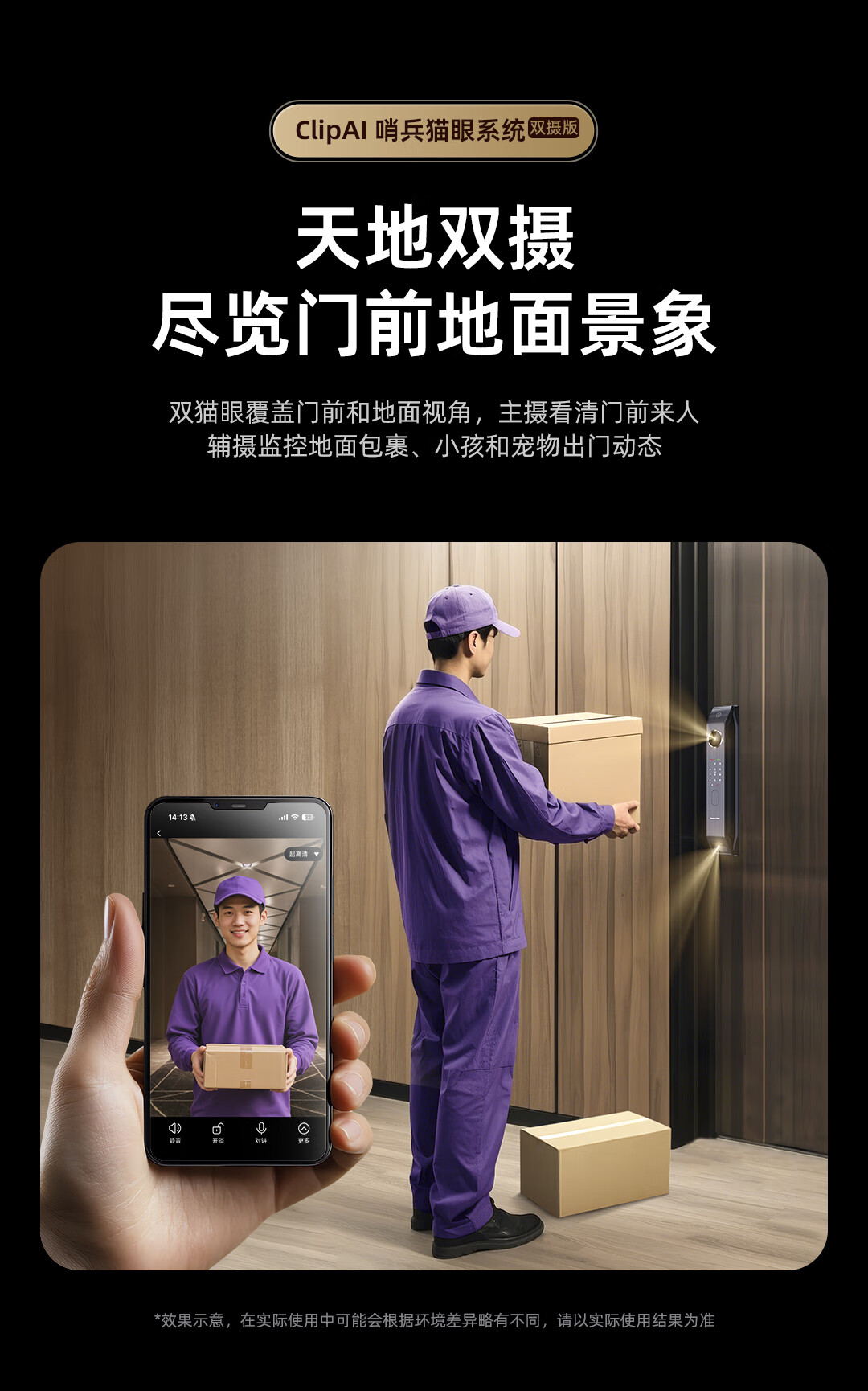 凯迪仕(kaadas)智能门锁人脸识别猫眼监控可视大屏指静脉智能锁P11ZF Pro双摄