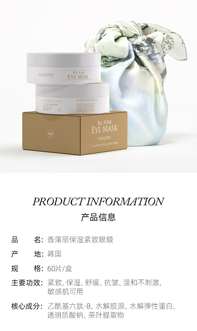 香蒲丽保湿紧致抗皱黄金眼膜温和舒缓敏感肌可用眼膜60片韩国进口