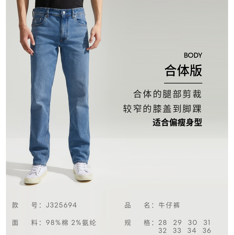 Calvin KleinJeans四季款男士休闲通勤简约ck合体版微弹洗水牛仔裤J325694