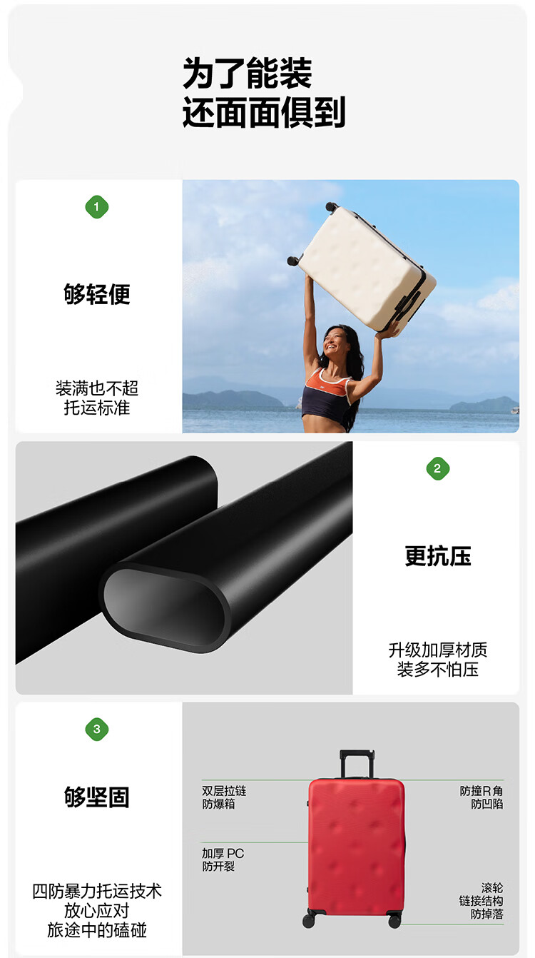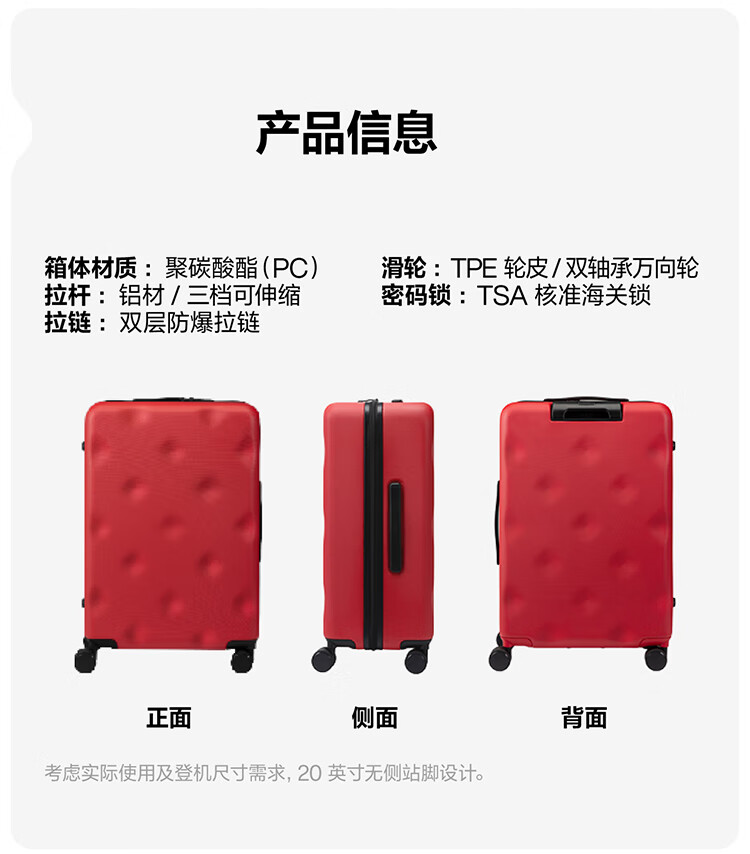 不莱玫行李箱女拉杆箱男旅行箱大容量结婚托运密码箱子22英寸plus 红色