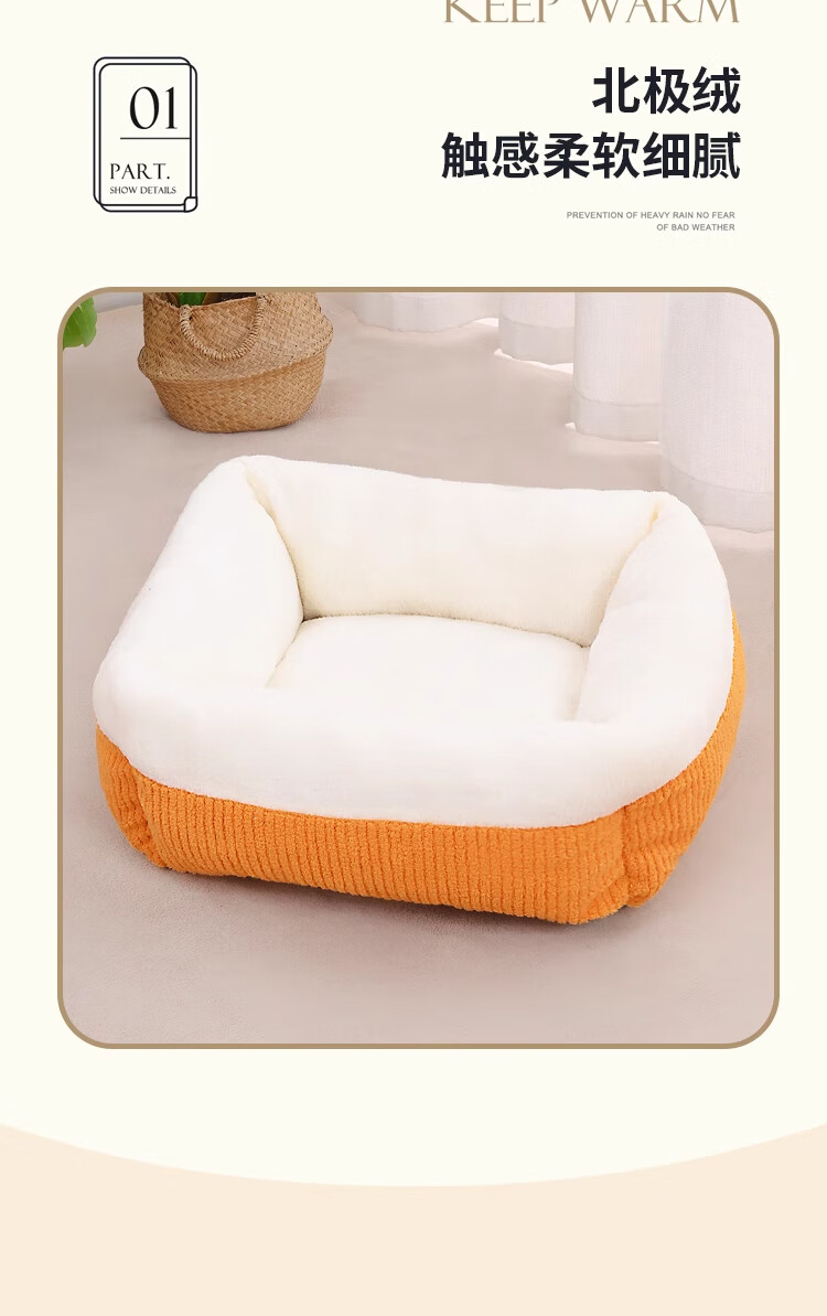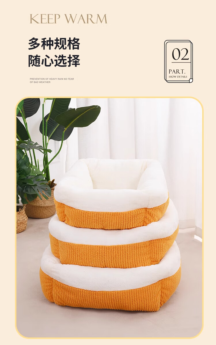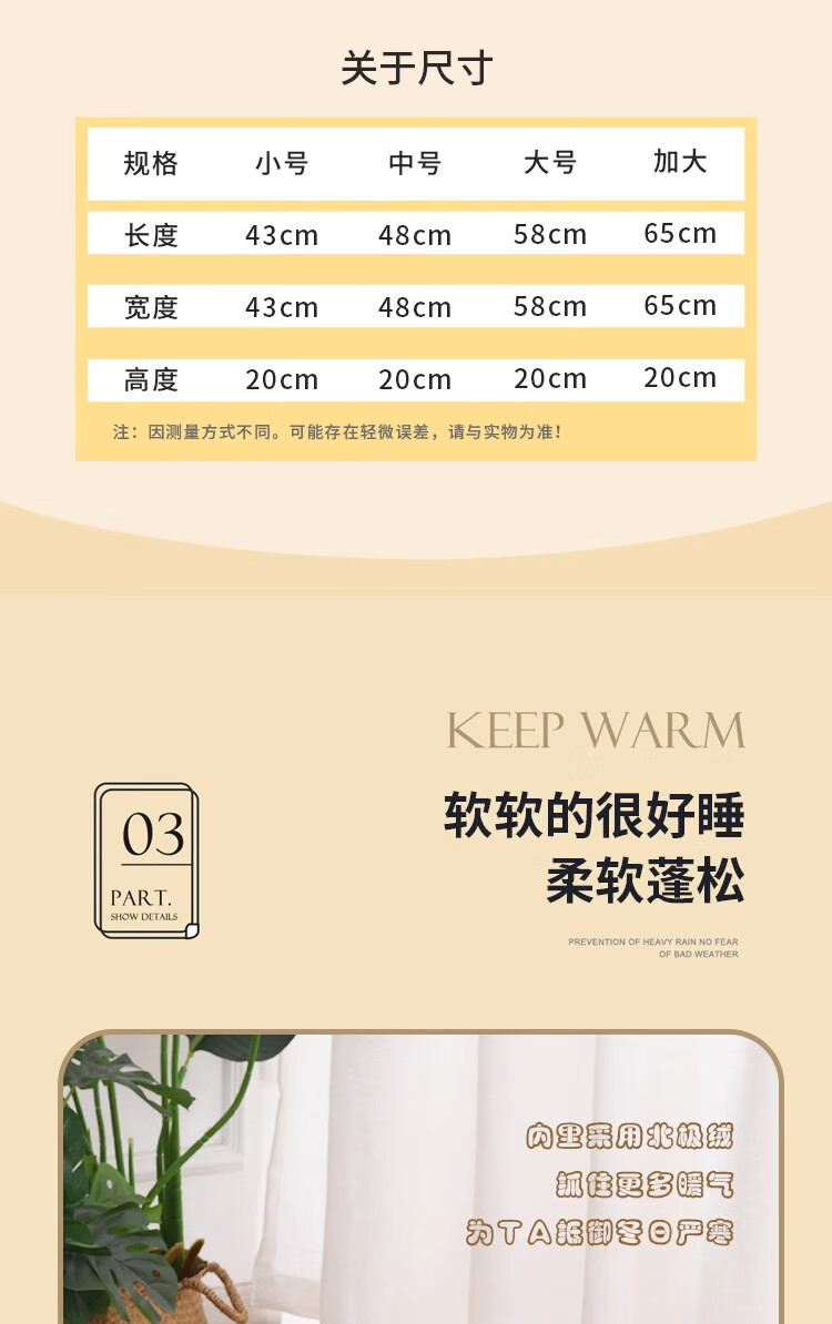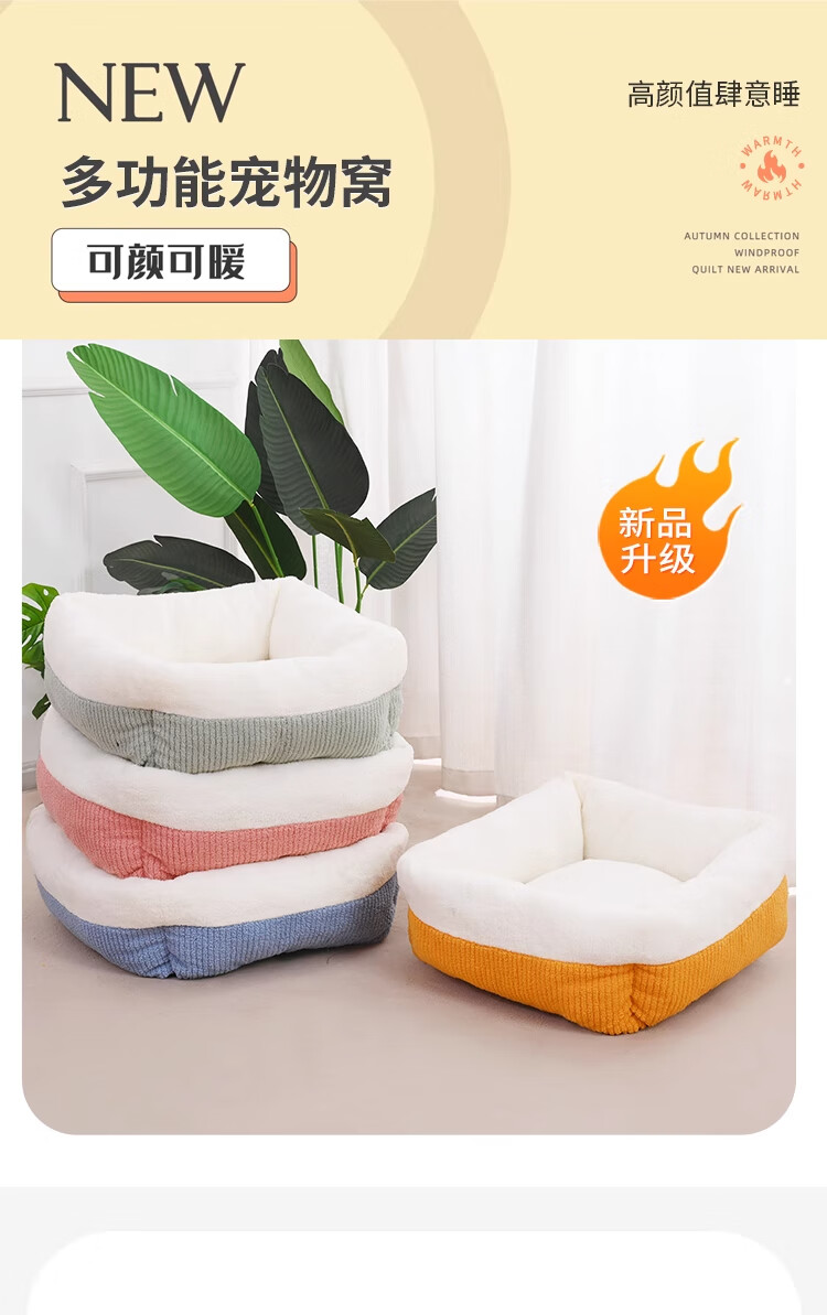 瓜洲牧猫窝四季通用冬季保暖半封闭式小型狗窝猫咪宠物垫子猫垫猫床用品 柠檬黄-深度睡眠【甜蜜配色】 中号-【15斤内适用|柔软加厚】