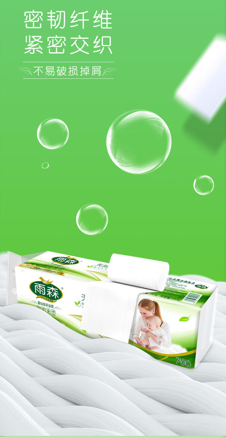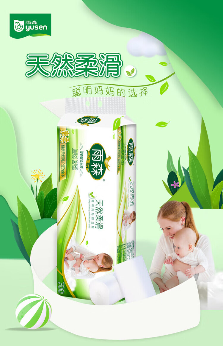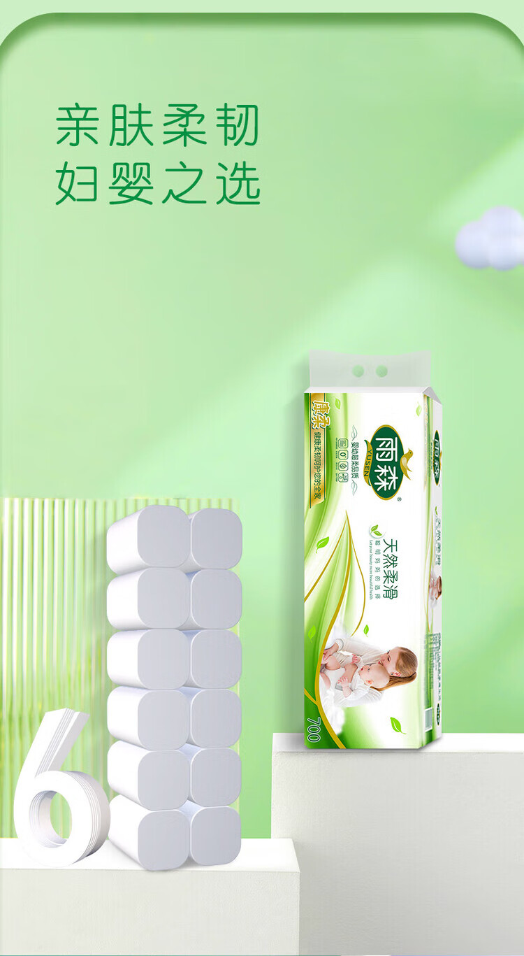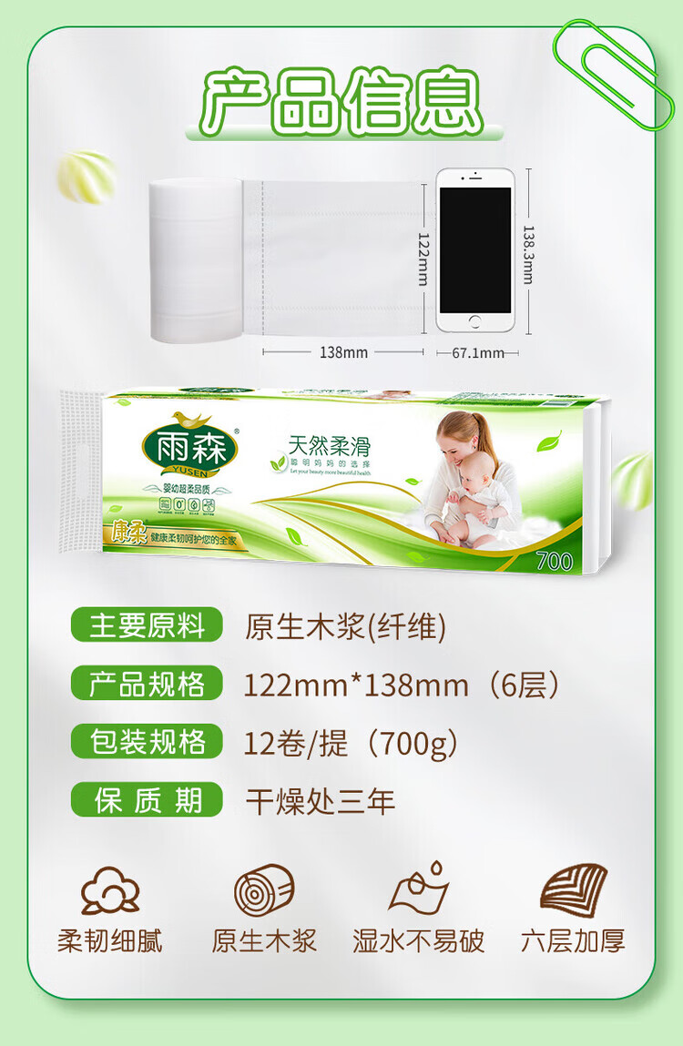 雨森(YUSEN)天然柔滑妇婴卷纸卫生纸700克/提12卷6层加厚无芯卷纸厕纸 6层 58g*12卷 【毛重700g*1提】