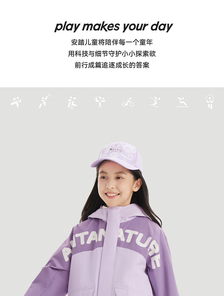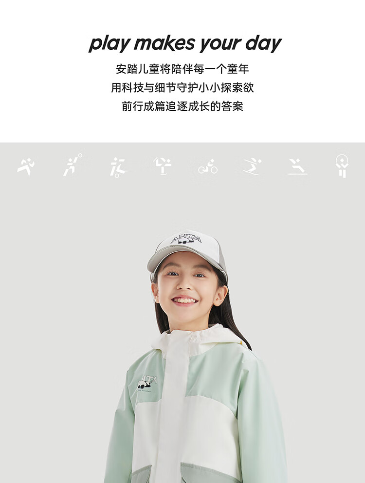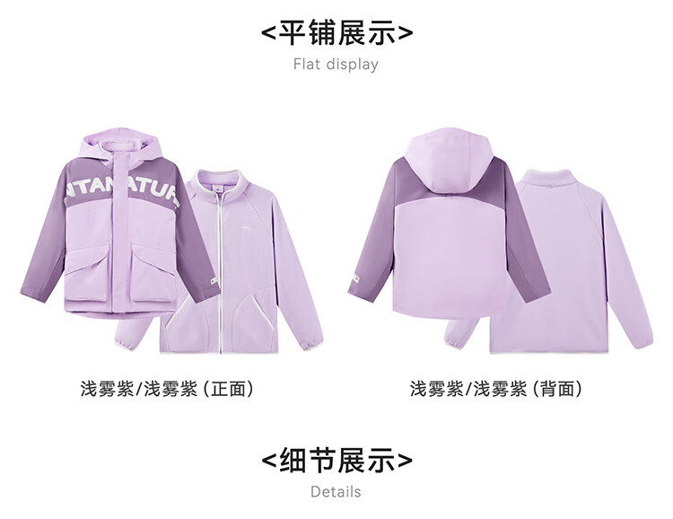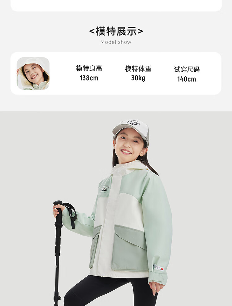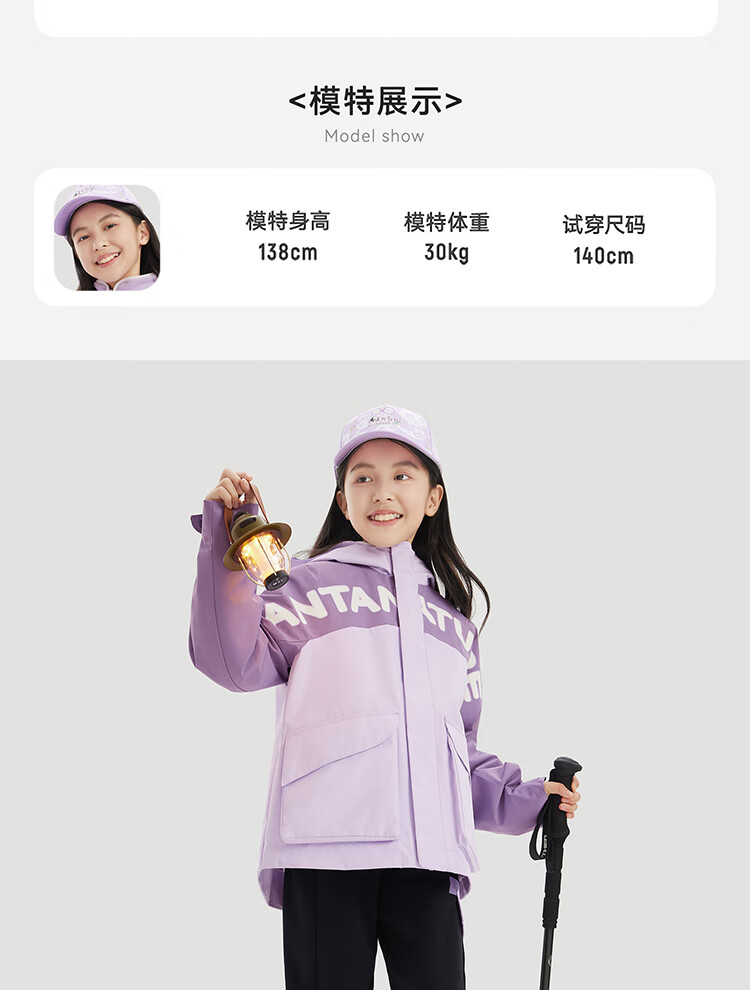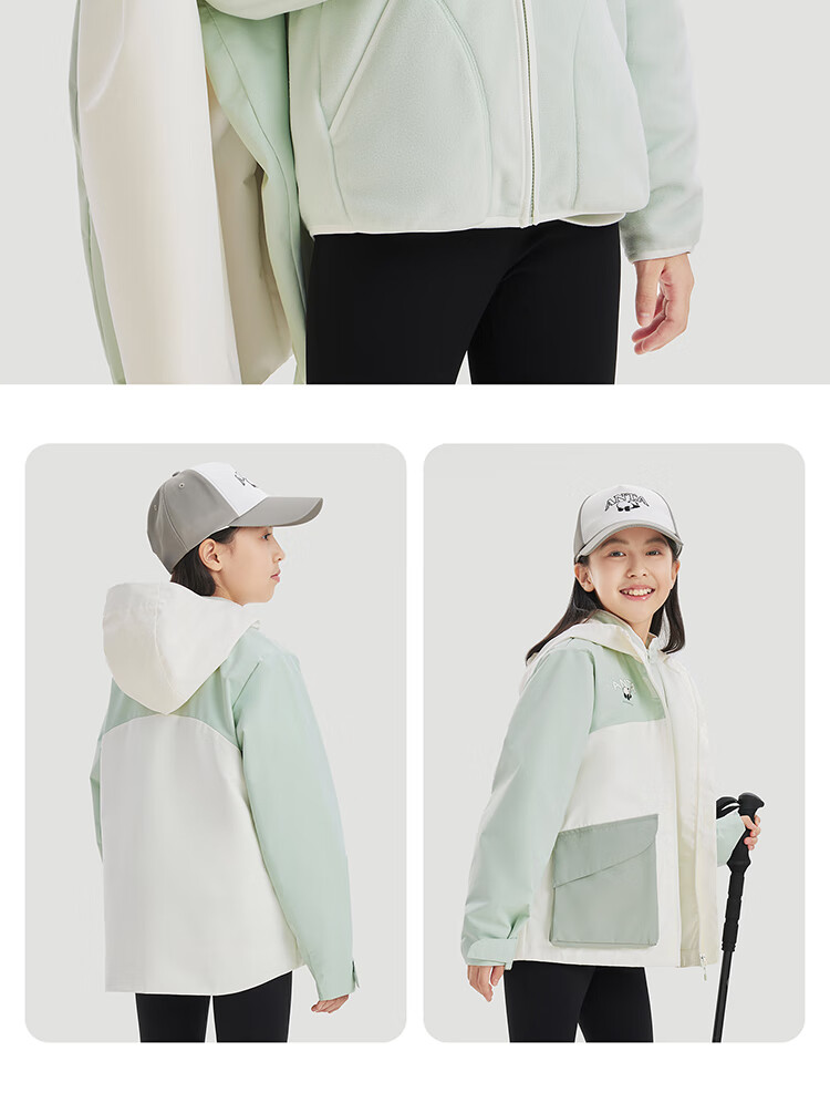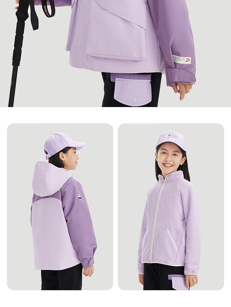 安踏儿童女大童摇粒两件套三合一冬季保暖防水外套晴雨甲362446602