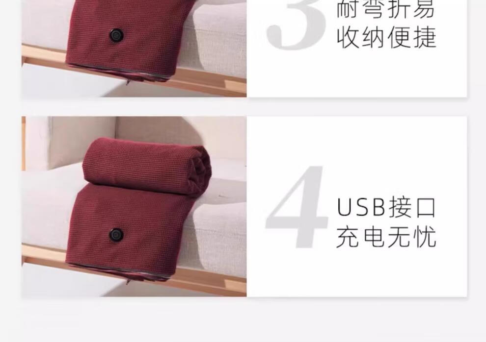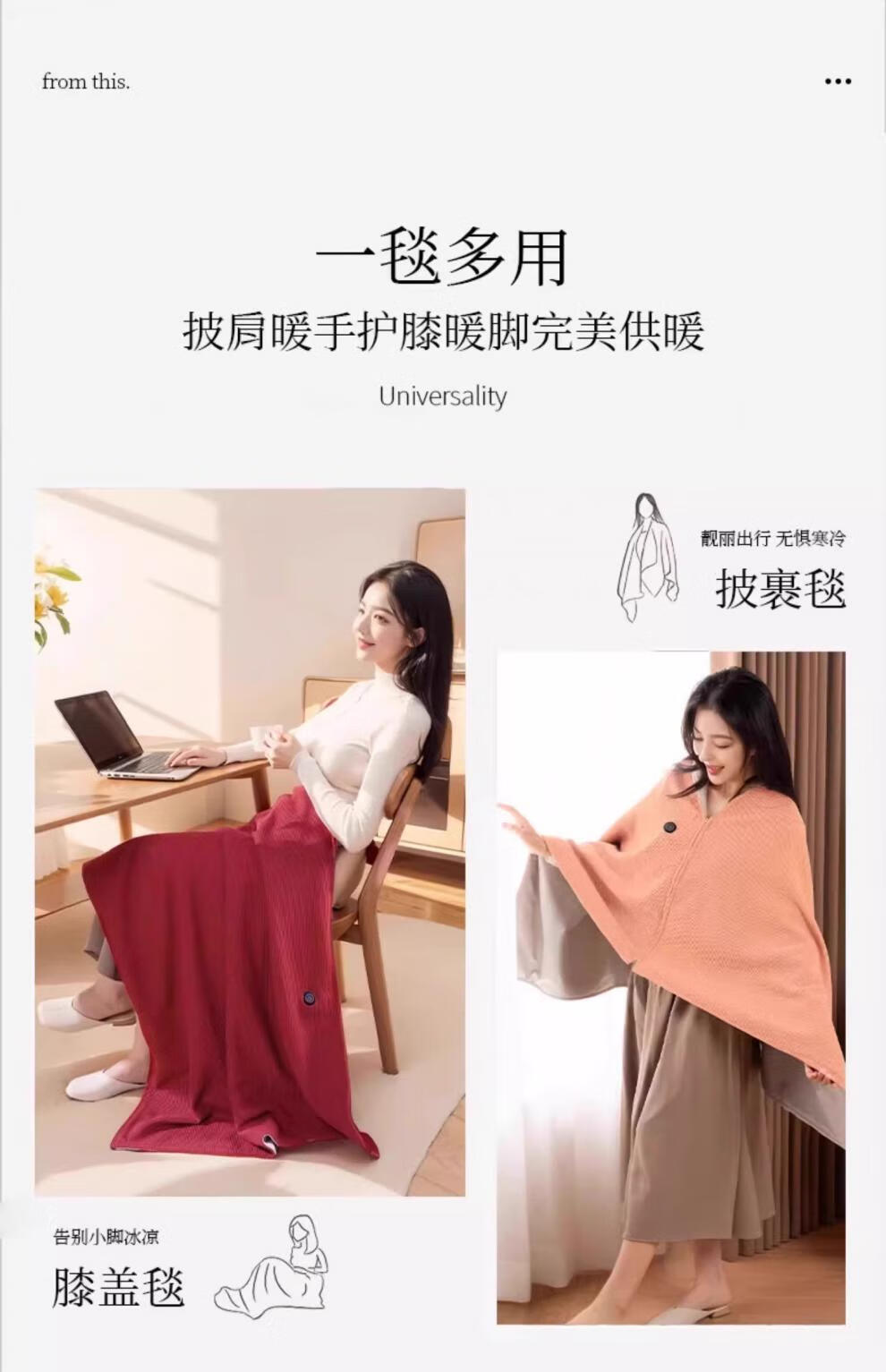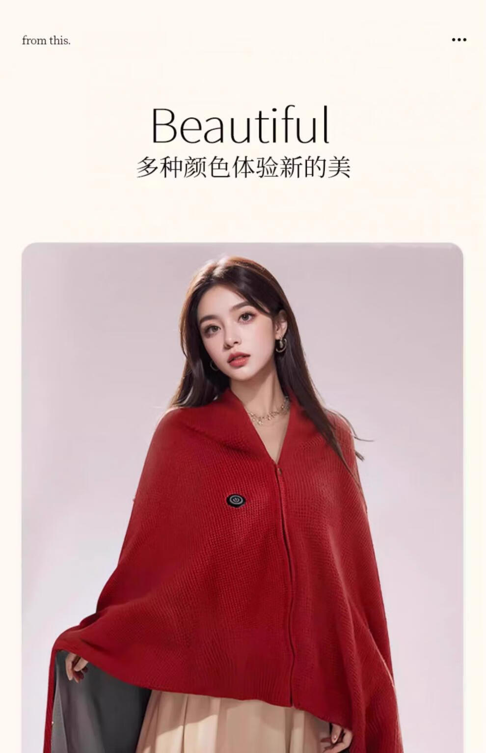 WCZ电热披肩毯发热暖身毯加热披风毯USB充电适用办公室盖腿 枫叶红【10000mAh充电宝/3档控温/可机洗】