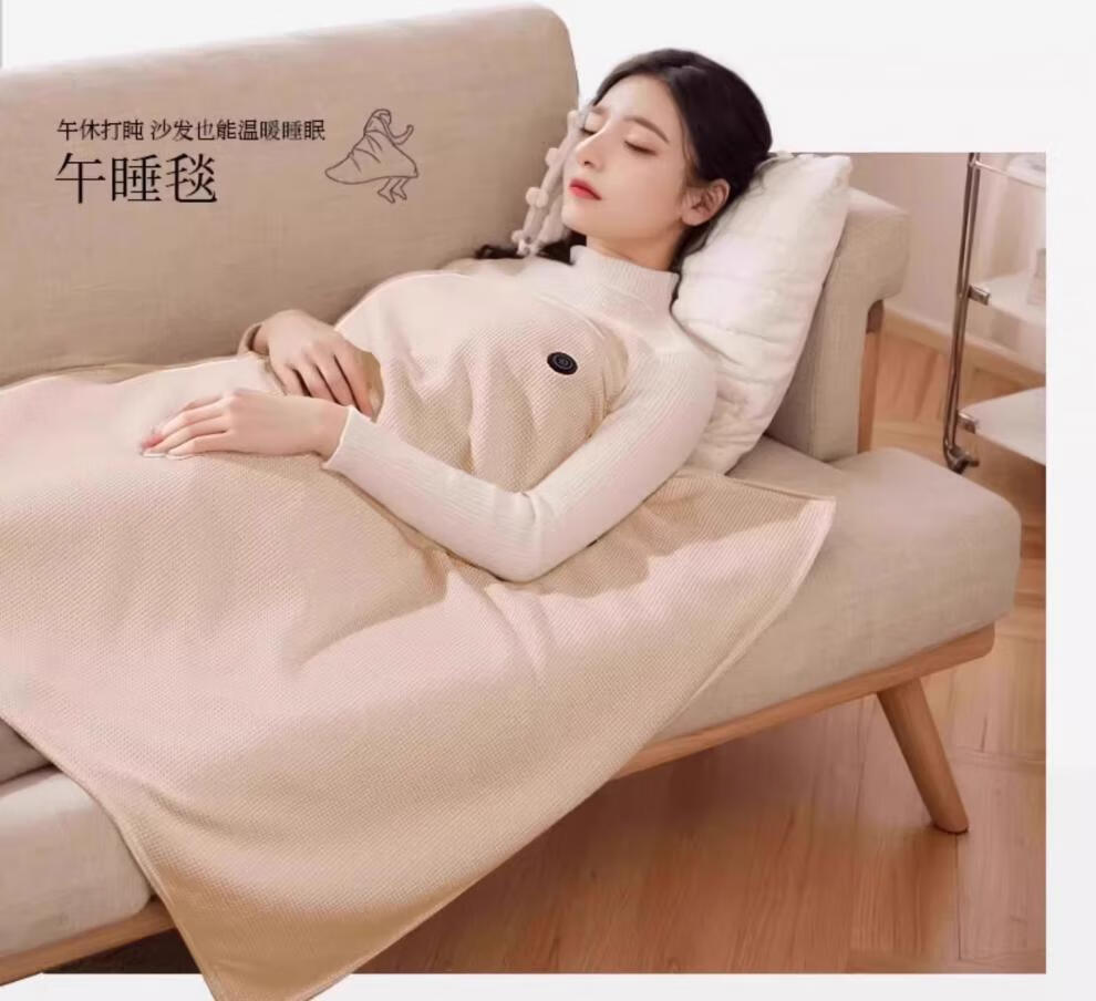 AILUKI电热披肩毯发热暖身毯USB加热盖毯暖腿户外家用单人办公室午睡毯 雪松杏-碳纤速热可机洗150*80cm