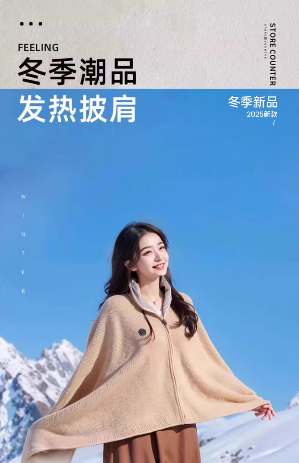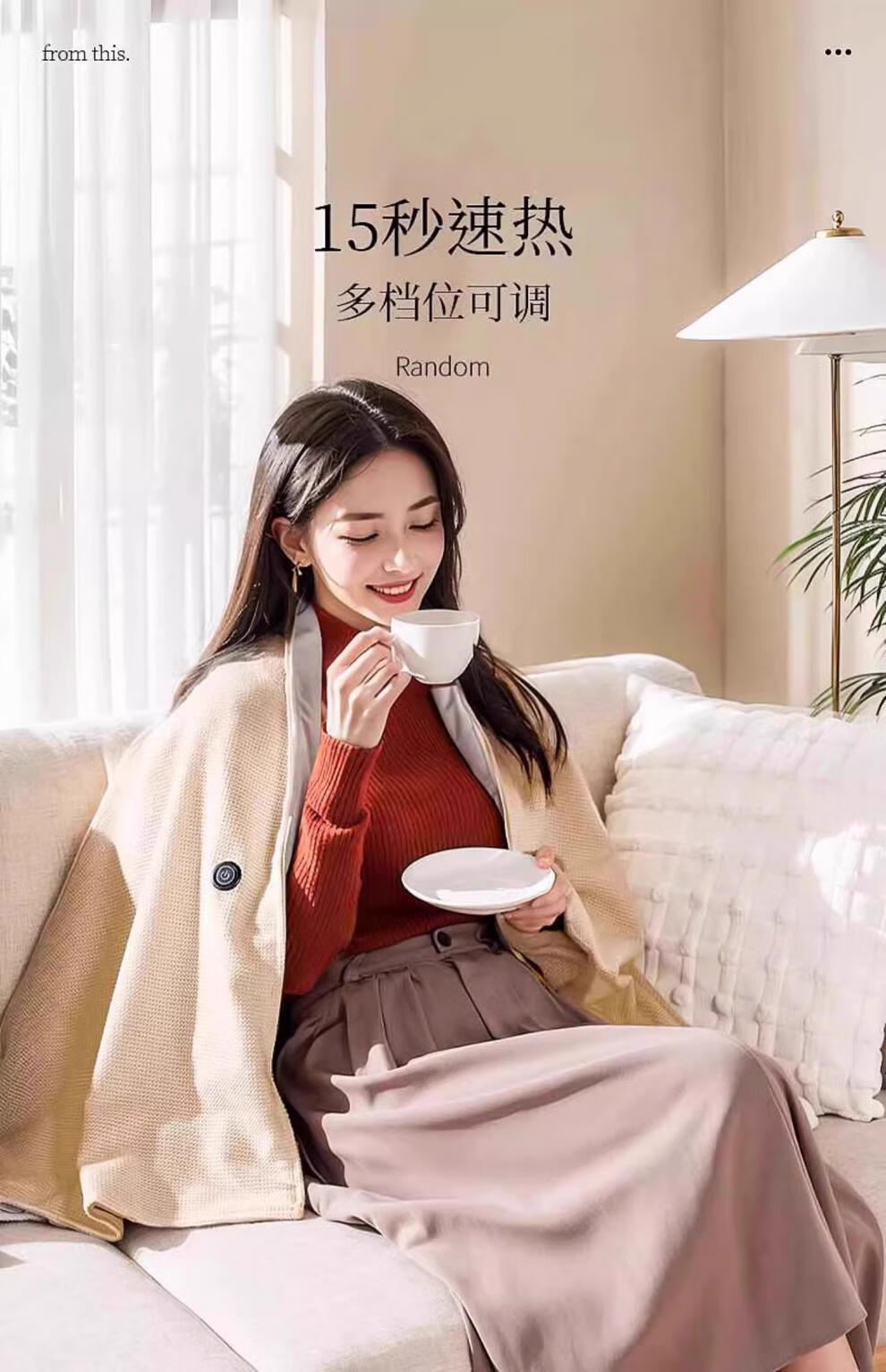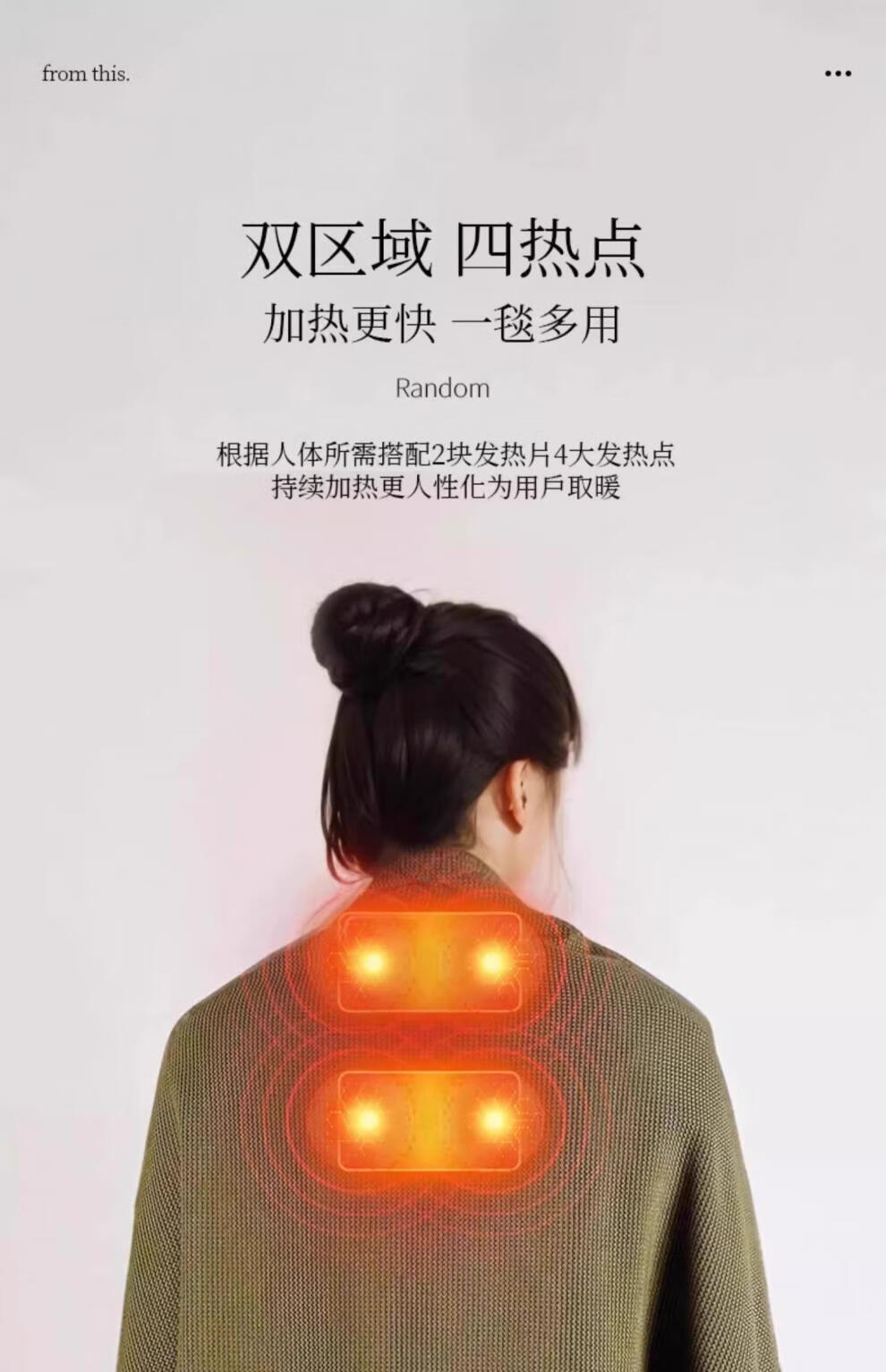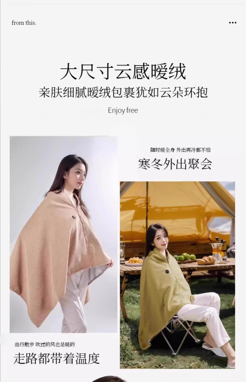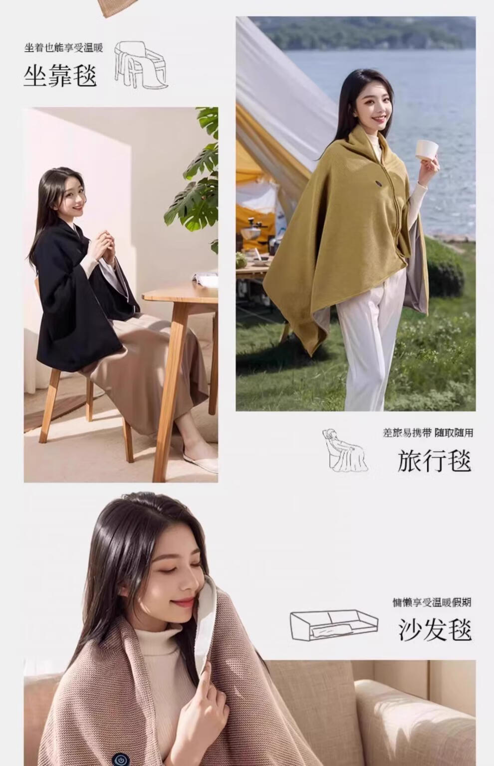 WCZ电热披肩毯发热暖身毯加热披风毯USB充电适用办公室盖腿 奶咖色【10000mAh充电宝/3档控温/可机洗】
