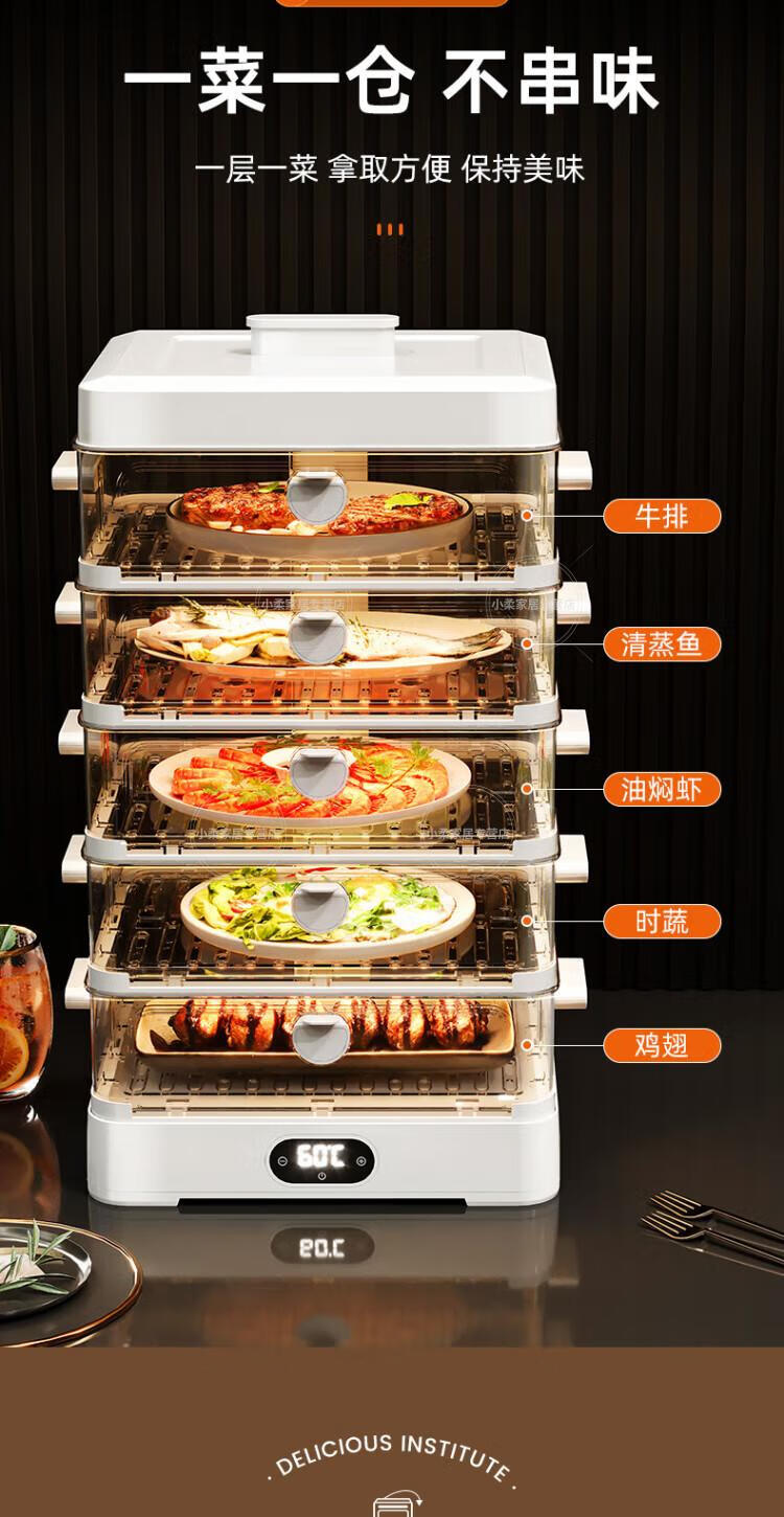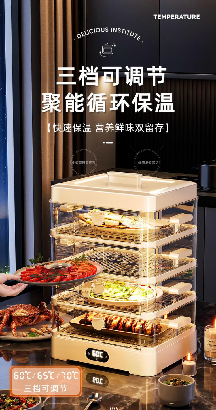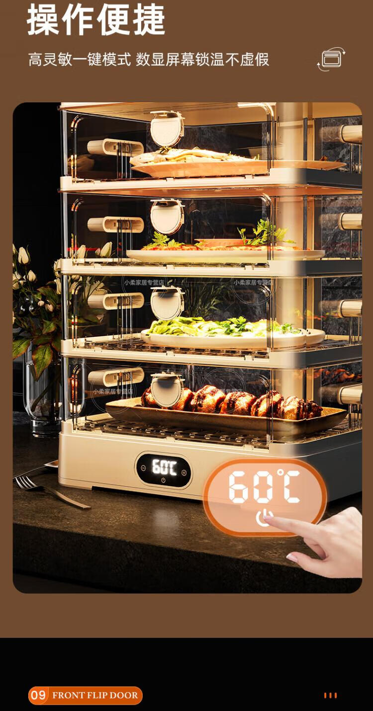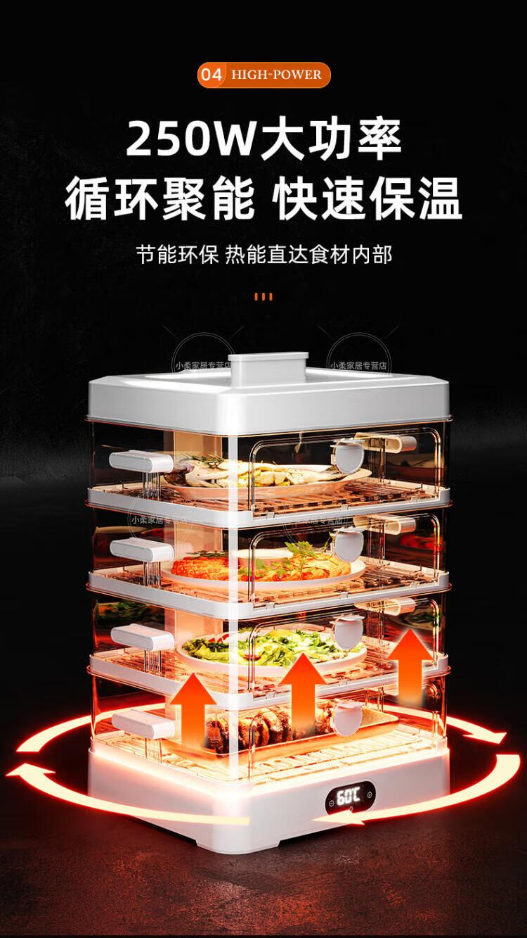 WCZ德国保温菜罩冬天加热剩饭菜神器冬季家用多层插电智能恒温菜食物 圆形智能烘风菜罩-五层【保温加热 防虫防蝇】