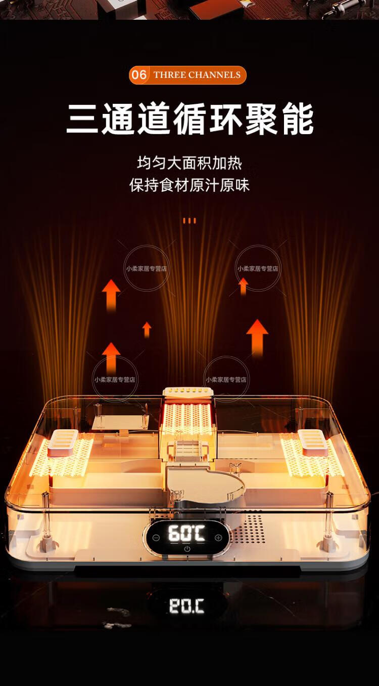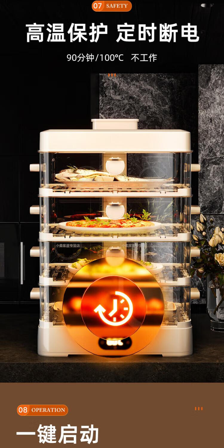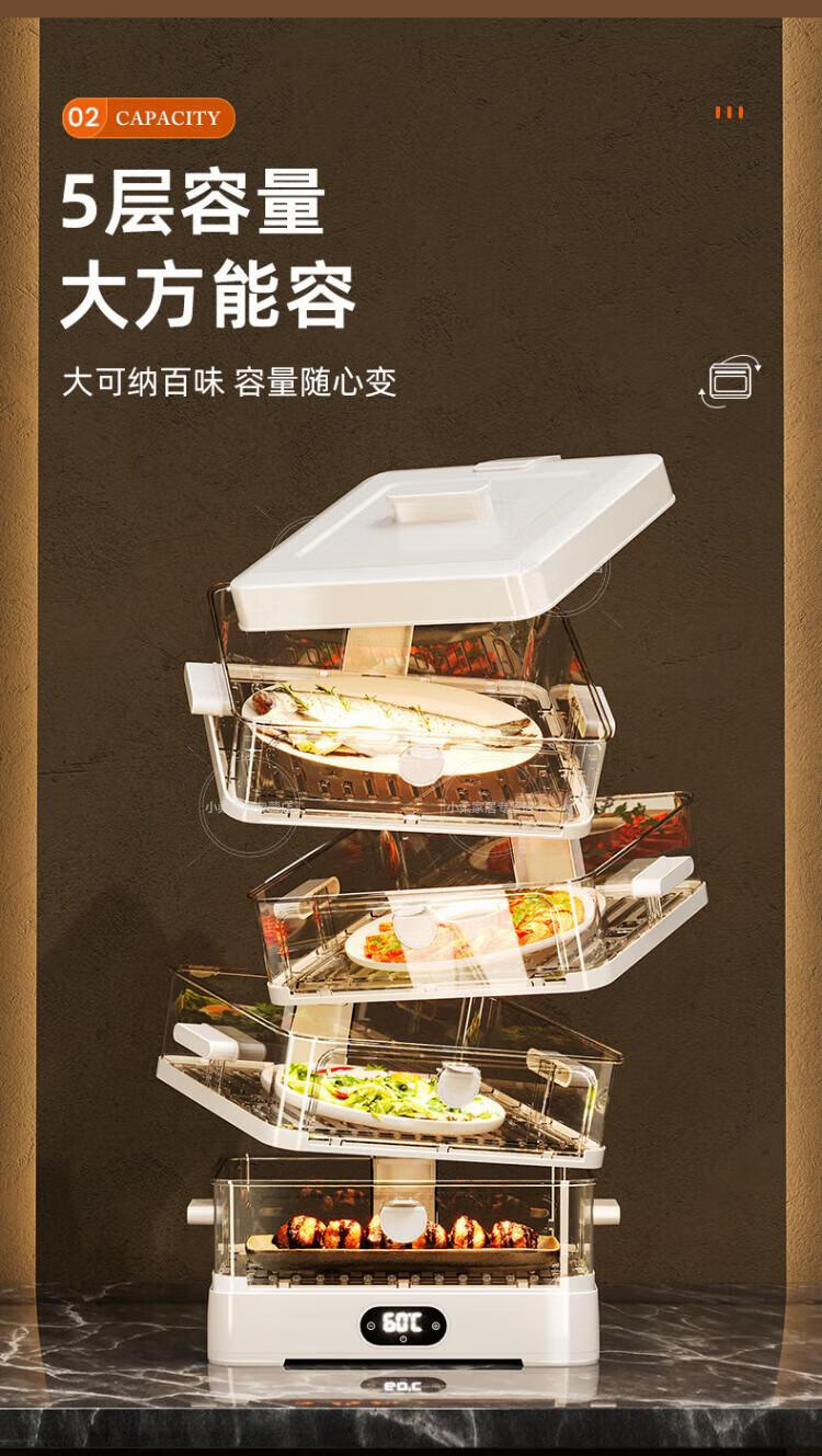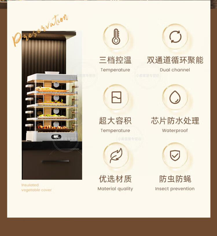 WCZ德国保温菜罩冬天加热剩饭菜神器冬季家用多层插电智能恒温菜食物 圆形智能烘风菜罩-五层【保温加热 防虫防蝇】
